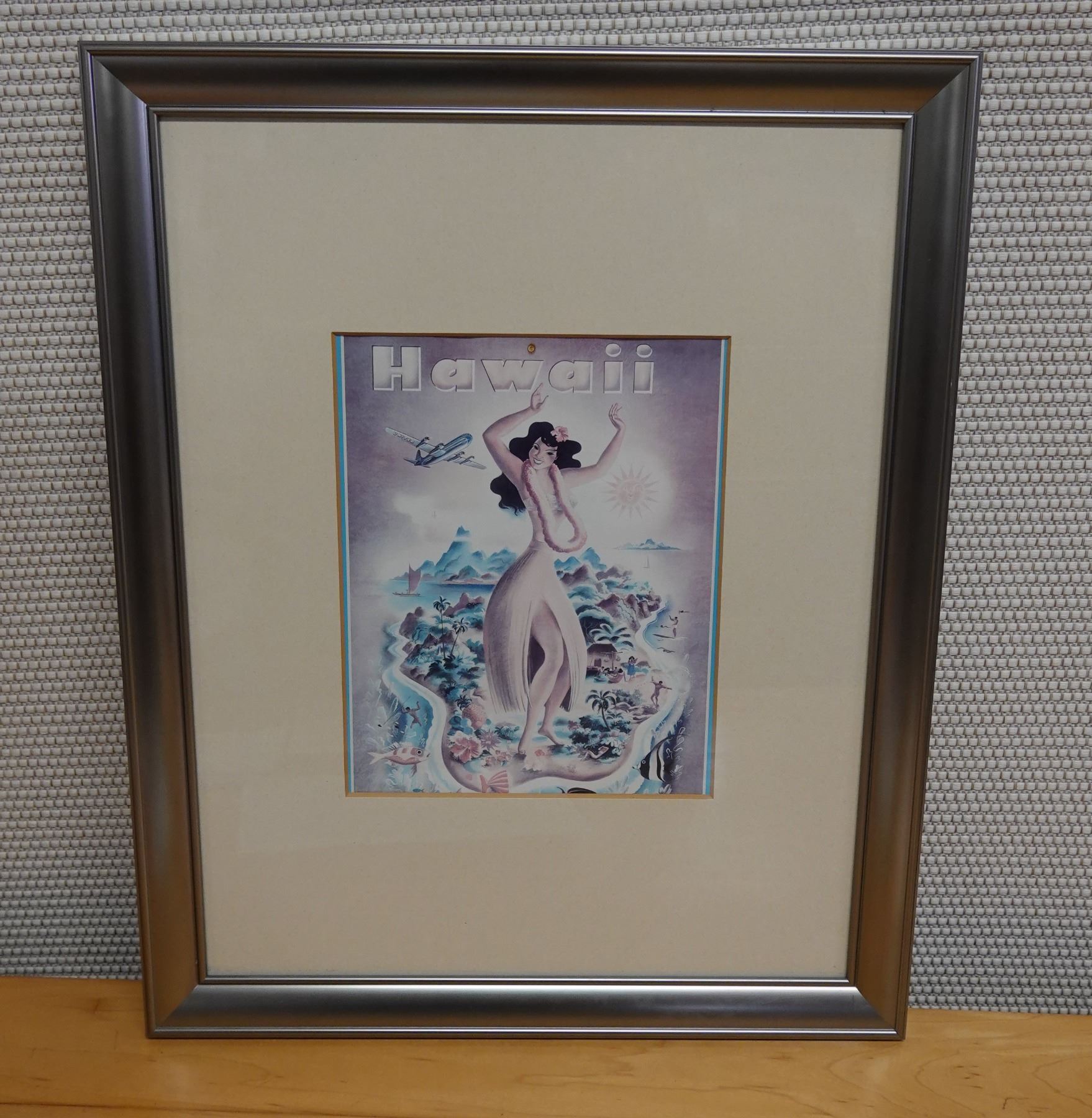 Hawaii Framed Print w/ Hula Dancer, Framed & Matted, 16" x 20"