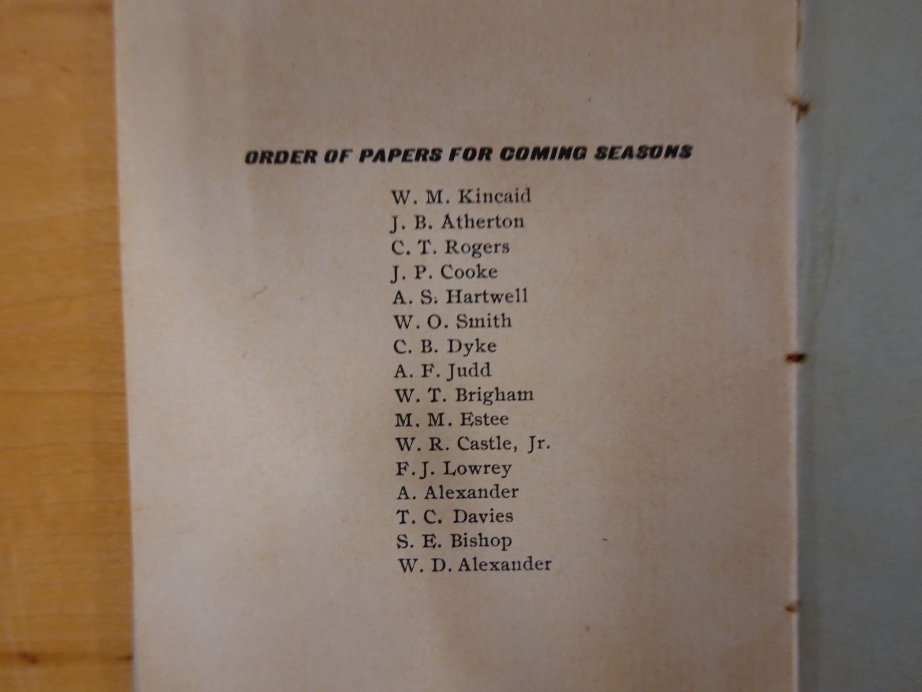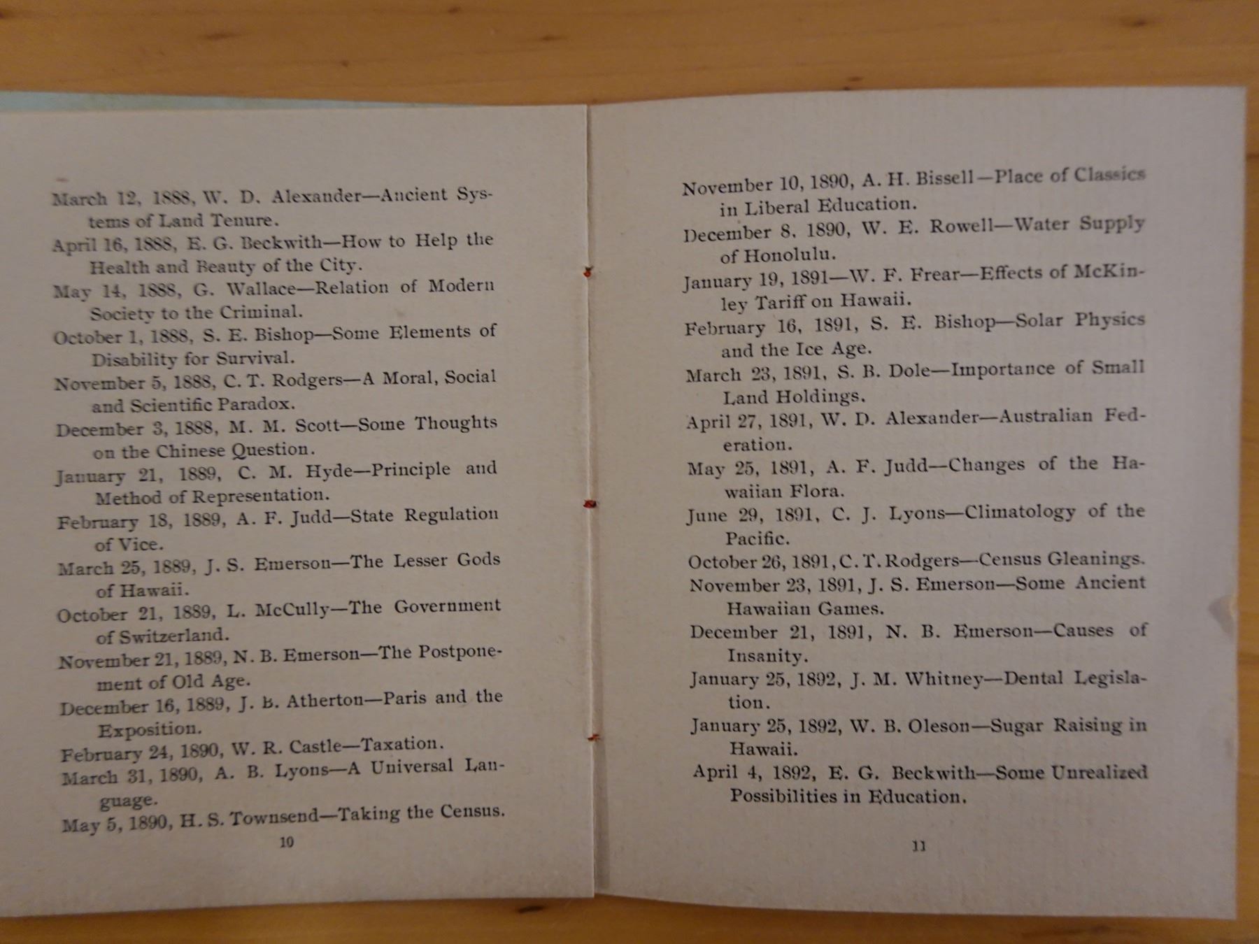 Hawaii Social Science Association, Moana Hotel Membership Booklet 1882-1901 w/ Cover Photo Dr. Hyde 4" x 4.75"
