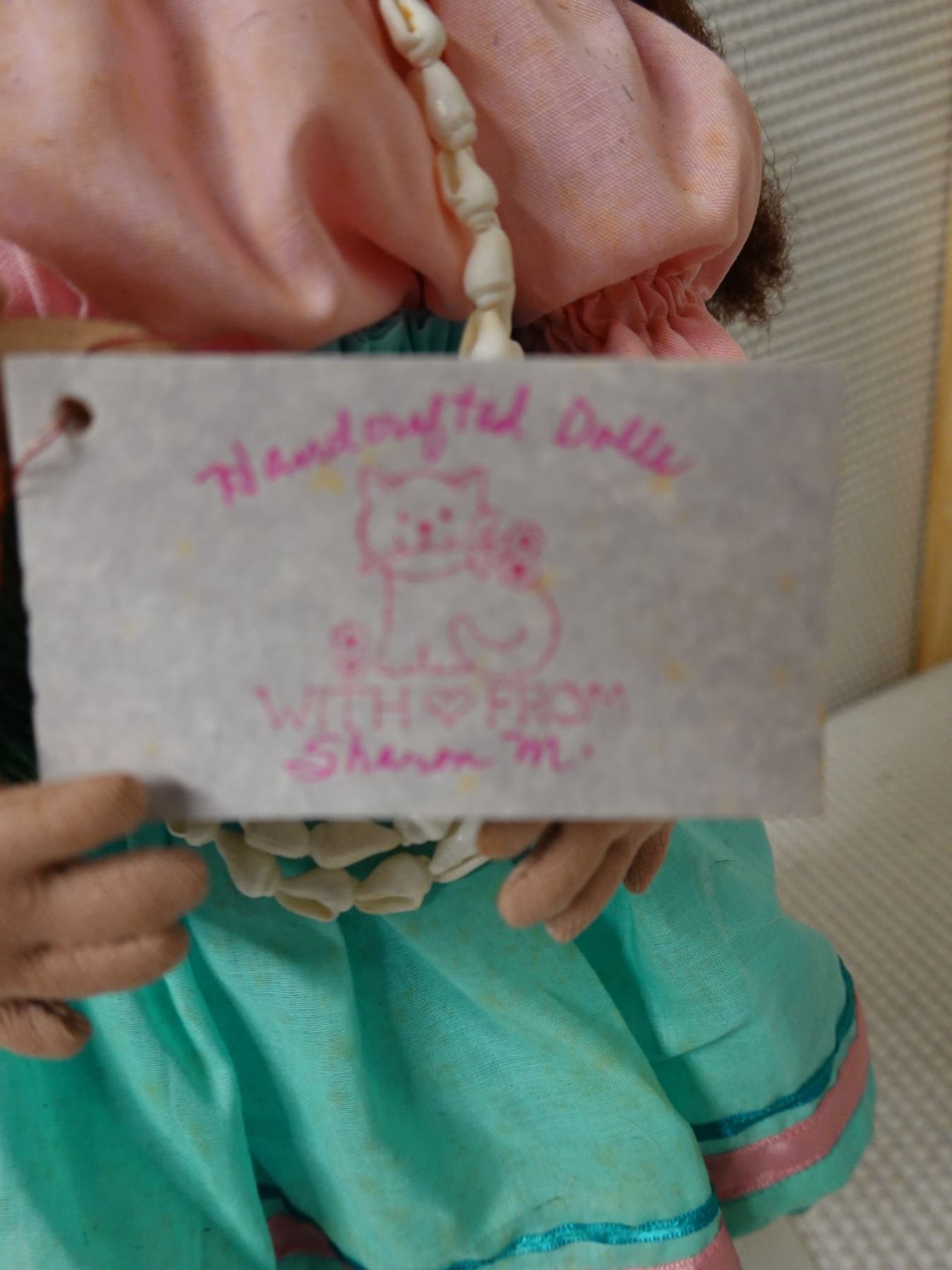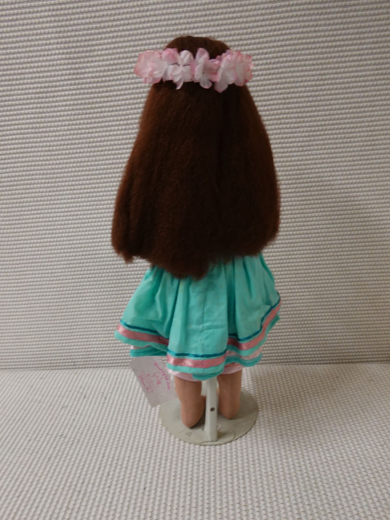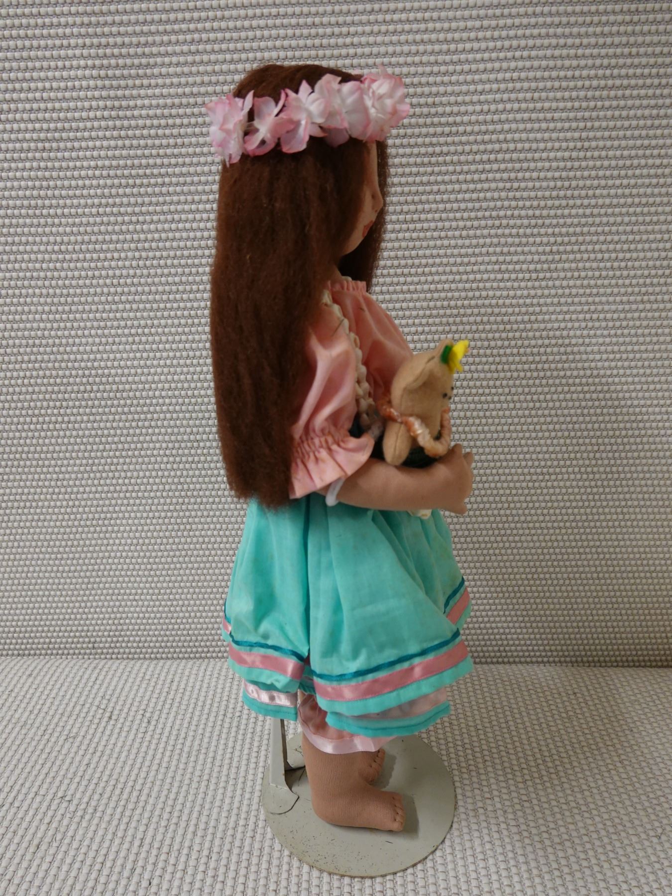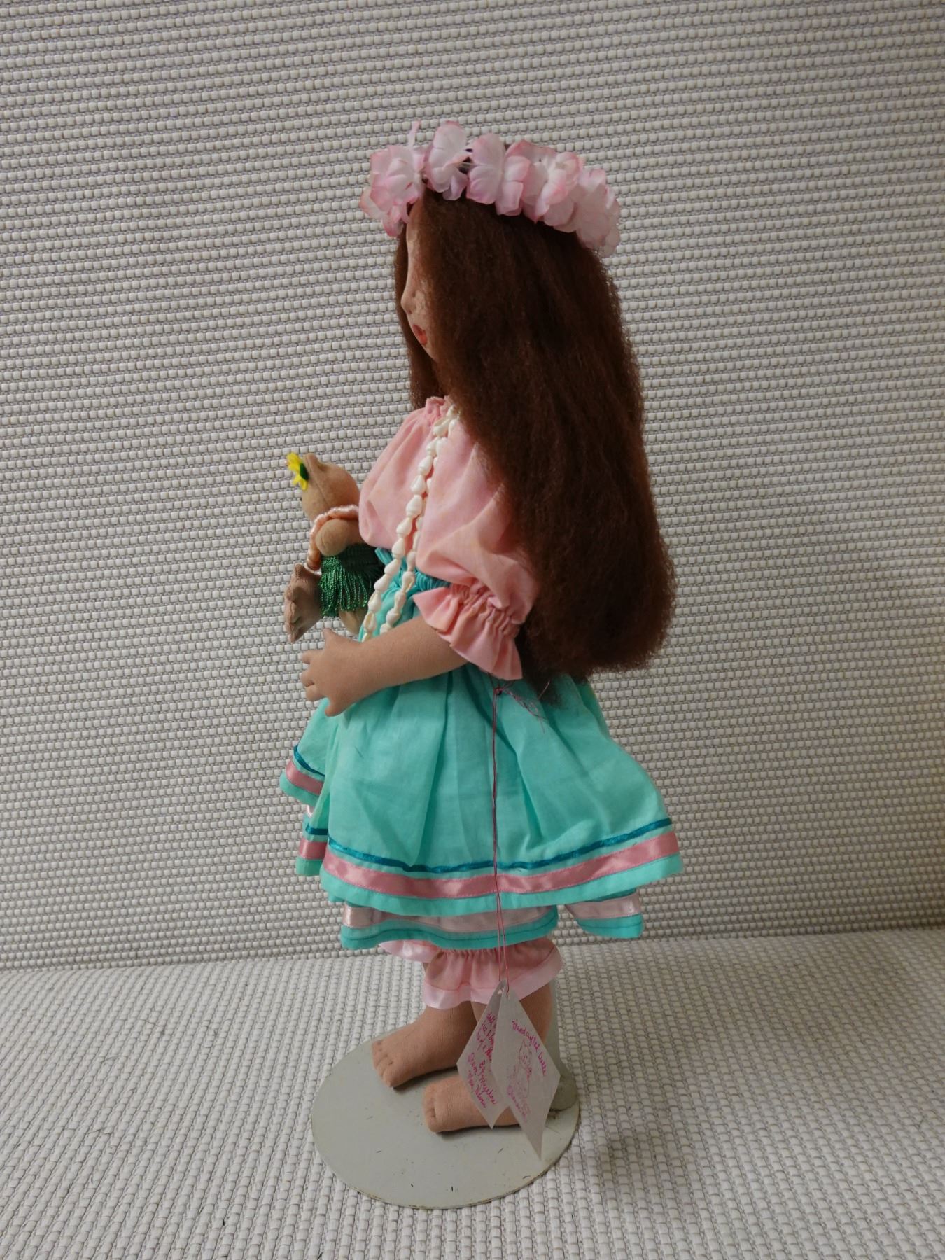 Hawaiian Cloth Doll in Blue Kahiko Costume w/ Bear by Sharon Miyahira 20"H