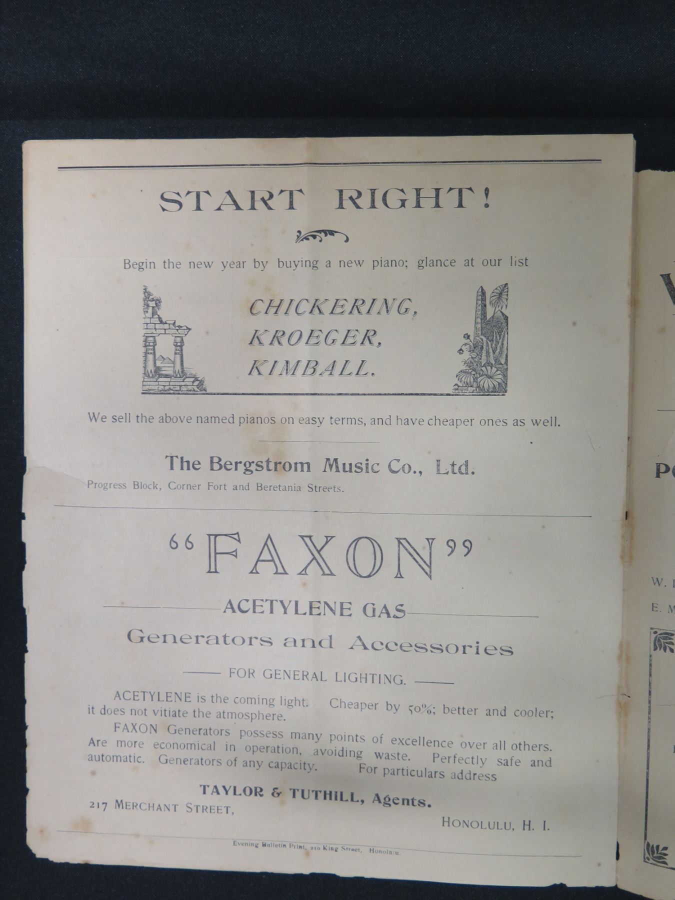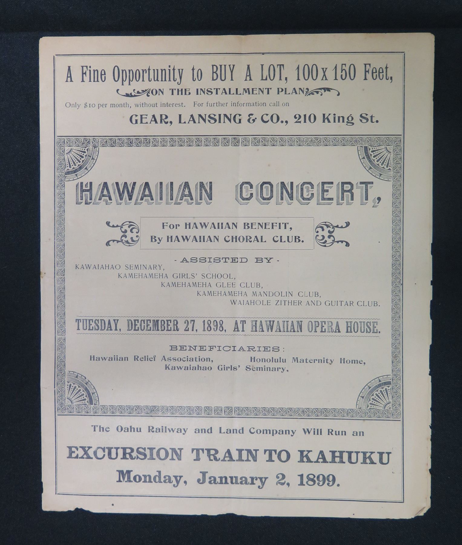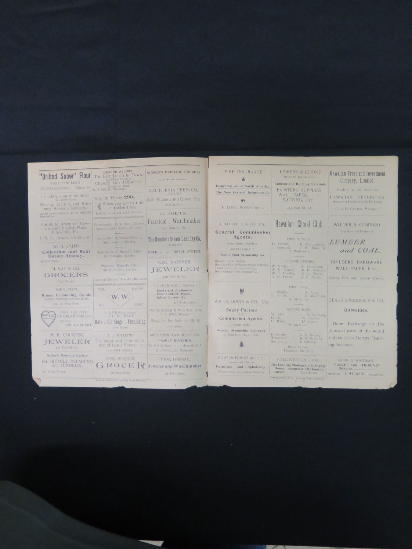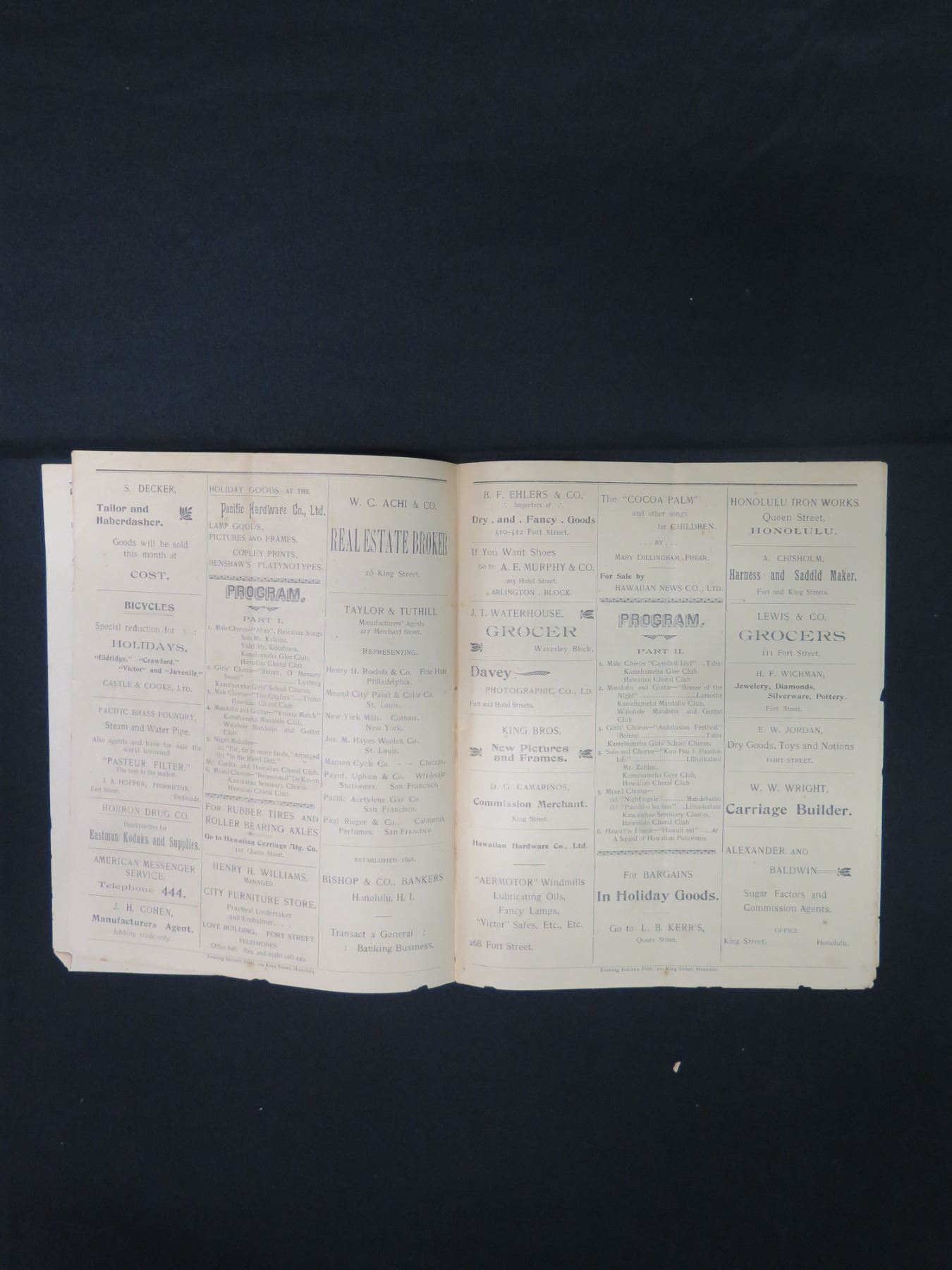 Hawaiian Concert Program 4 Pages Dated January 1899, 7.5" x 9"