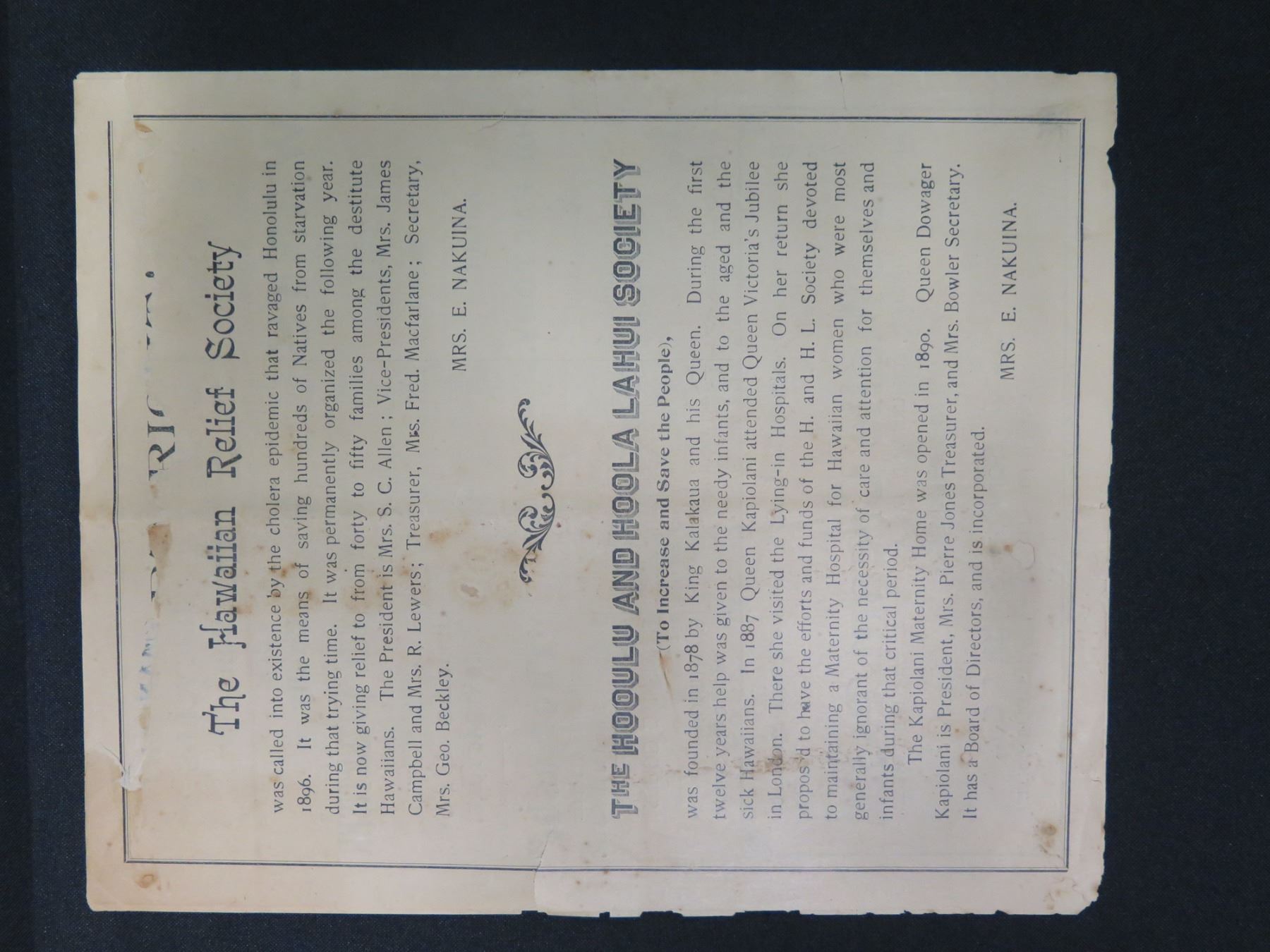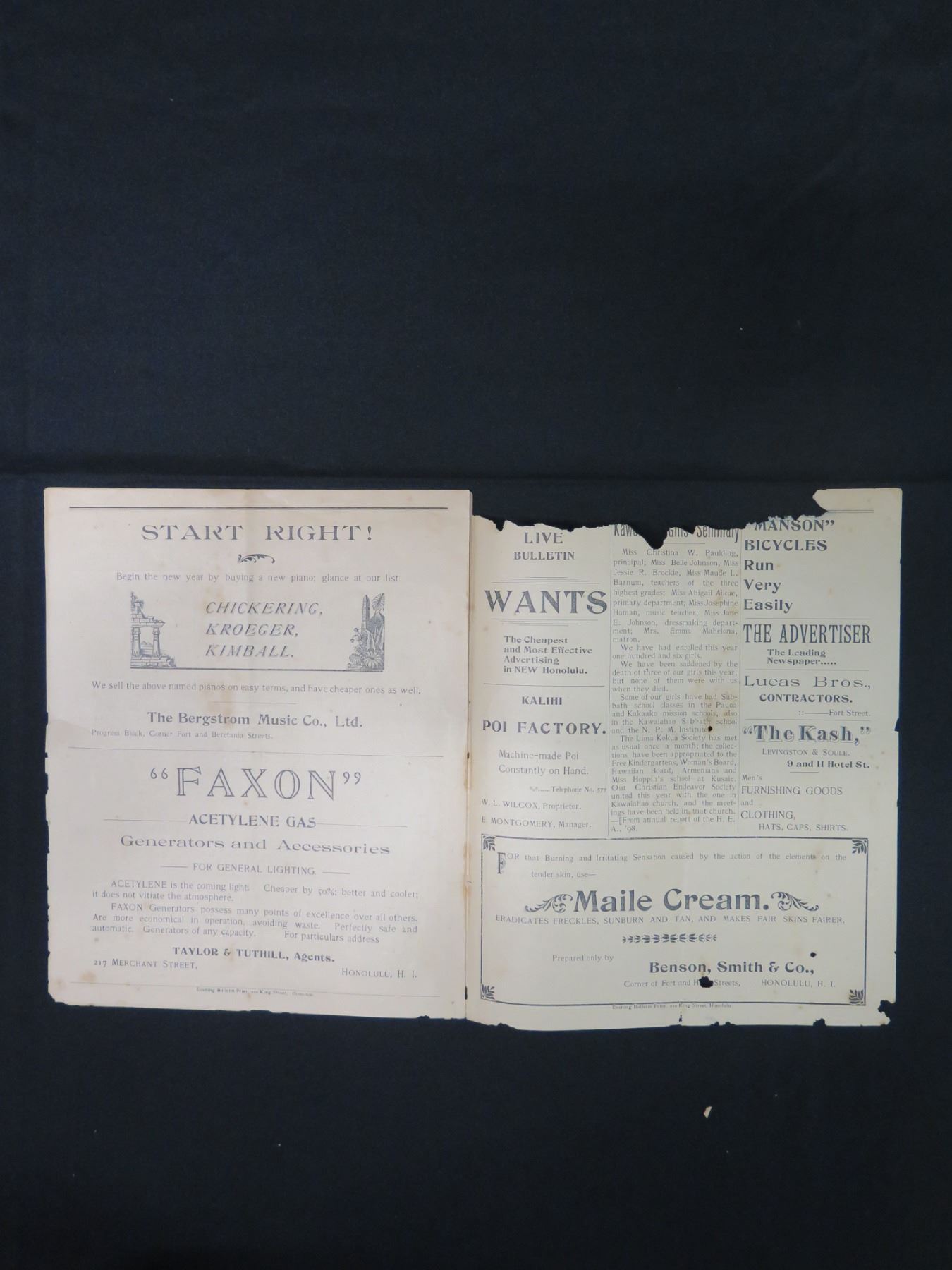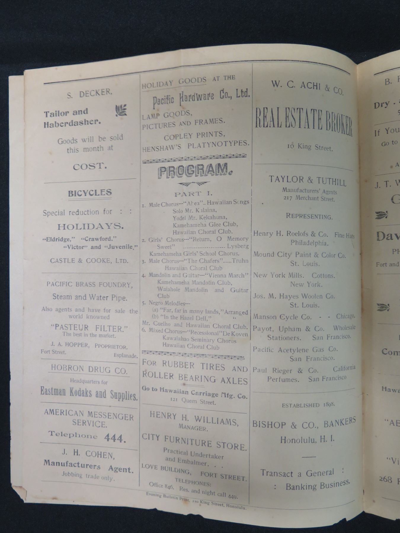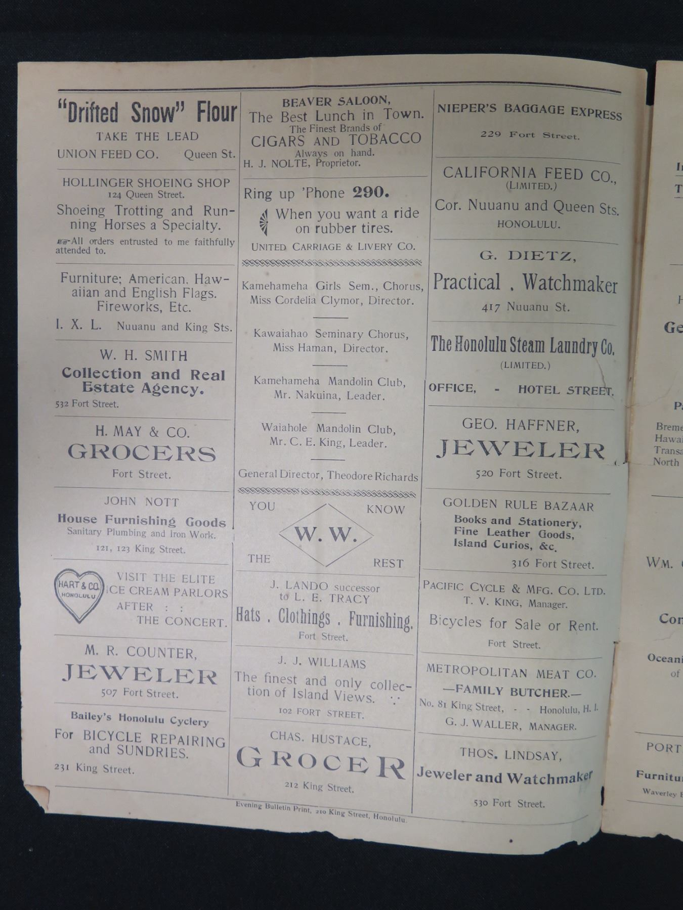 Hawaiian Concert Program 4 Pages Dated January 1899, 7.5" x 9"