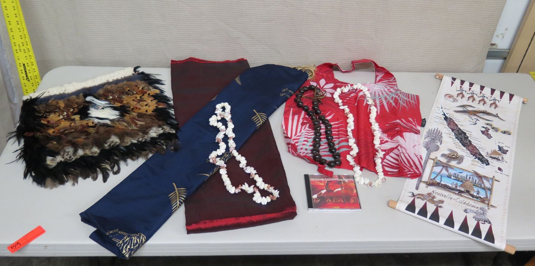 Hawaiian Design Vest, Wall Hanging, Kukui & Artificial Flower Lei, etc