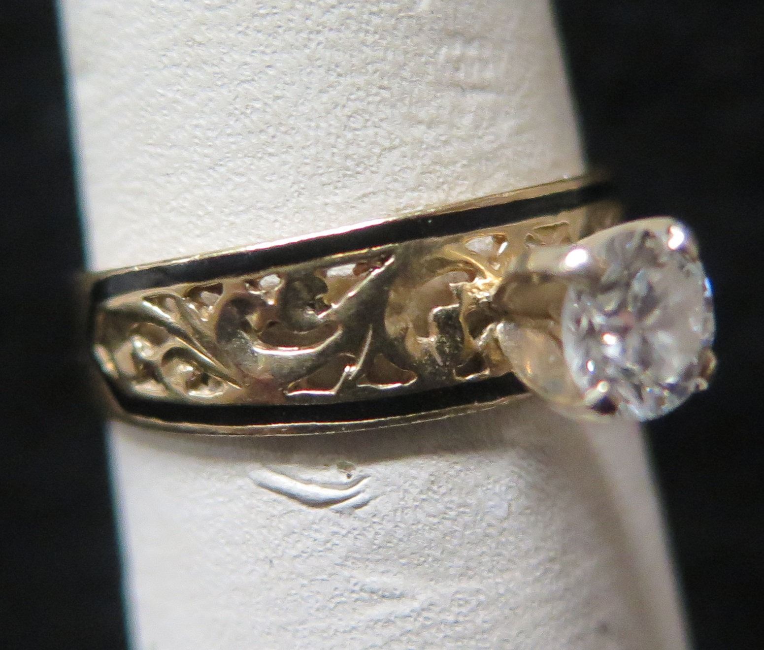 Hawaiian Gold 14K Ring w/ Diamond & Enamel 2.17g Size 6.5