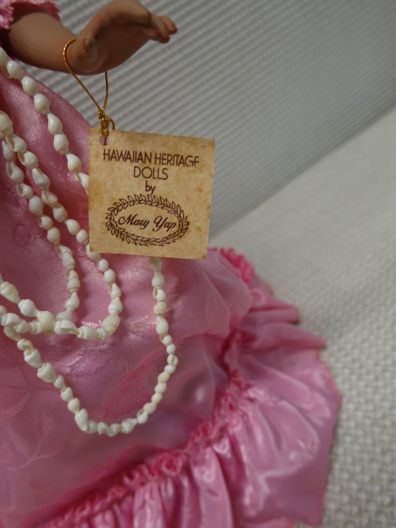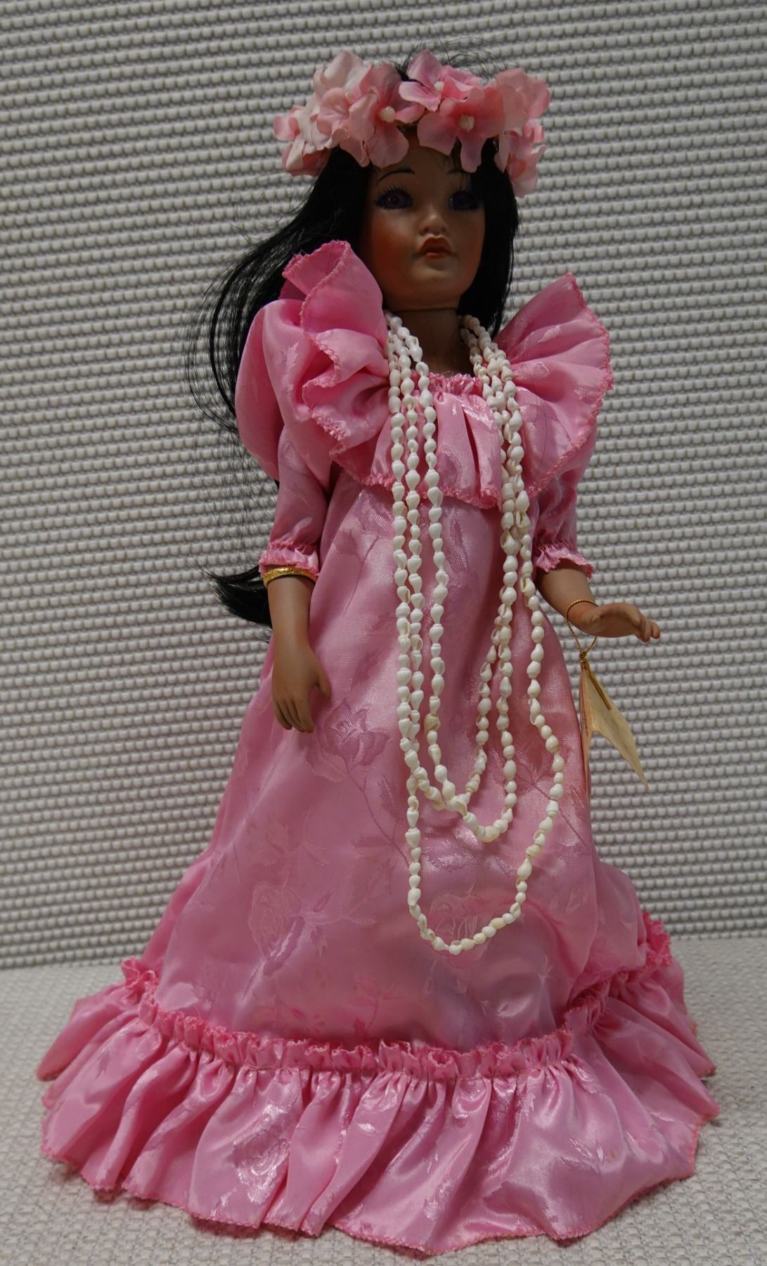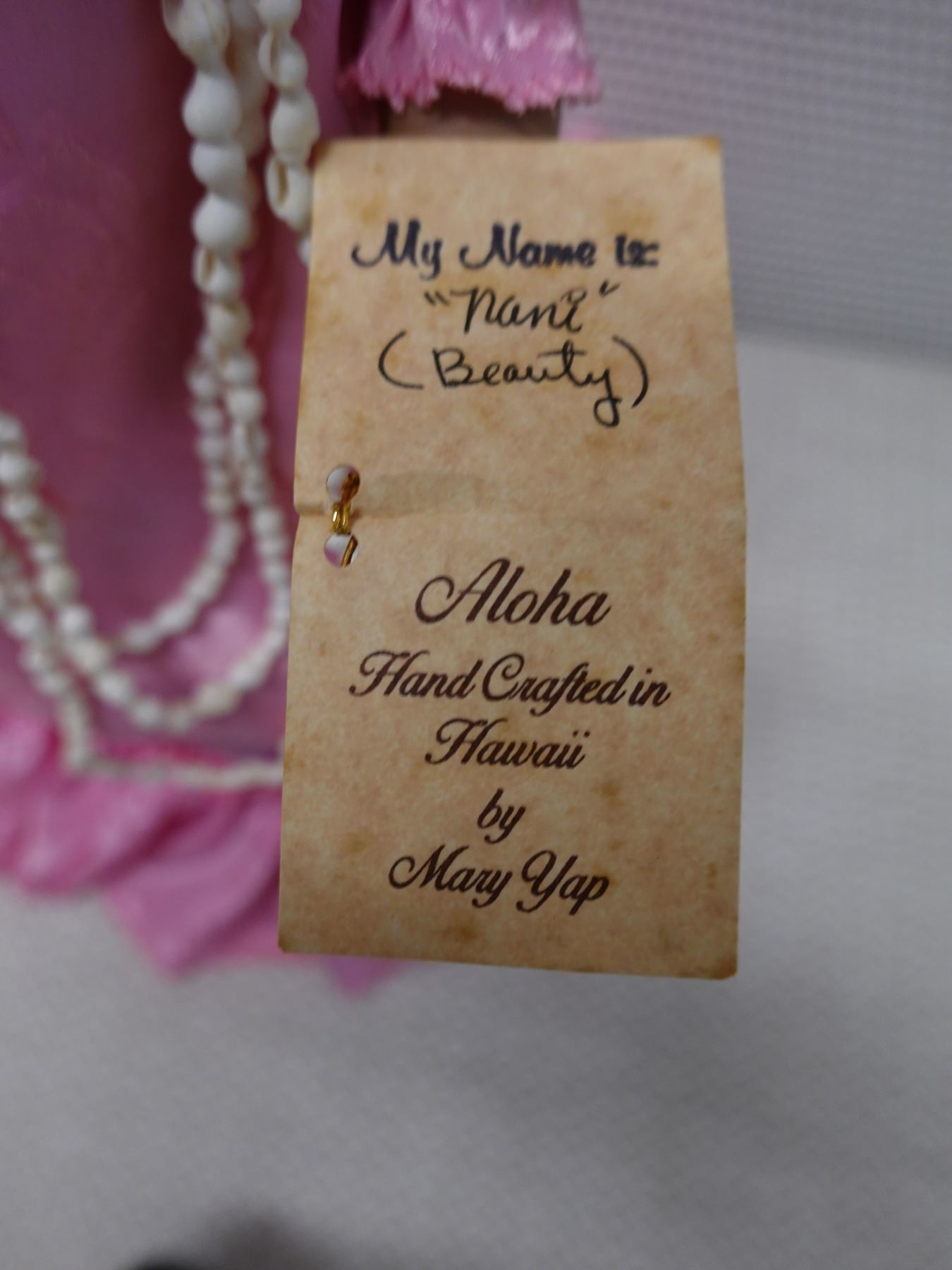 Hawaiian Heritage Dolls "Nani" (beauty) in Pink Holoku by Mary Yap, 16"H