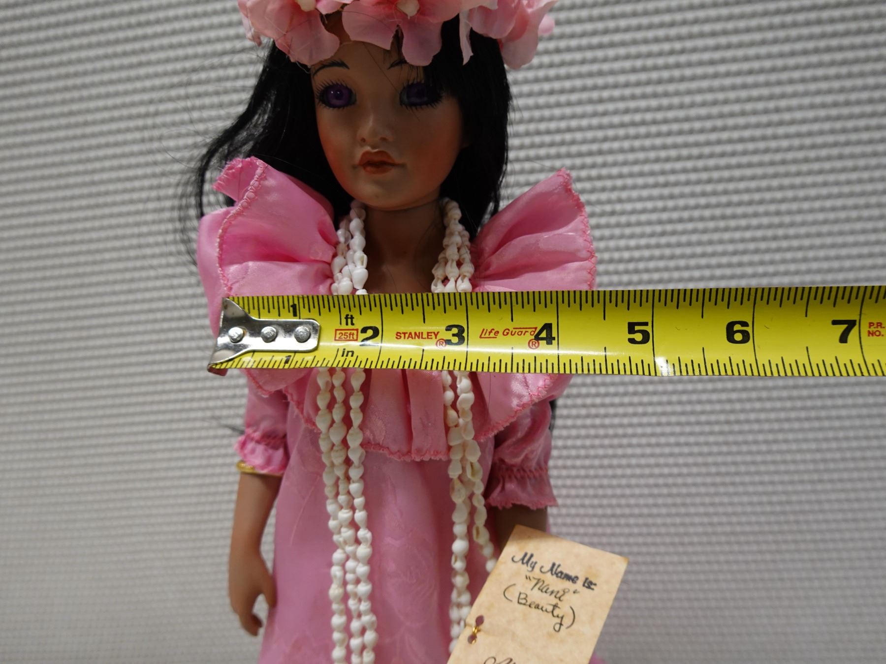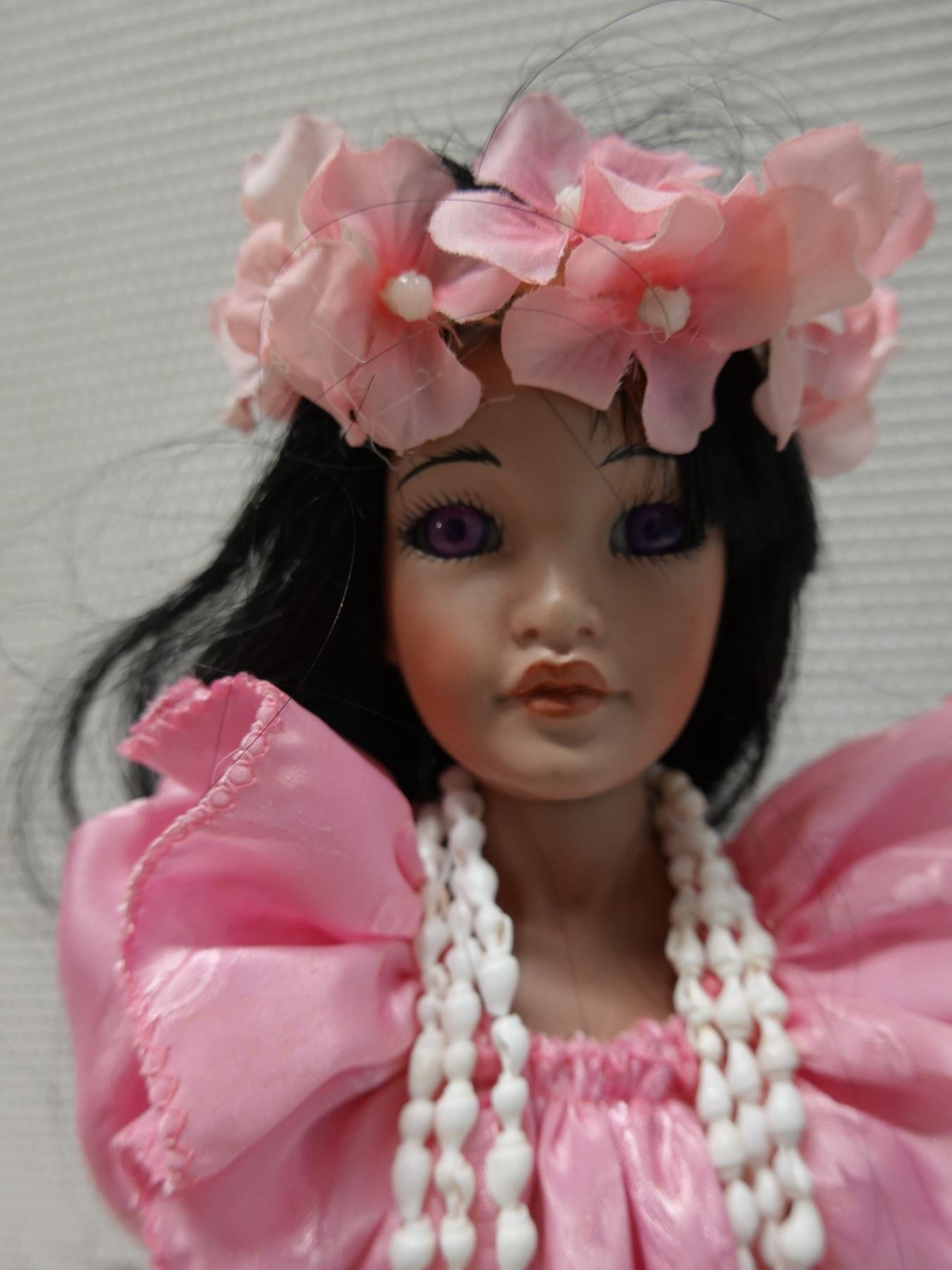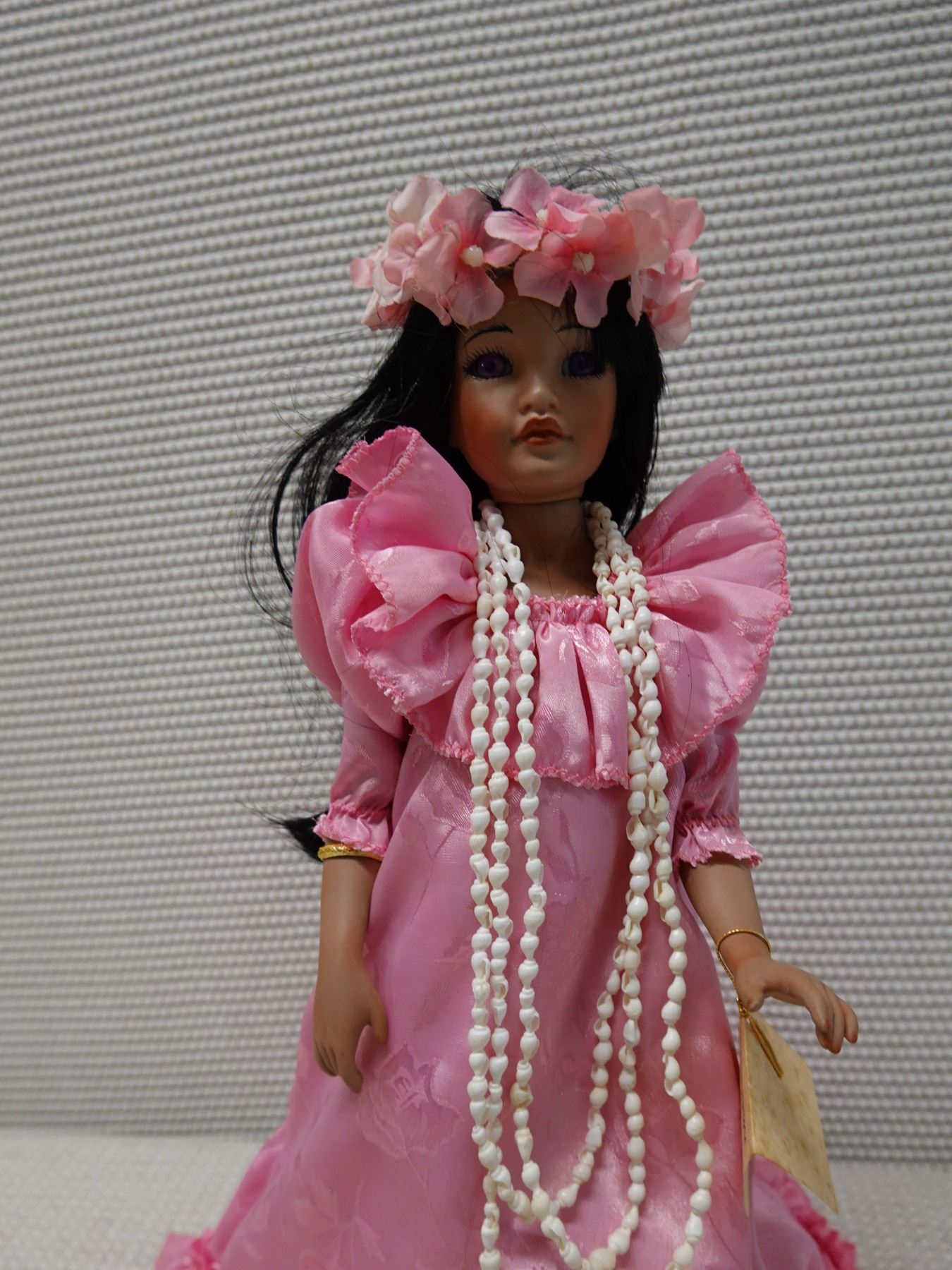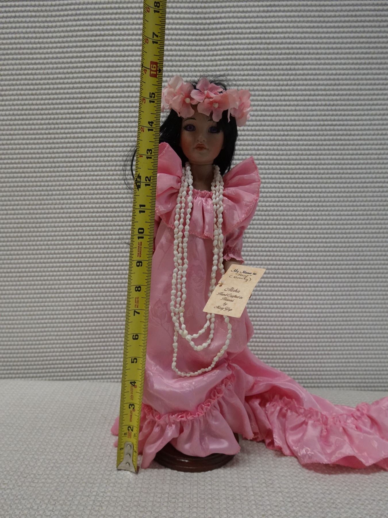 Hawaiian Heritage Dolls "Nani" (beauty) in Pink Holoku by Mary Yap, 16"H