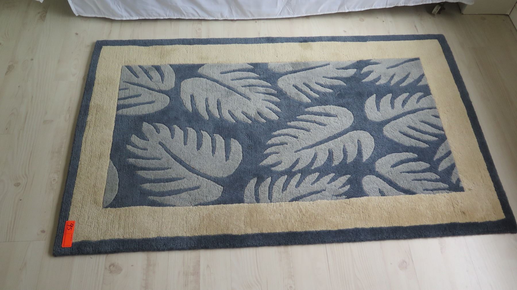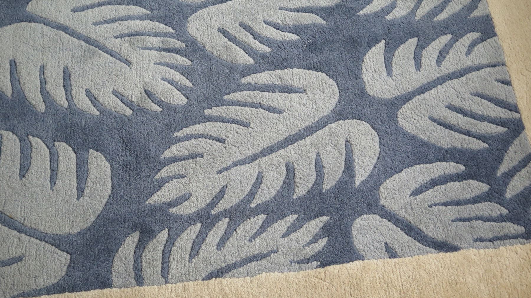 Hawaiian Leaf Pattern Rug "Lauae Blue" 5' X 3' Blue w/Beige Border