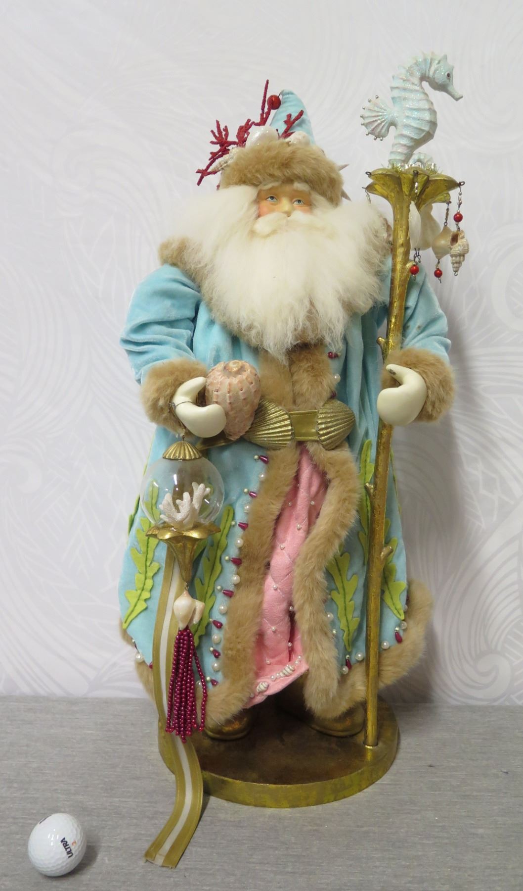 Hawaiian Santa w/ Pearls, Shells & Seahorse Staff, 25" Tall