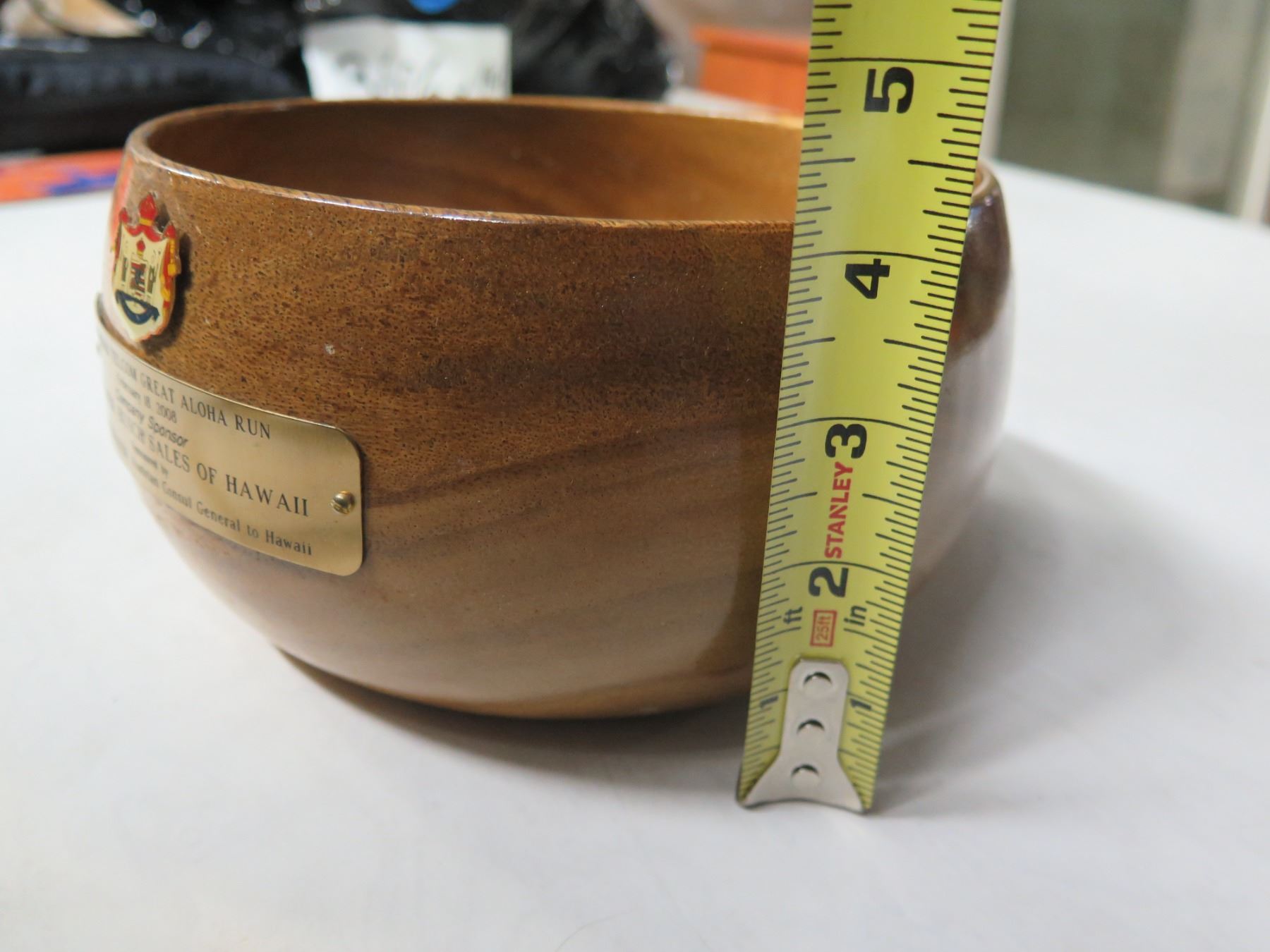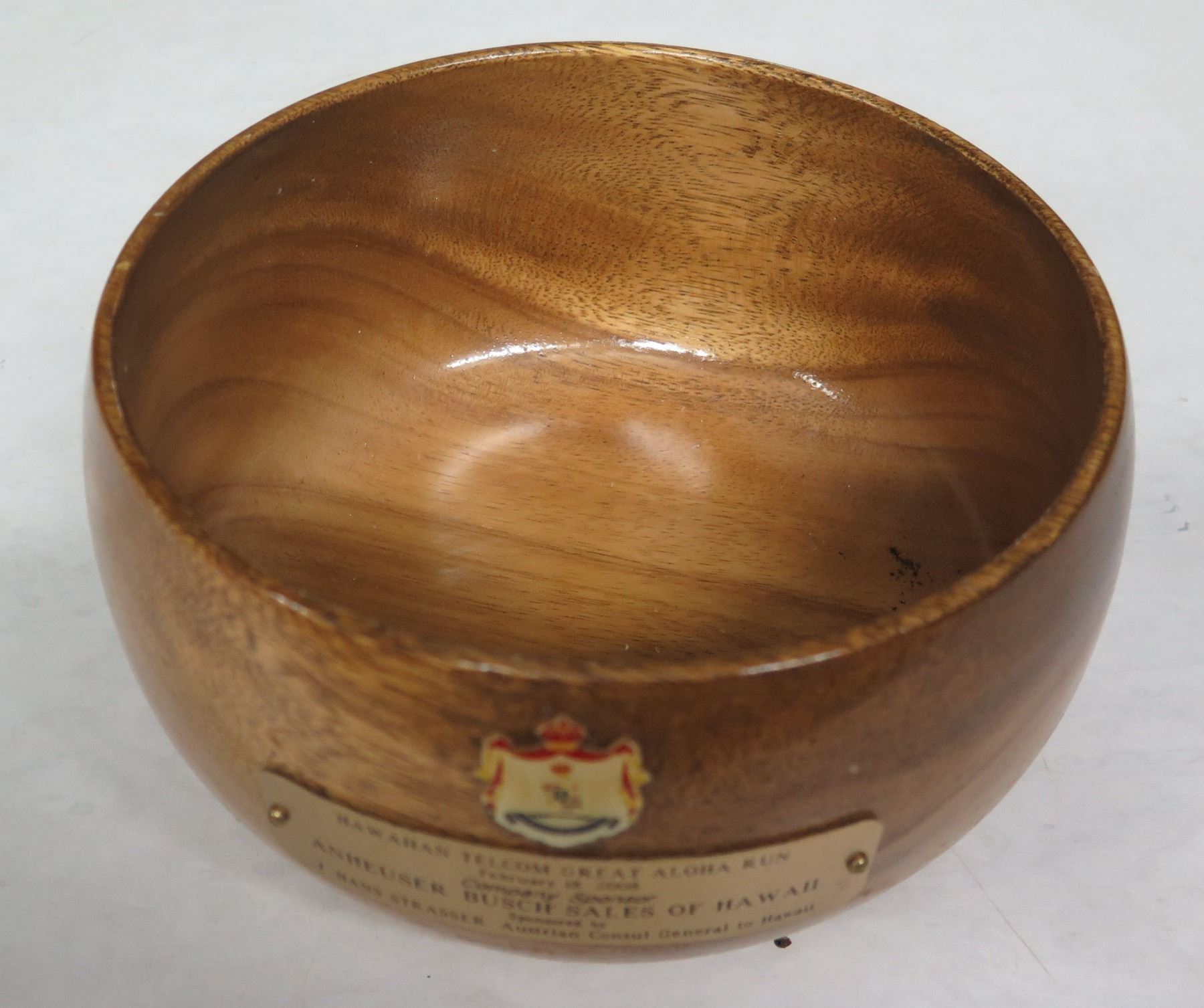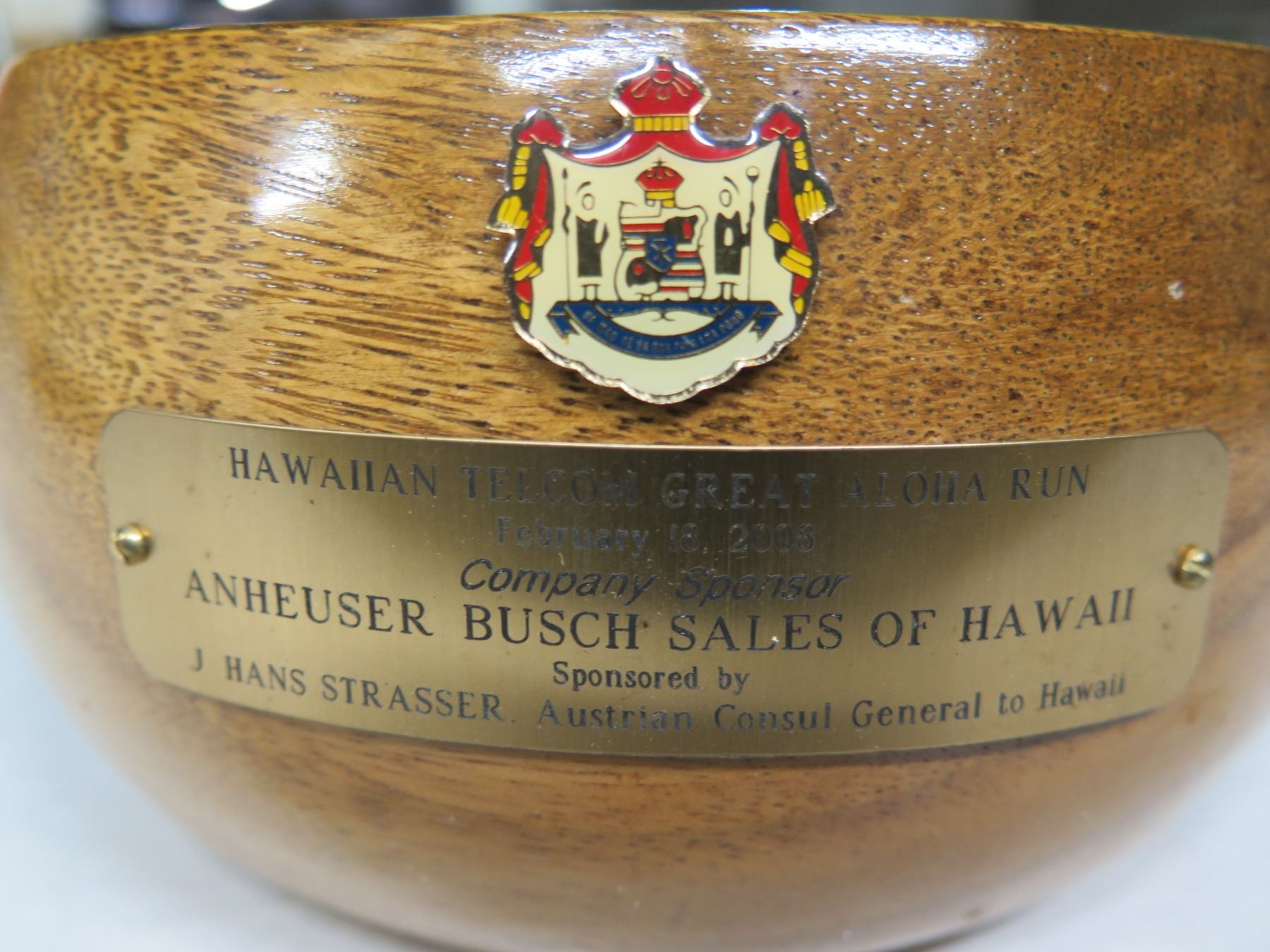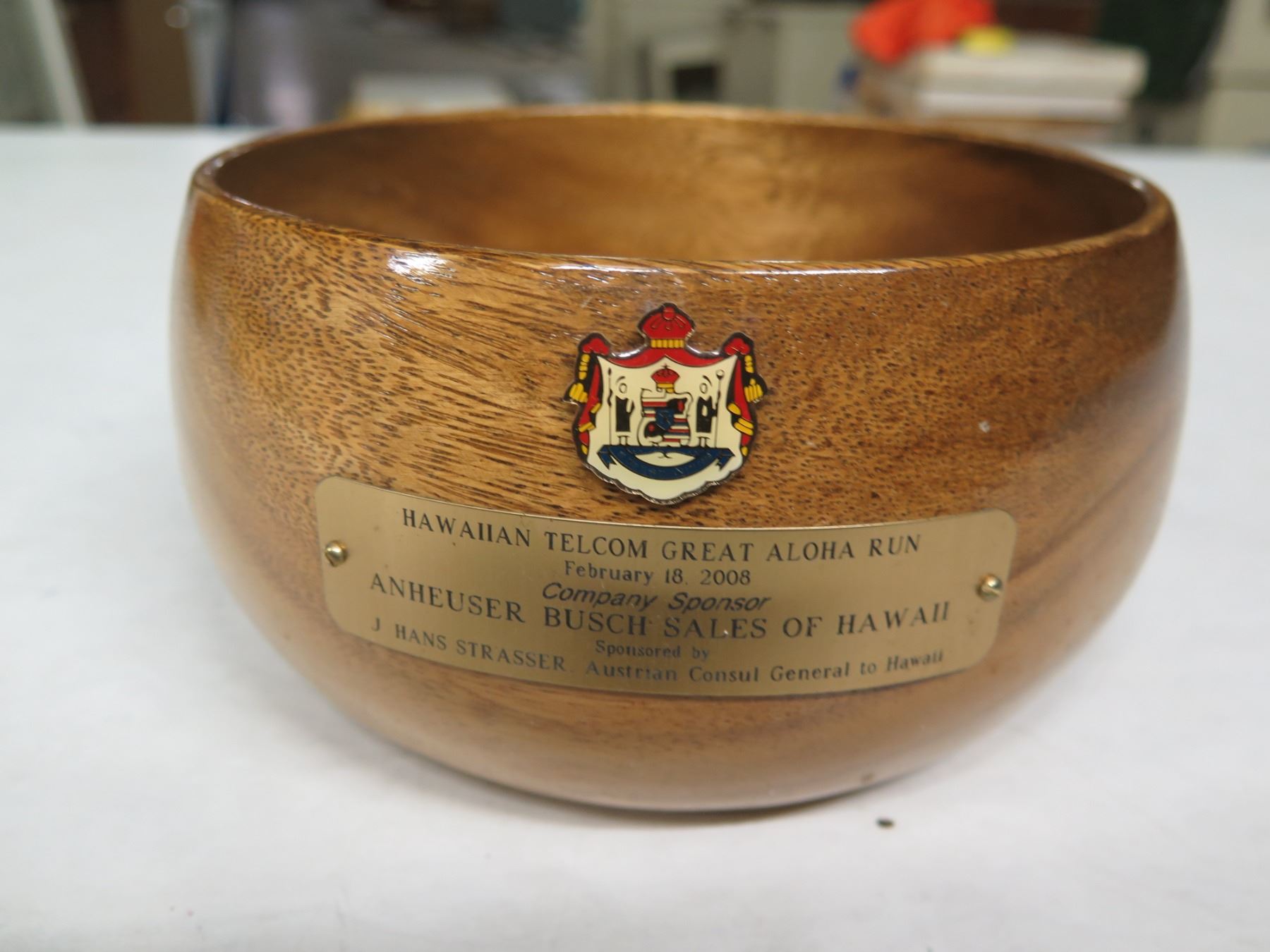 Hawaiian Telcom Great Aloha Run 2008 Sponsor Wooden Bowl 8" dia, 4"H