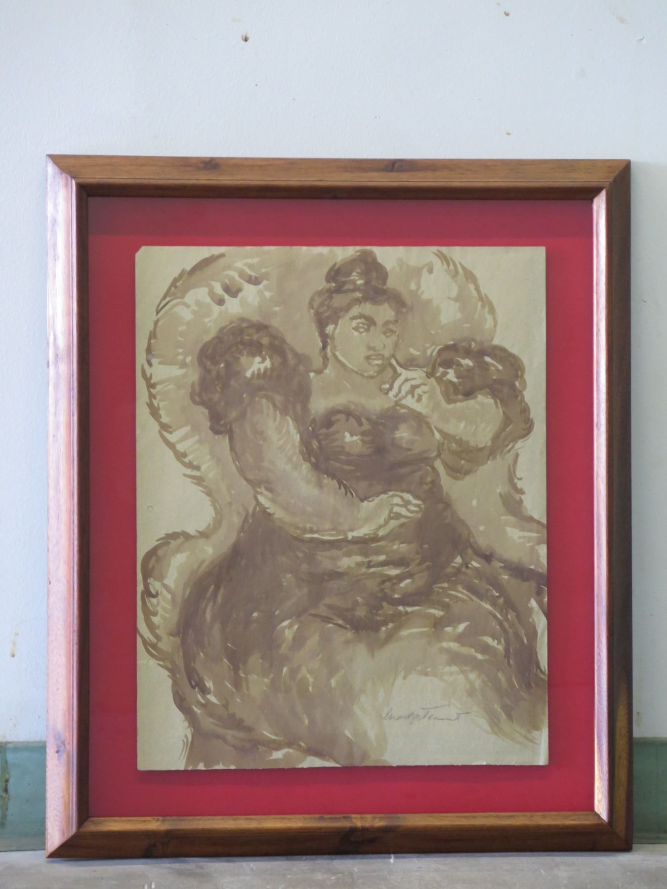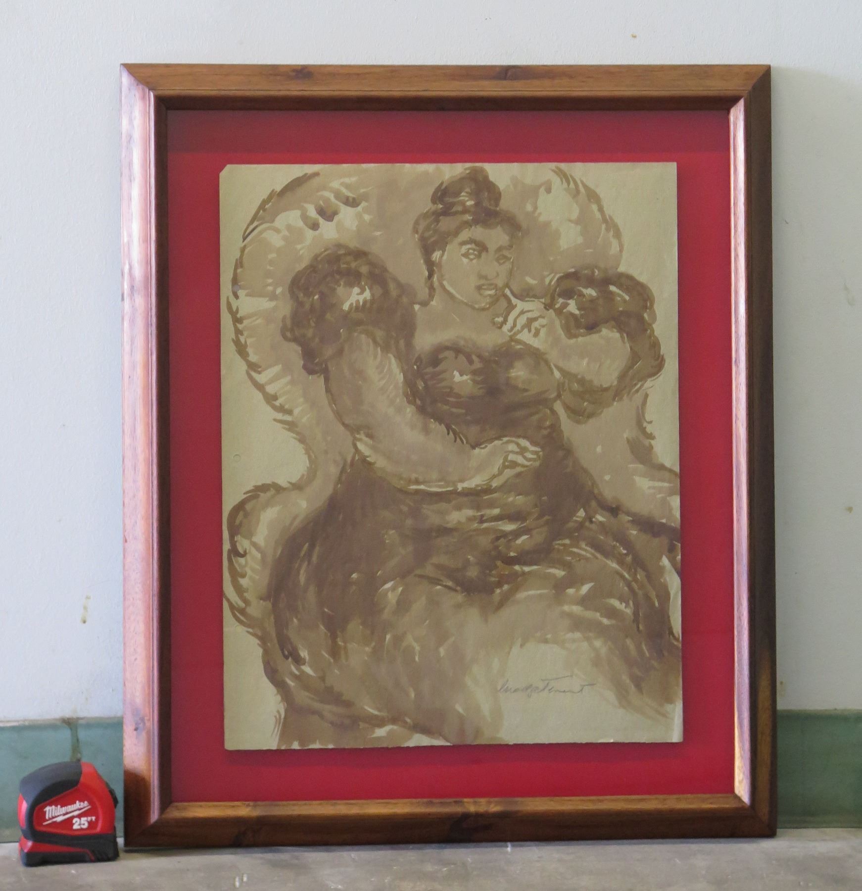 Hawaiian Woman Original Watercolor Artwork by Madge Tennent, Framed 21"x25"