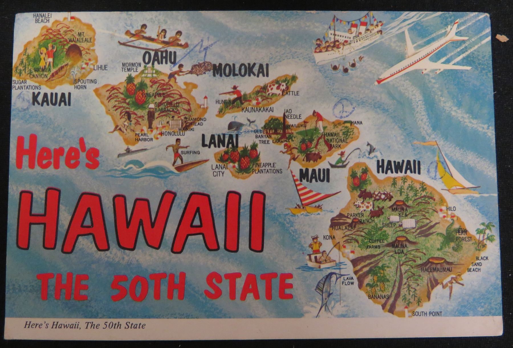 Here's Hawaii the 50th State Continental Card Postcard w/ Message Dated 4-6-73