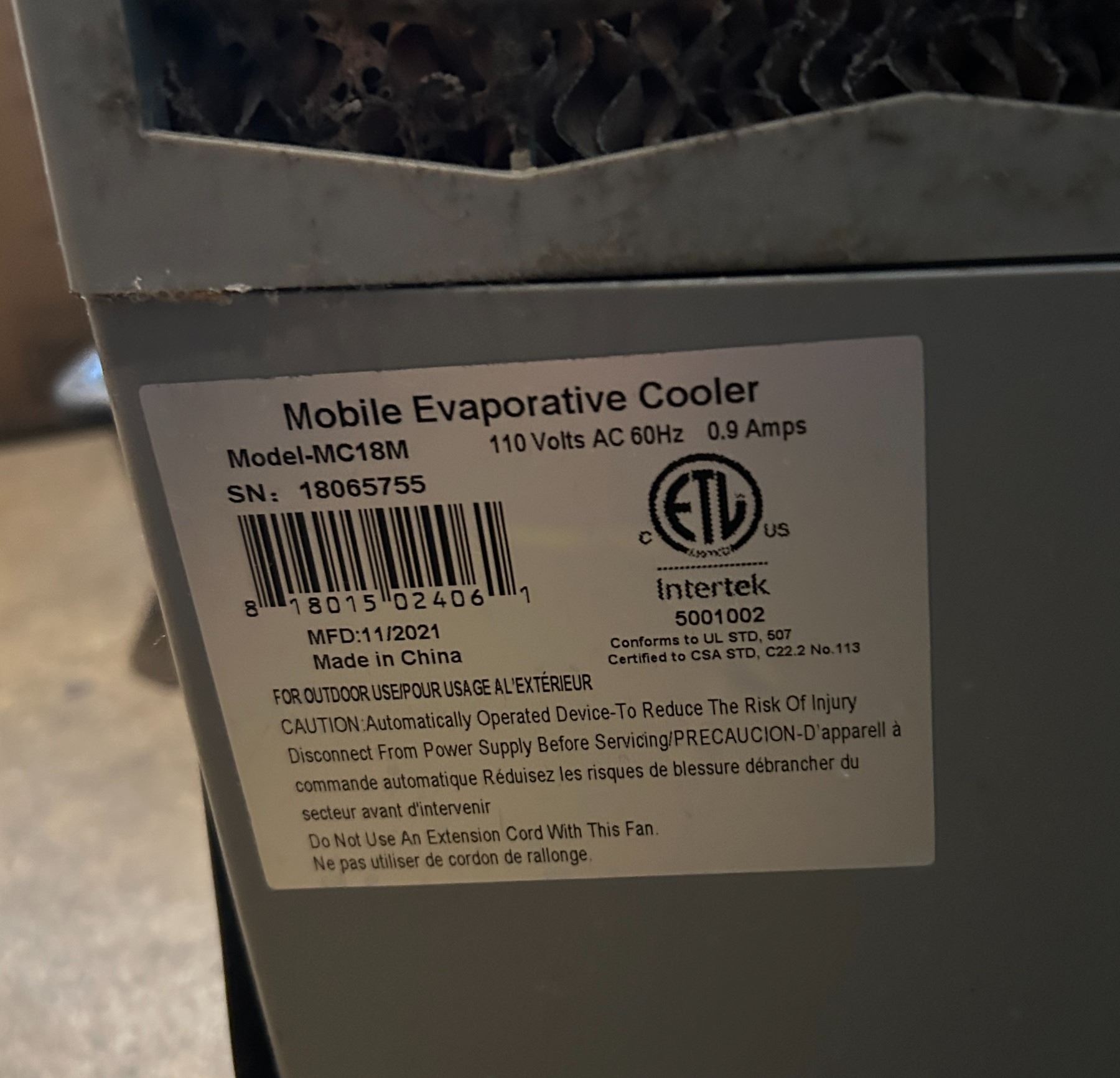 Hessaire MC18-M Mobile Cooling Solutions Portable Evaporative Cooler