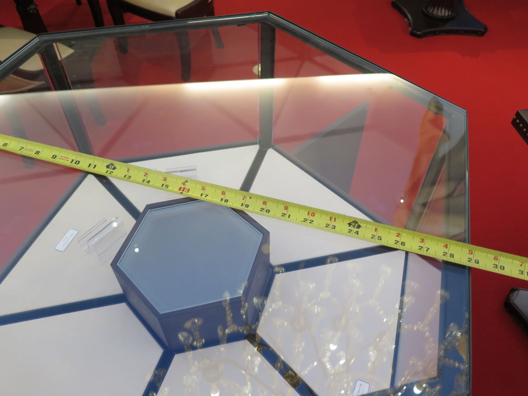 Hexagon Display Cabinet w/ Glass Top (no key) 29" Dia, 44" H