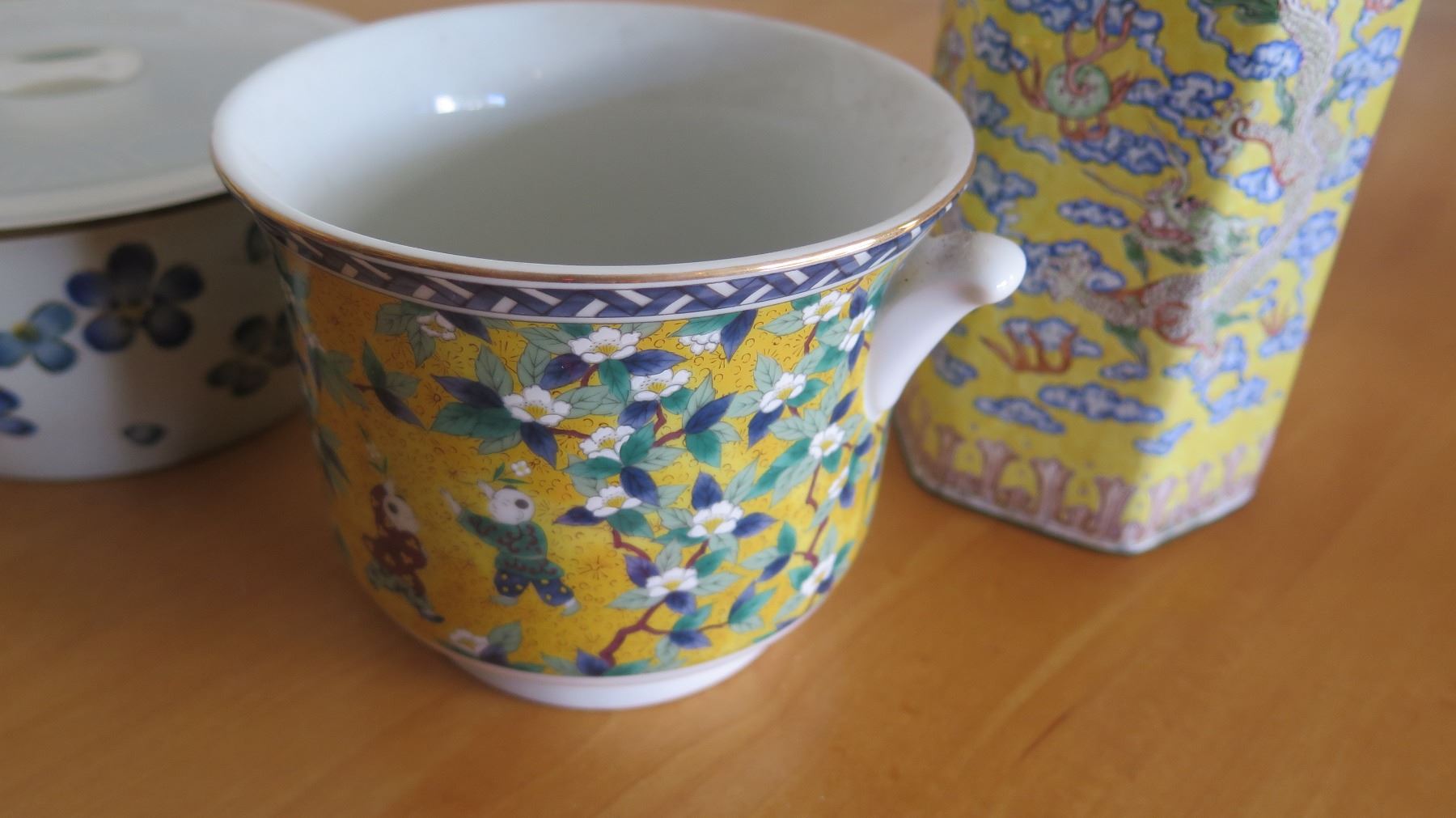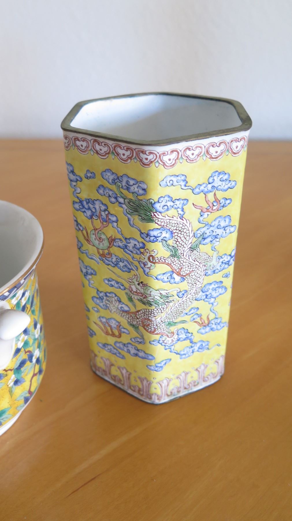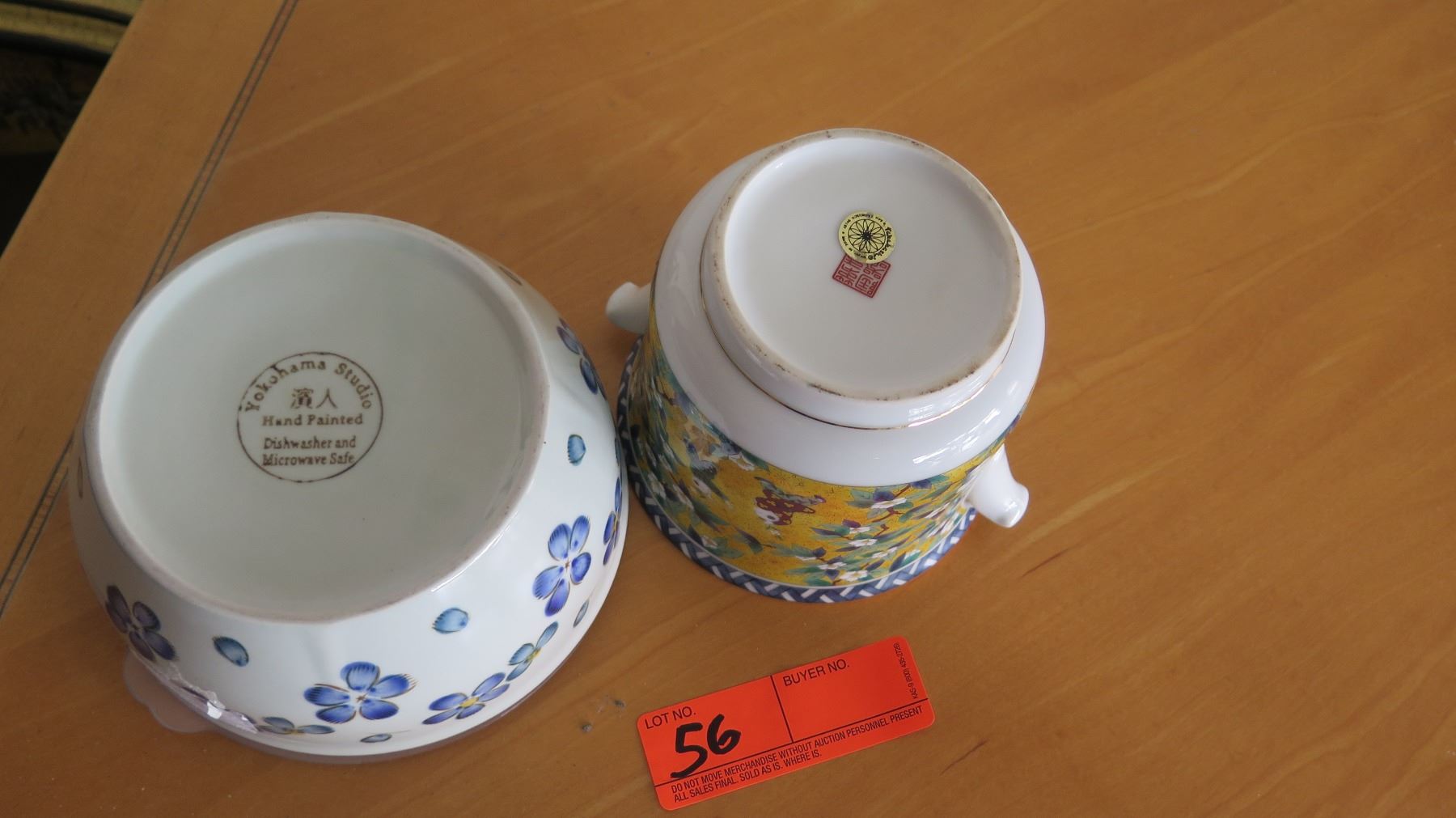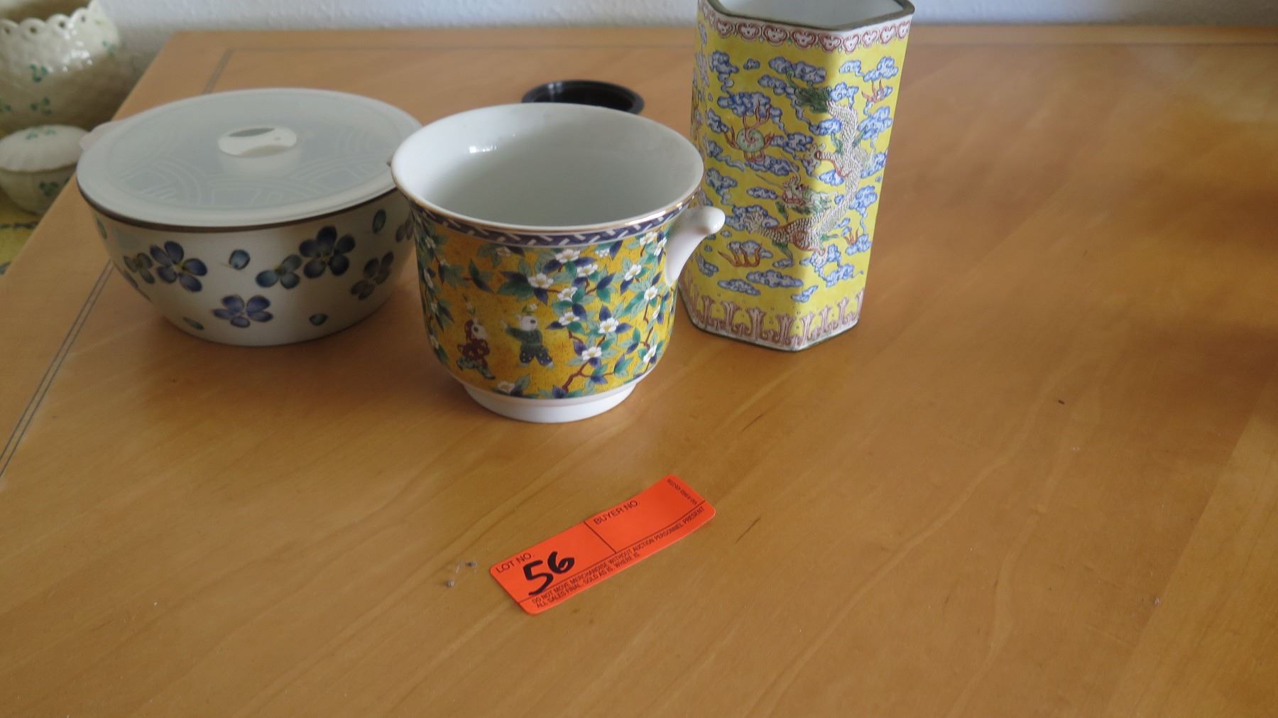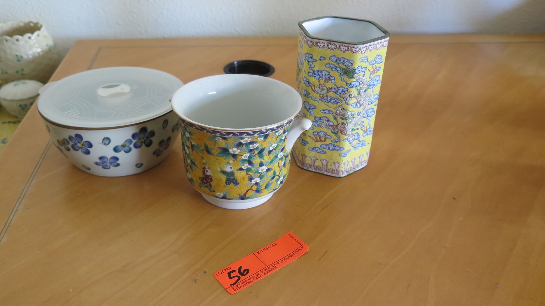 Hexagonal Vase, Bowls, Markings on Bottom - Tallest is 6"