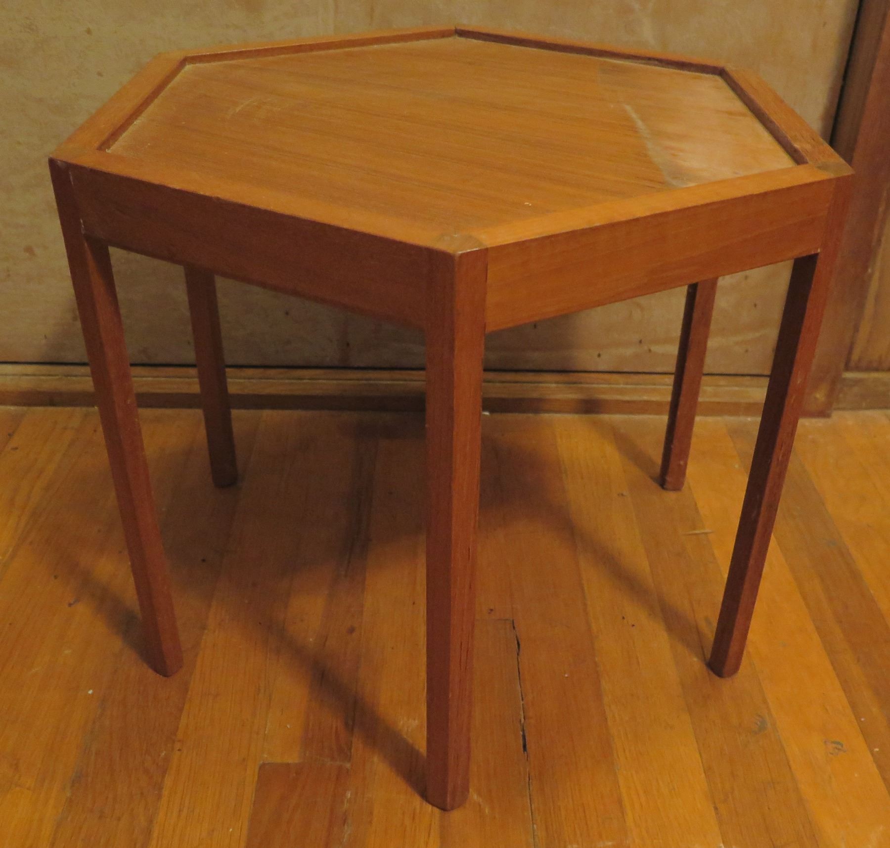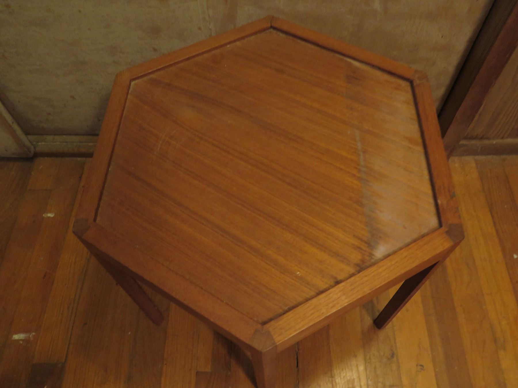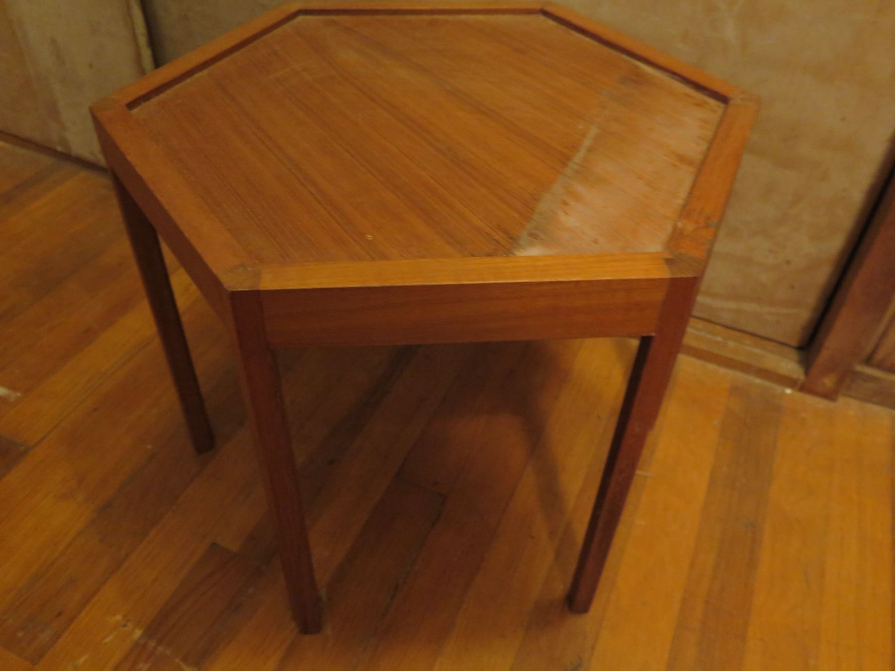 Hexagonal Wooden Table, 6 Legs 17" Dia, 14" H