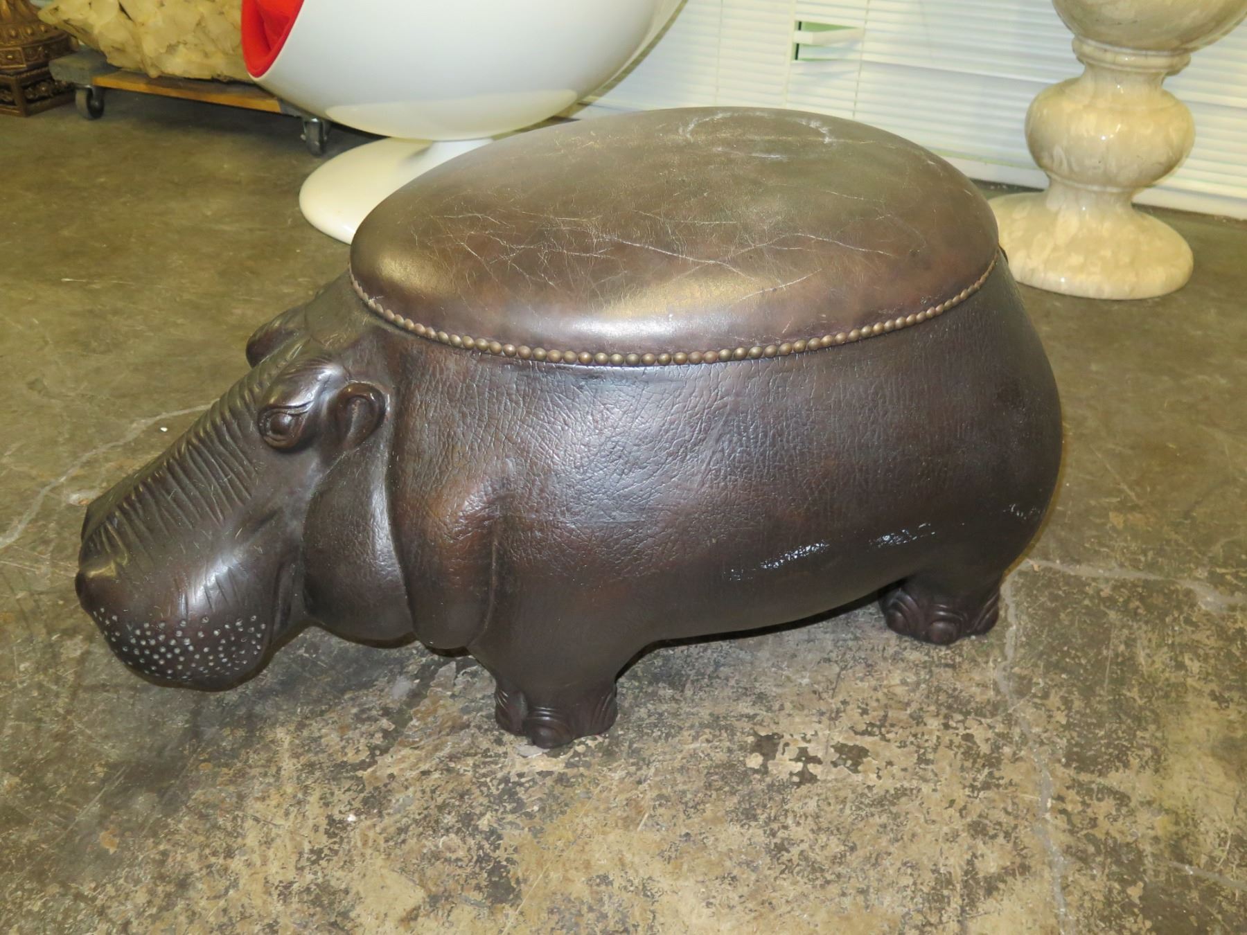 Hippopotamus Side Table w/ Storage Compartment, Approx. 3ft W, 19" H, Hard Plastic