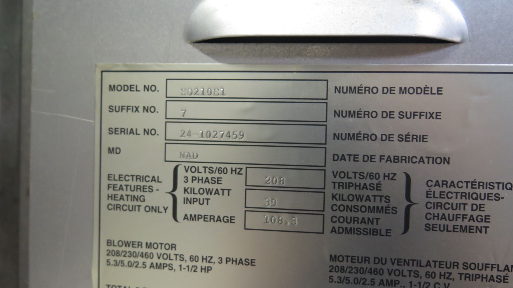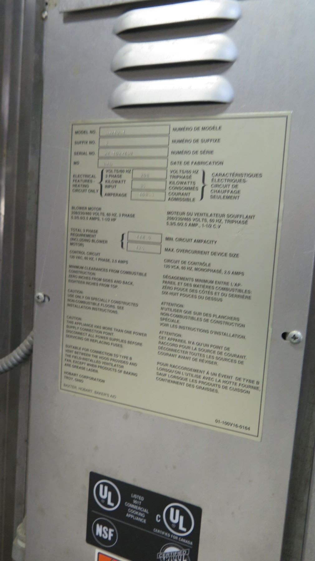 Hobart Stainless 60 Volt 3-Phase Oven, Model E0210-E1