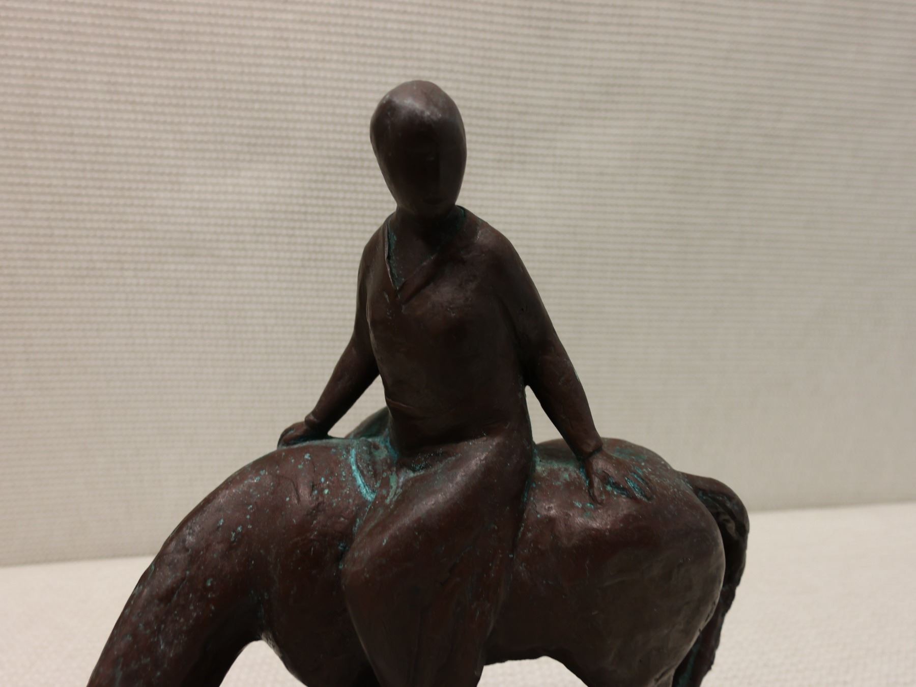 Horse and Rider Sculpture, Signed M. Pineda 14"H