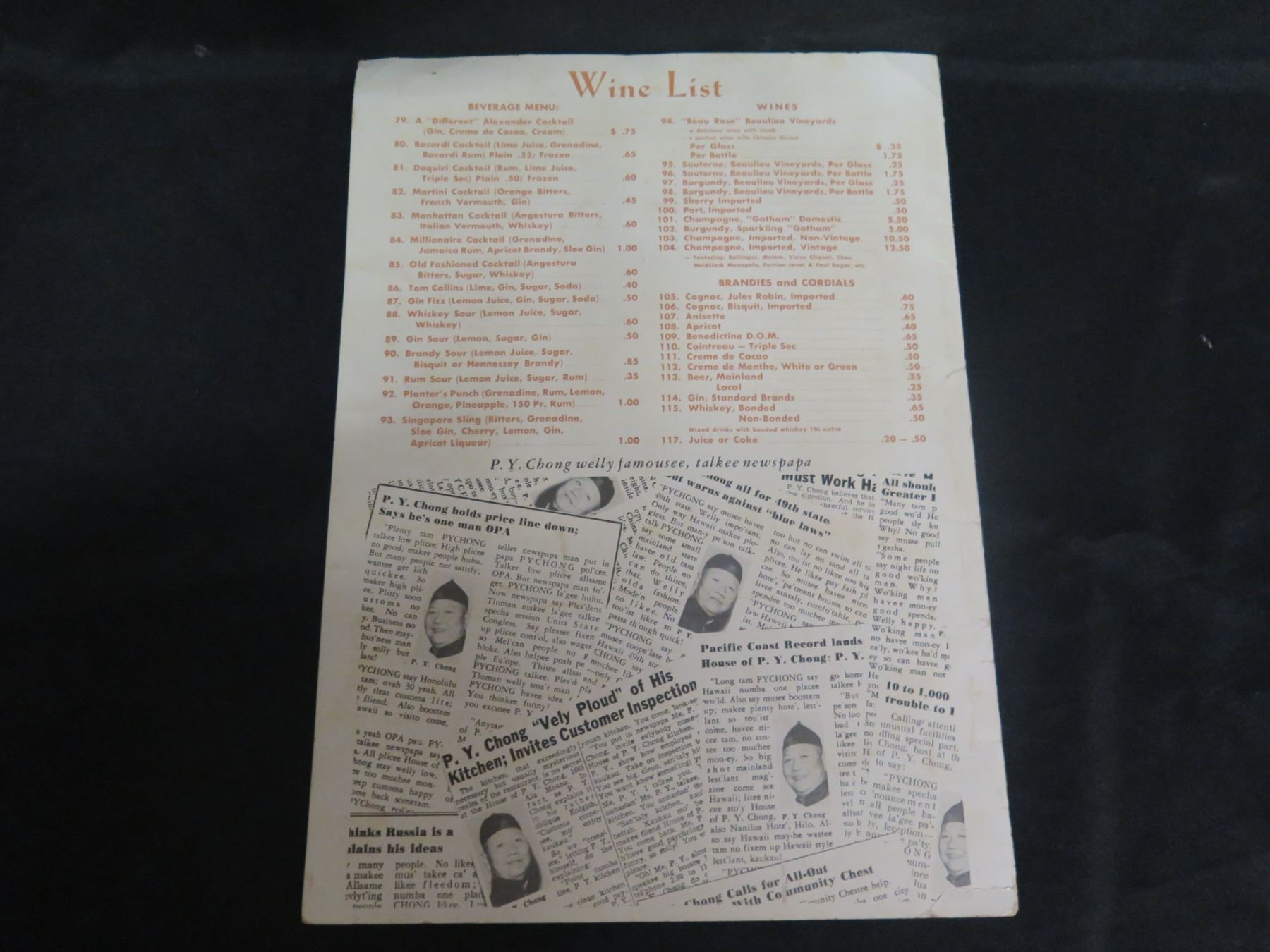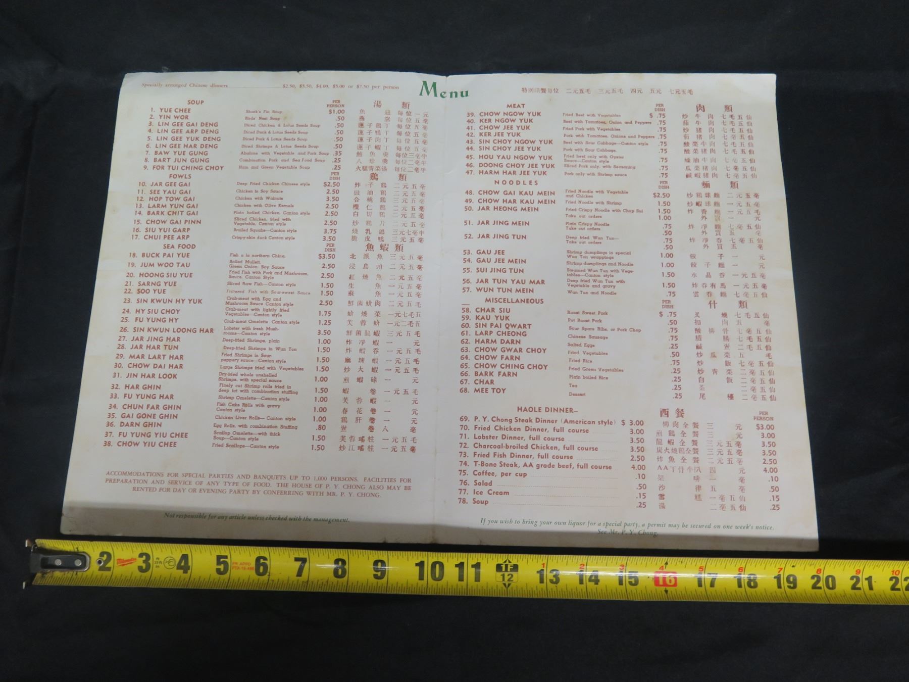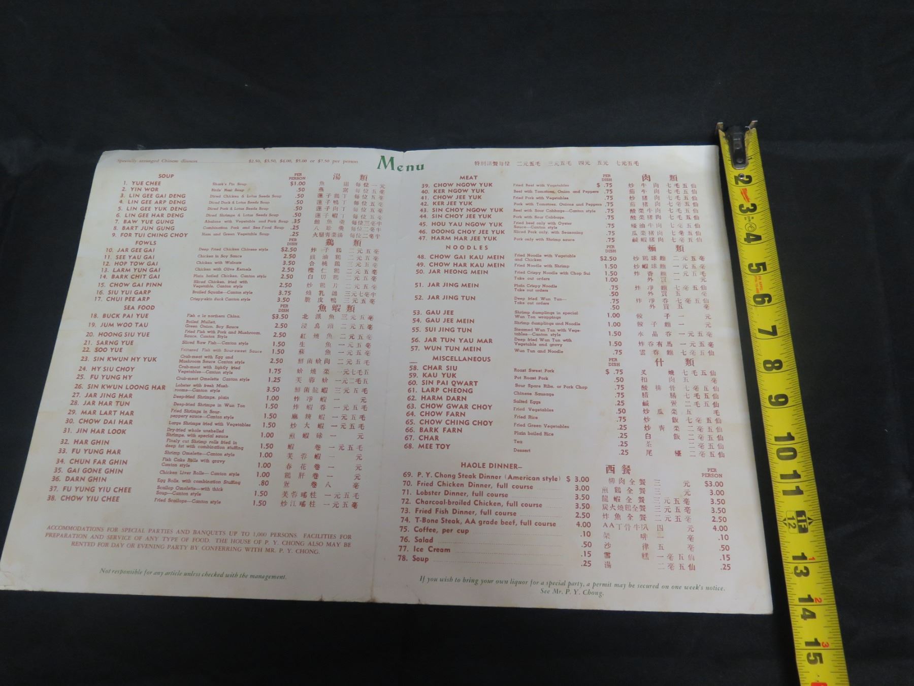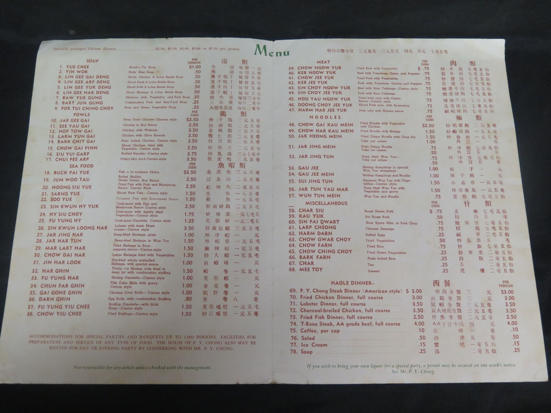 House of P.Y. Chong Menu, Wine List & Bio 20"x14"
