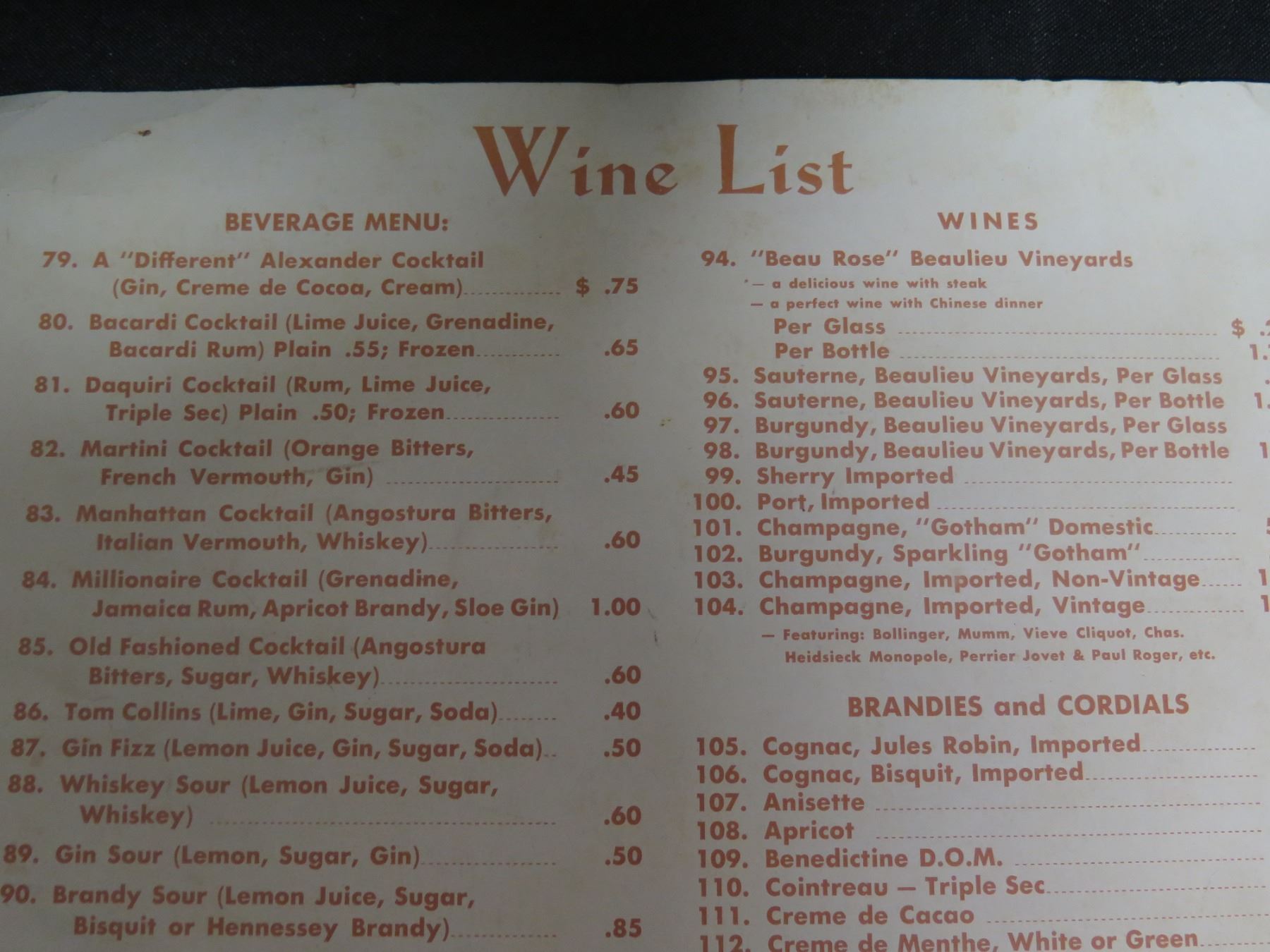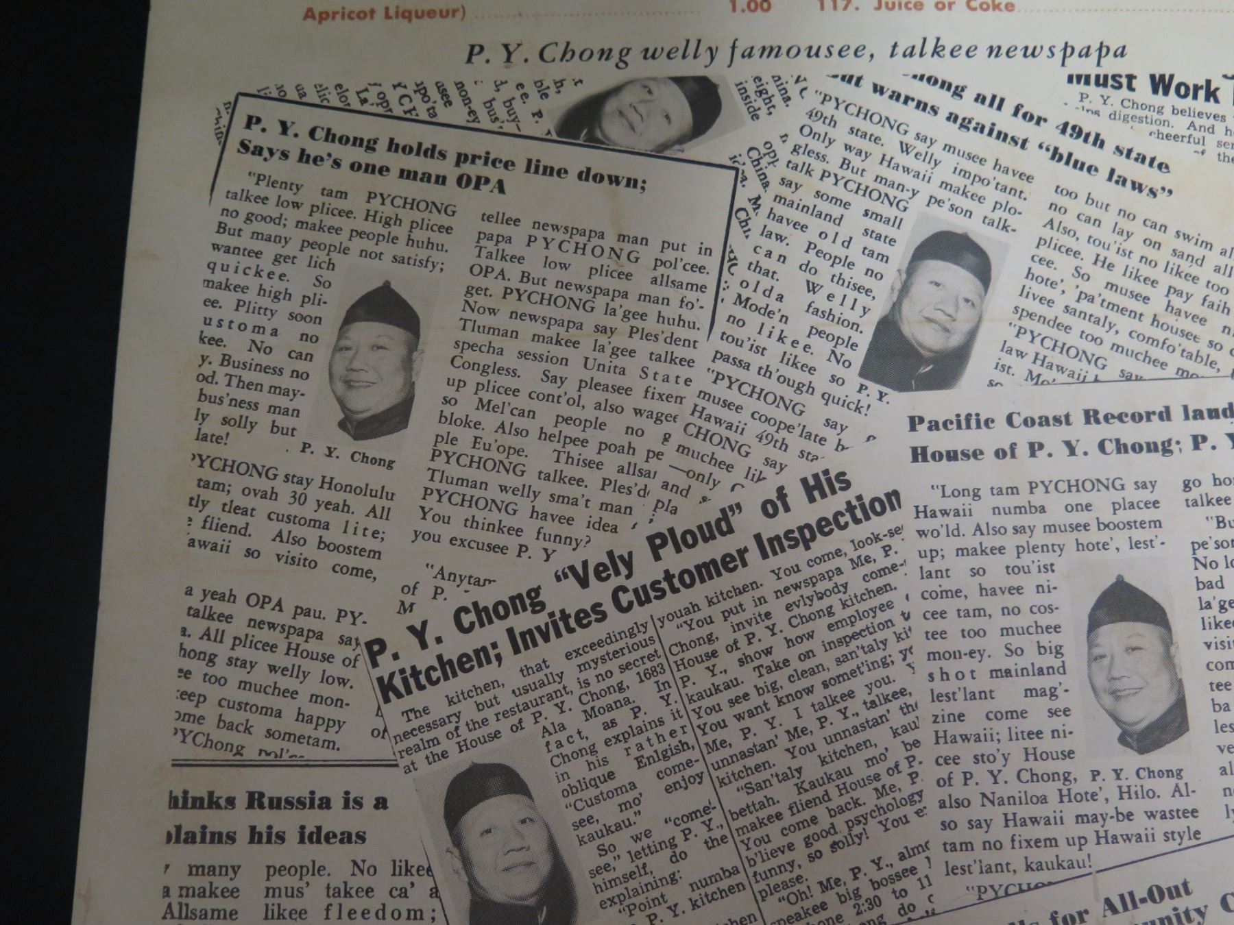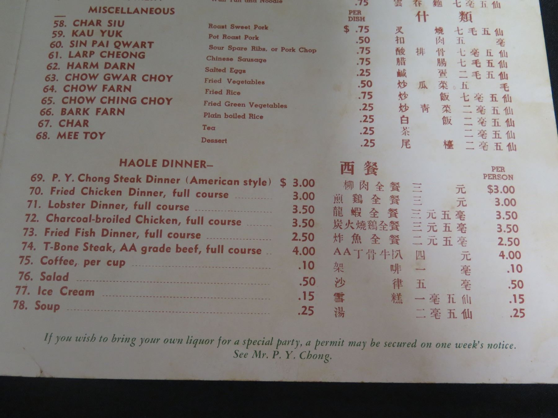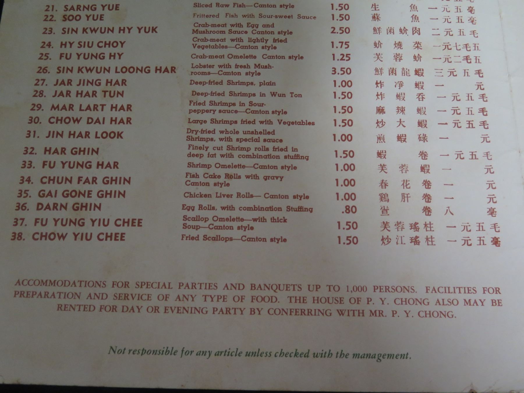 House of P.Y. Chong Menu, Wine List & Bio 20"x14"
