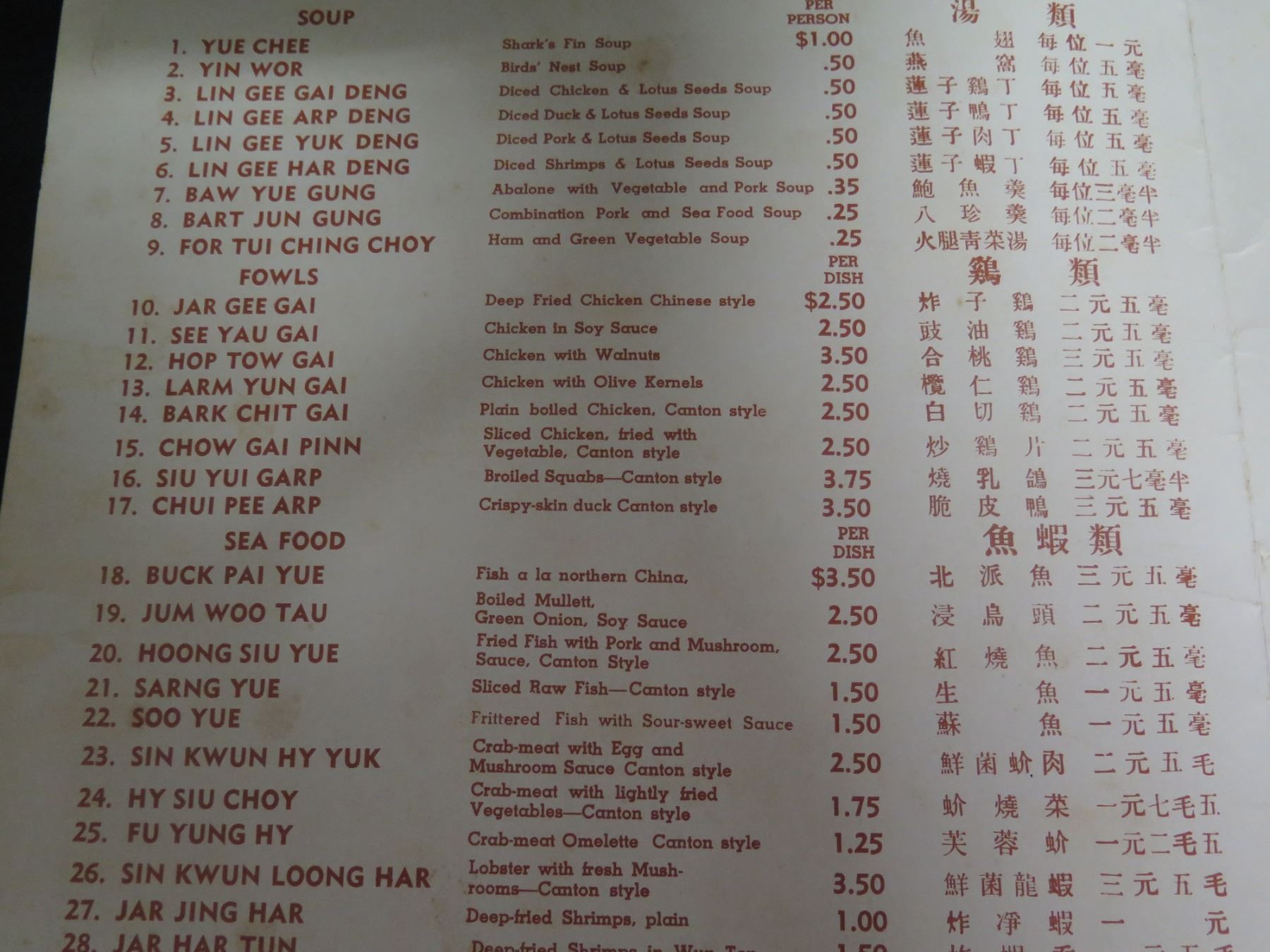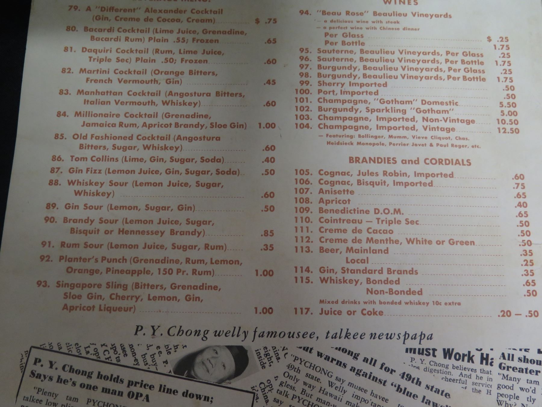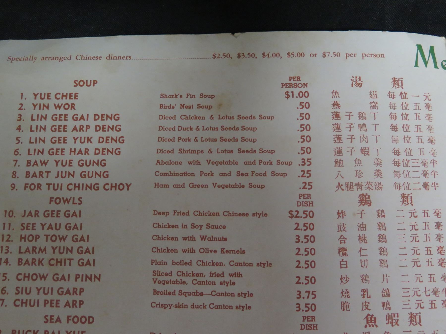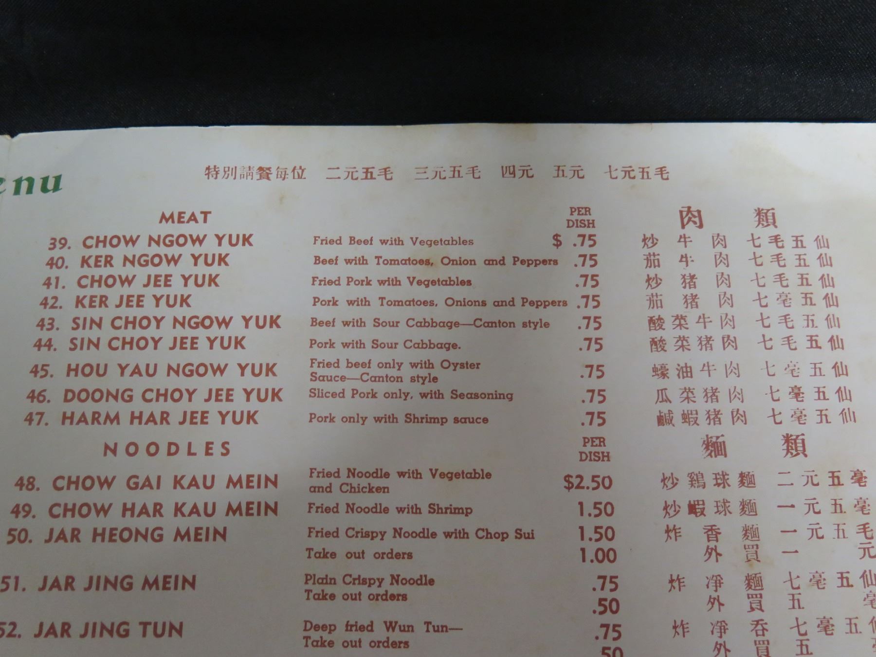 House of P.Y. Chong Menu, Wine List & Bio 20"x14"