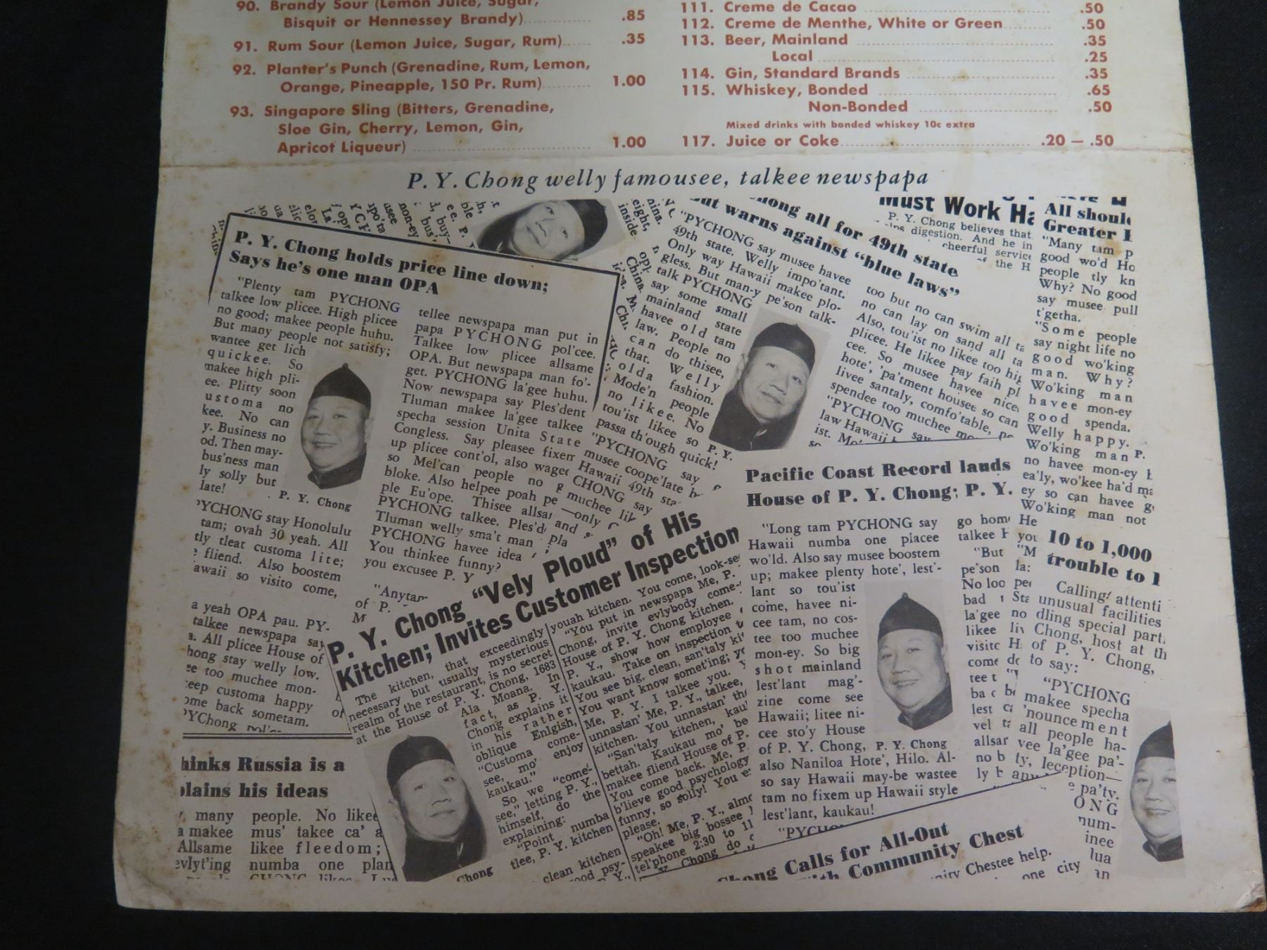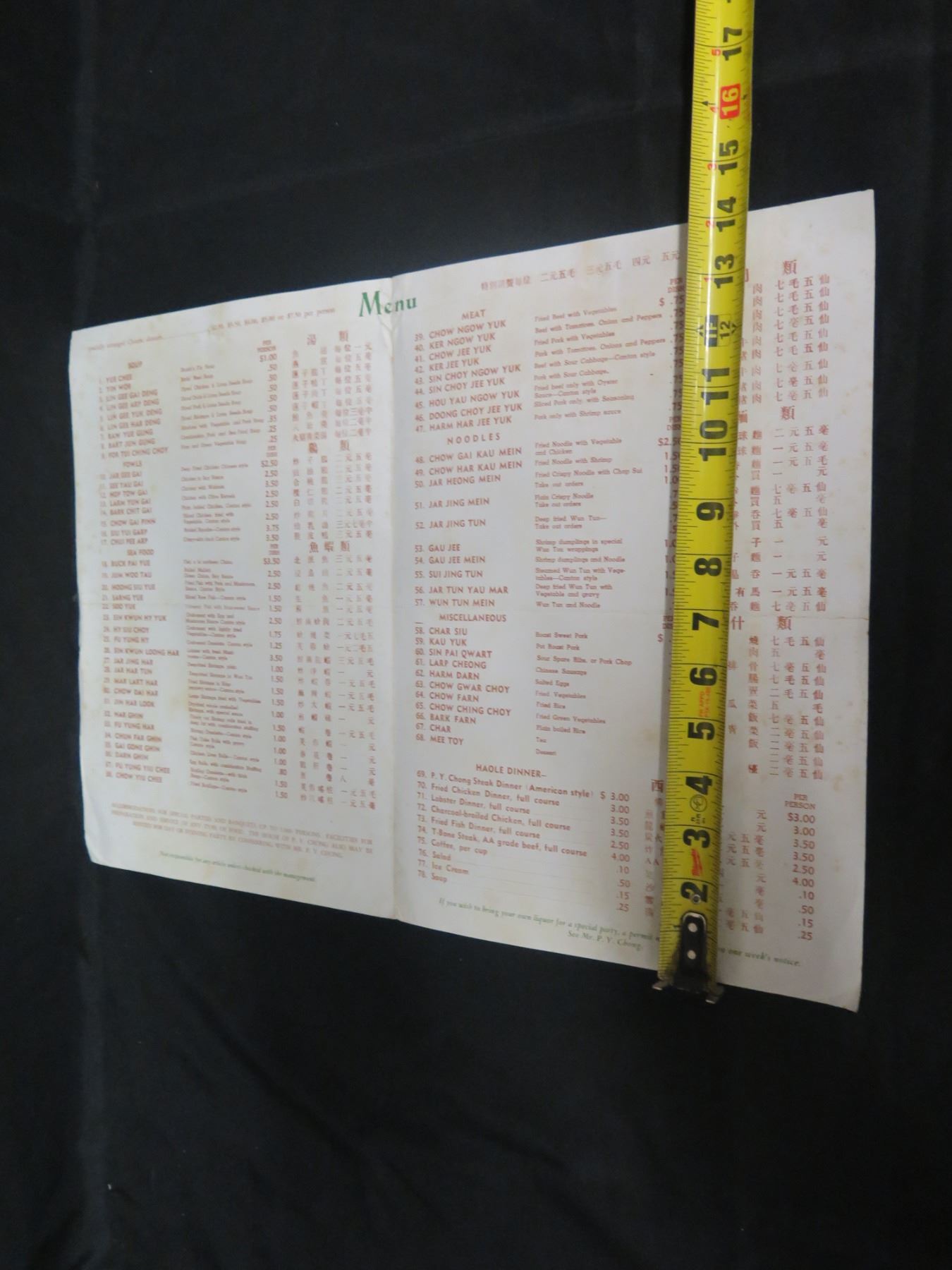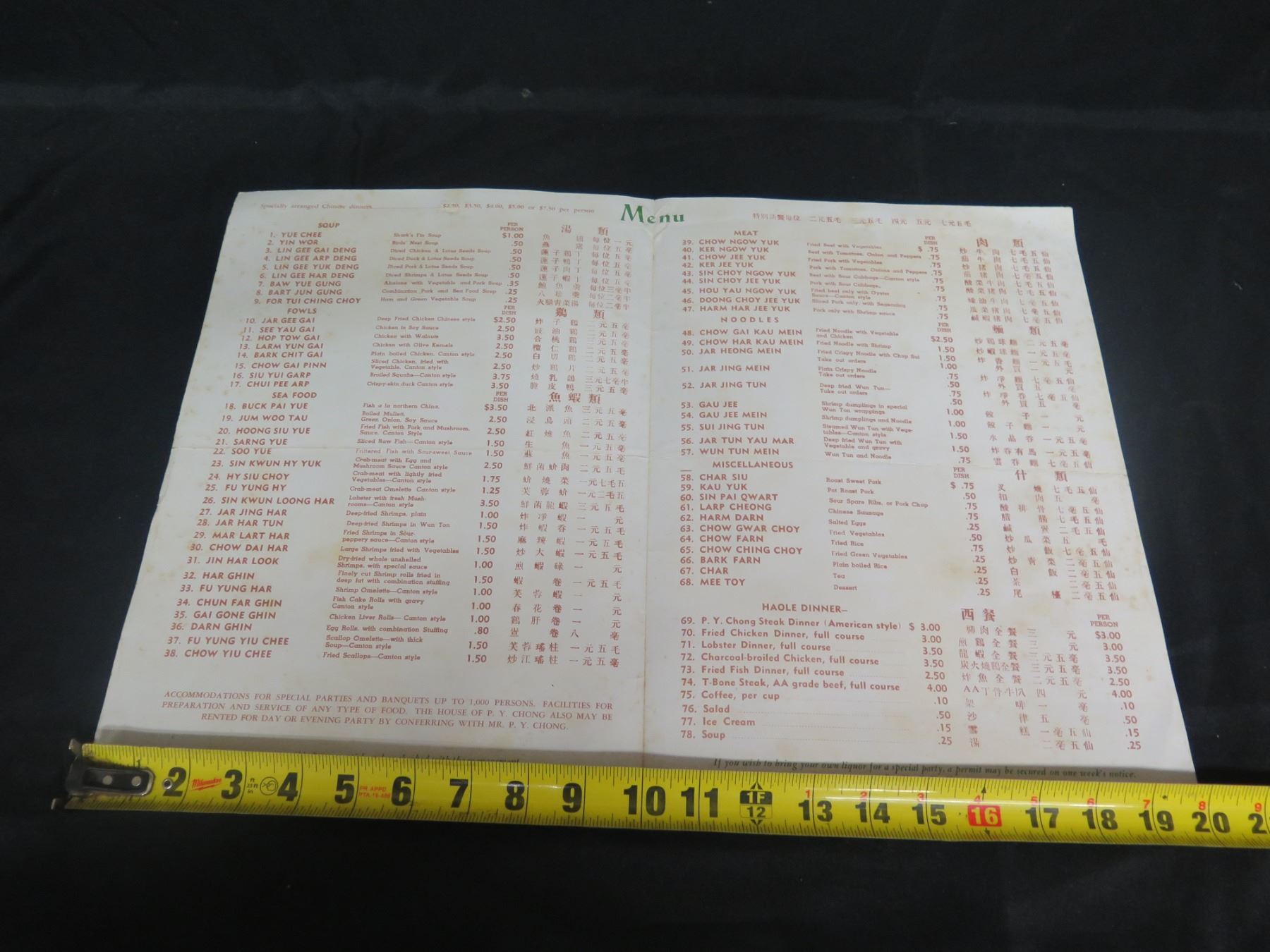 House of P.Y. Chong Menu, Wine List & Bio 20"x14"