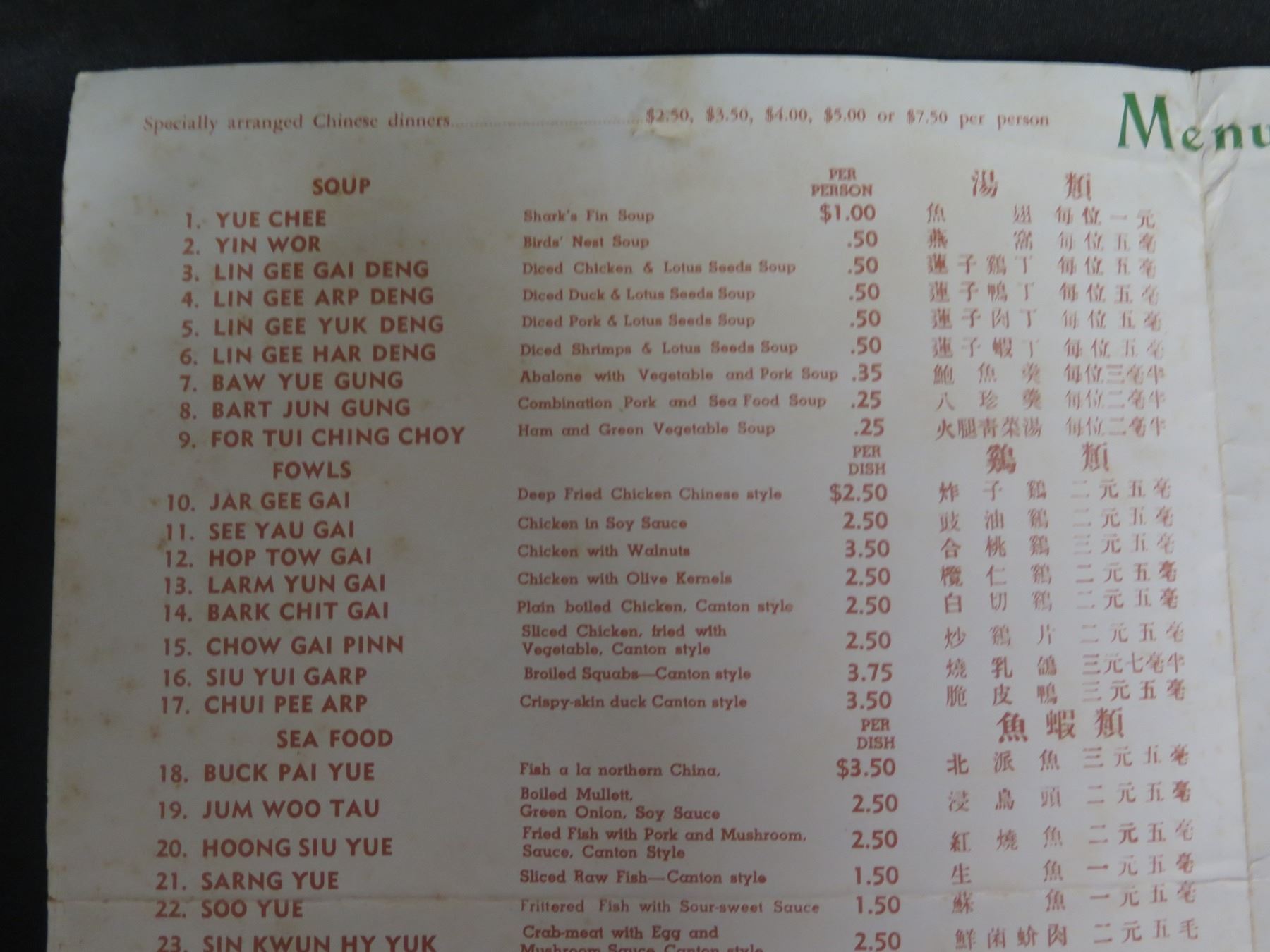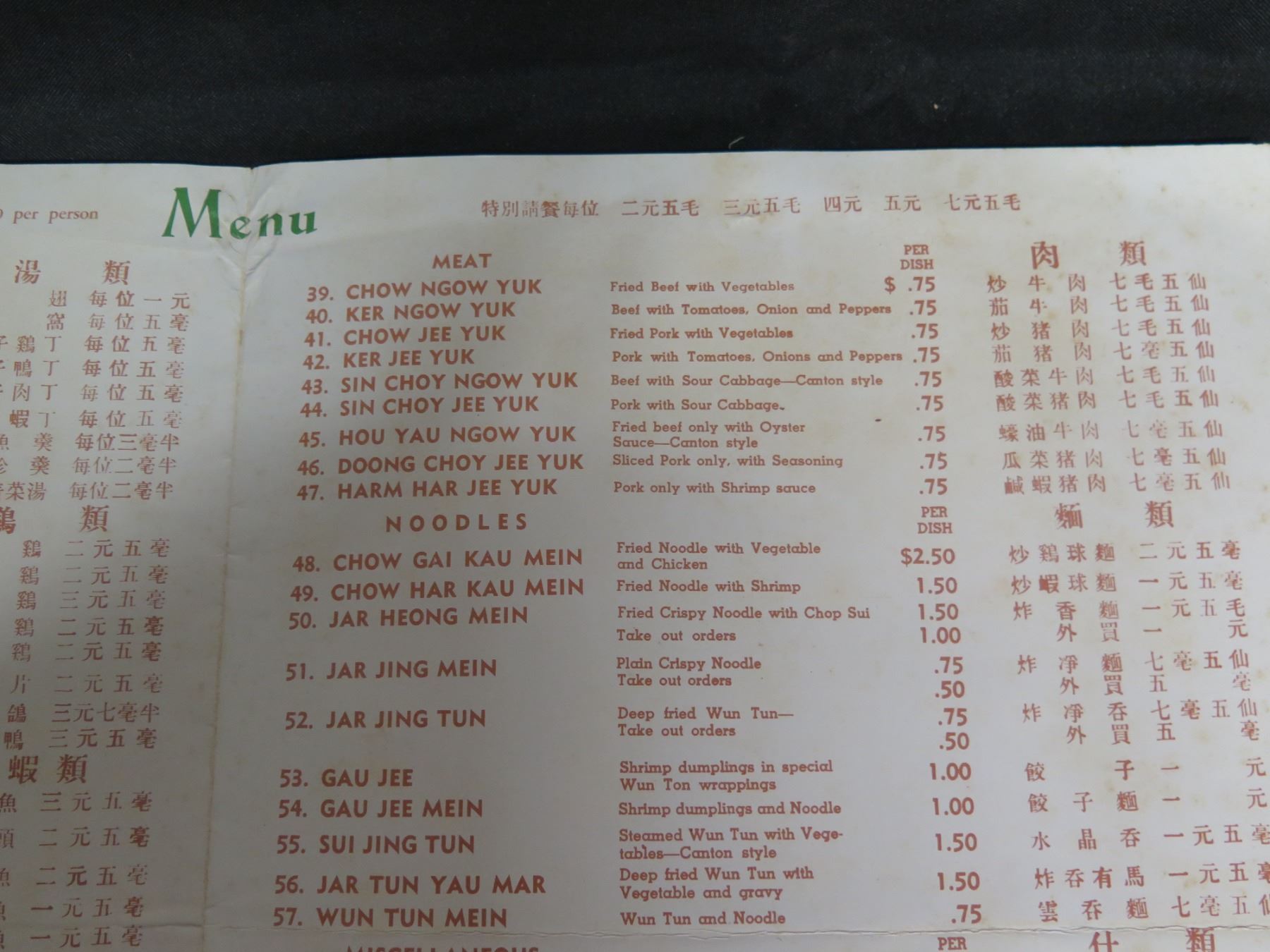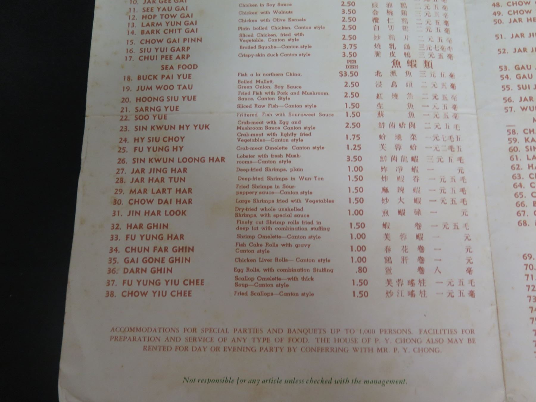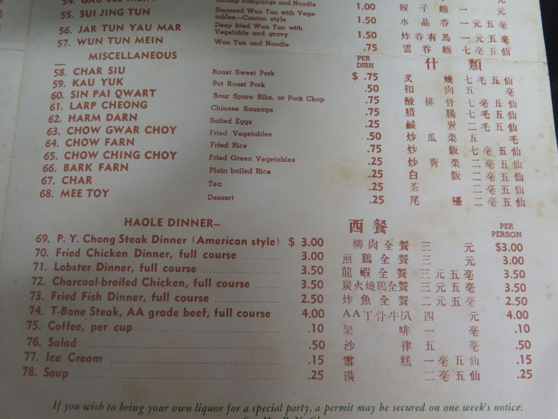 House of P.Y. Chong Menu, Wine List & Bio 20"x14"