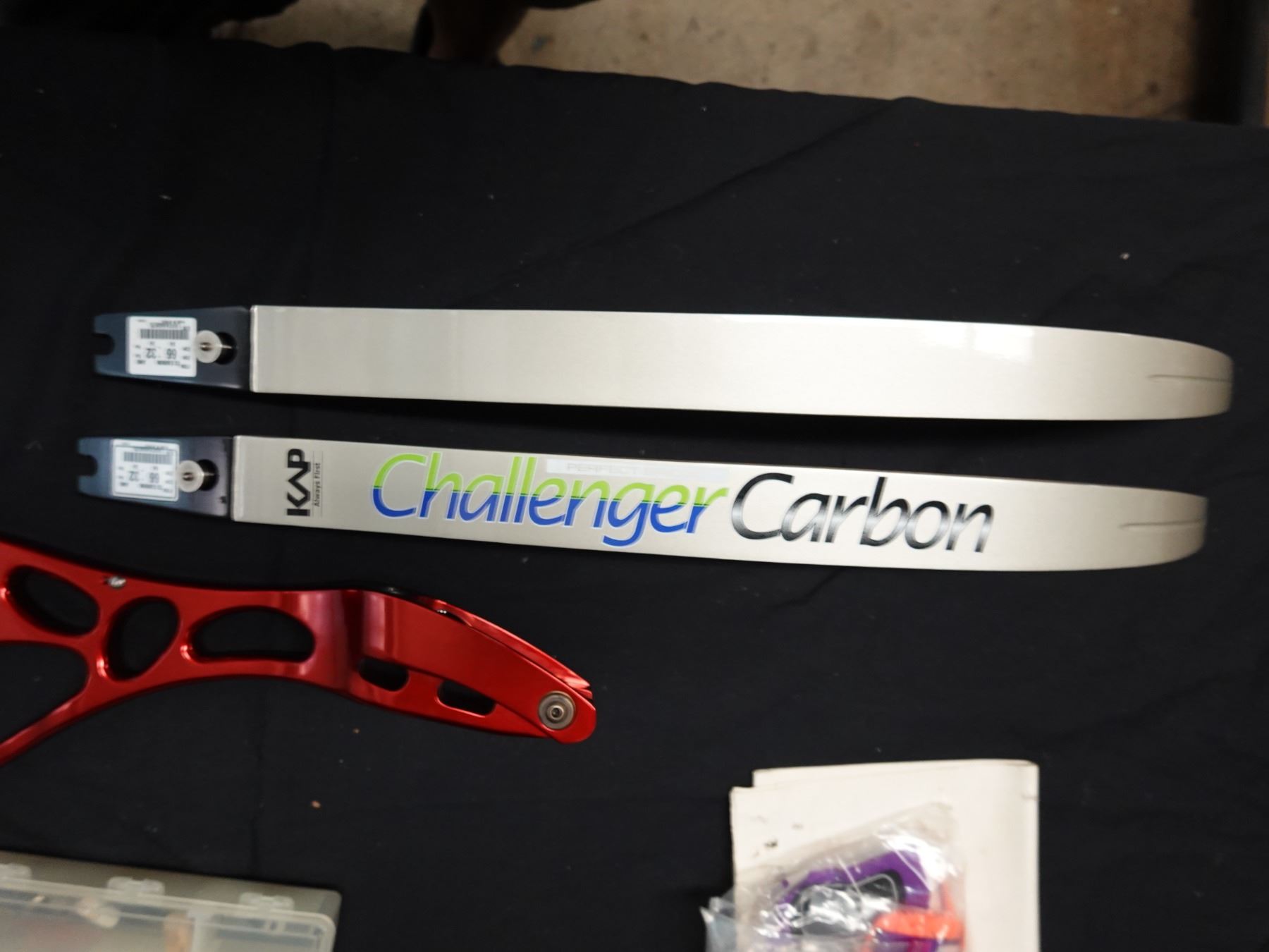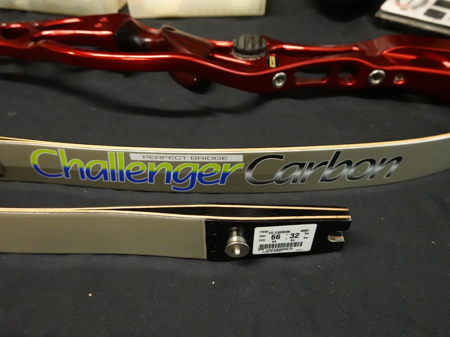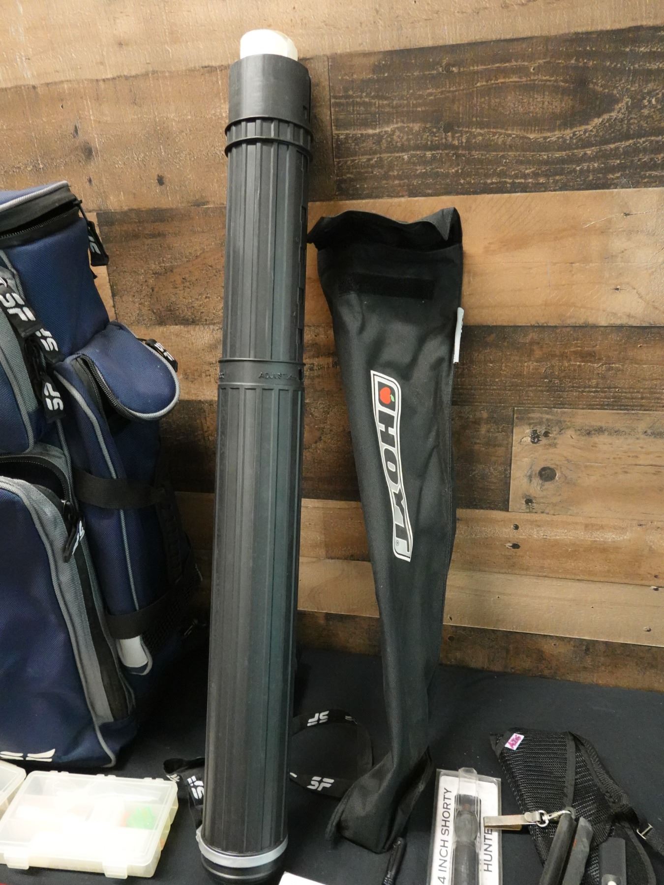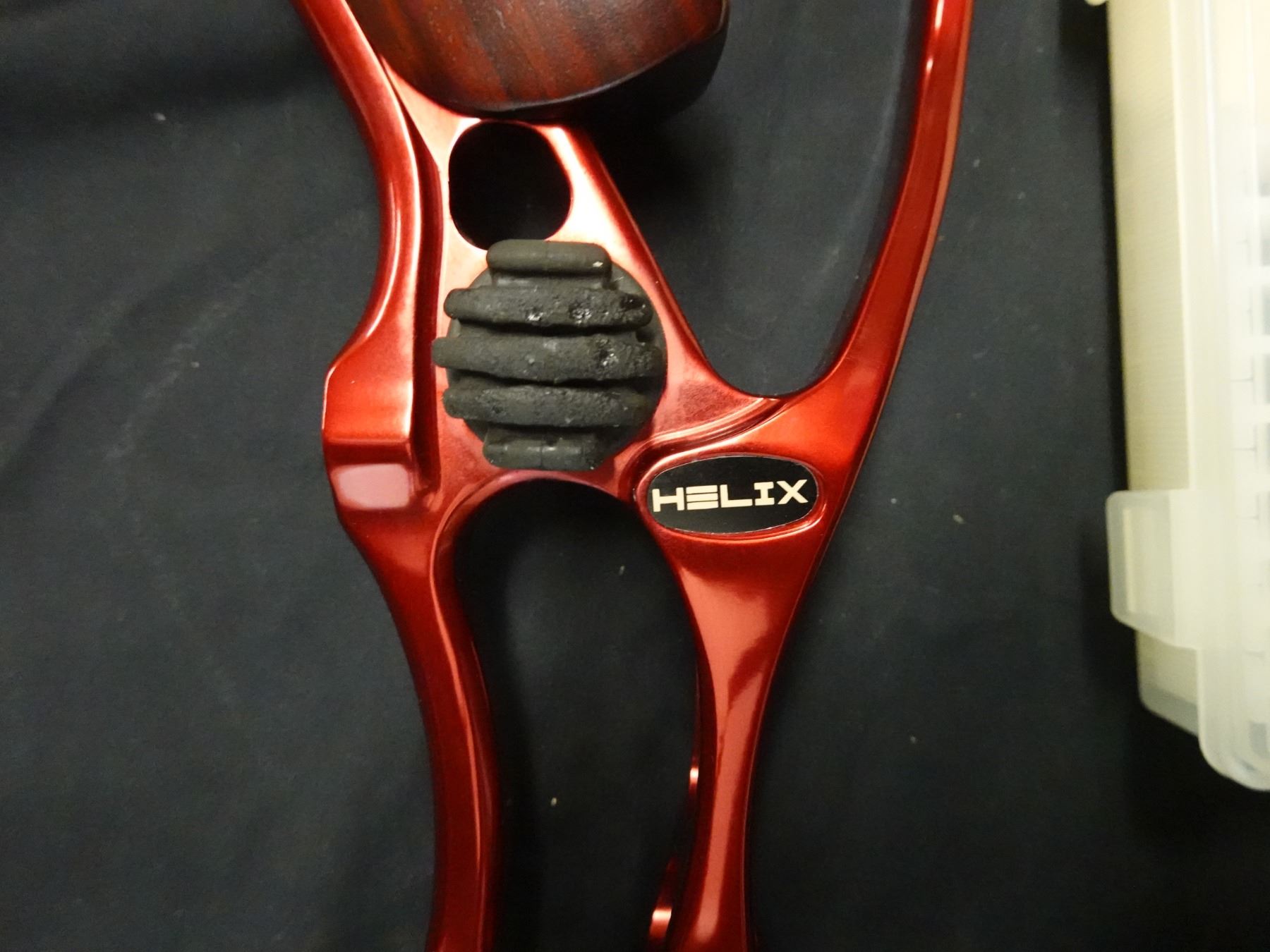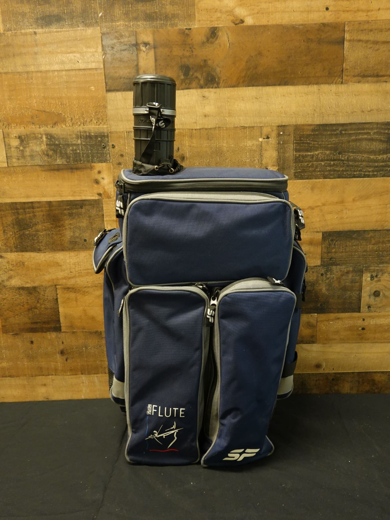 Seller reports this is a Hoyt Helix right handed riser and Win&Win Kap carbon 32 pound limbs. The Flute field backpack is included with arrow/target hard tube, rain cover, padded slots for limbs and risers, and a fully loaded box of repair bits and bobs for your new bow.