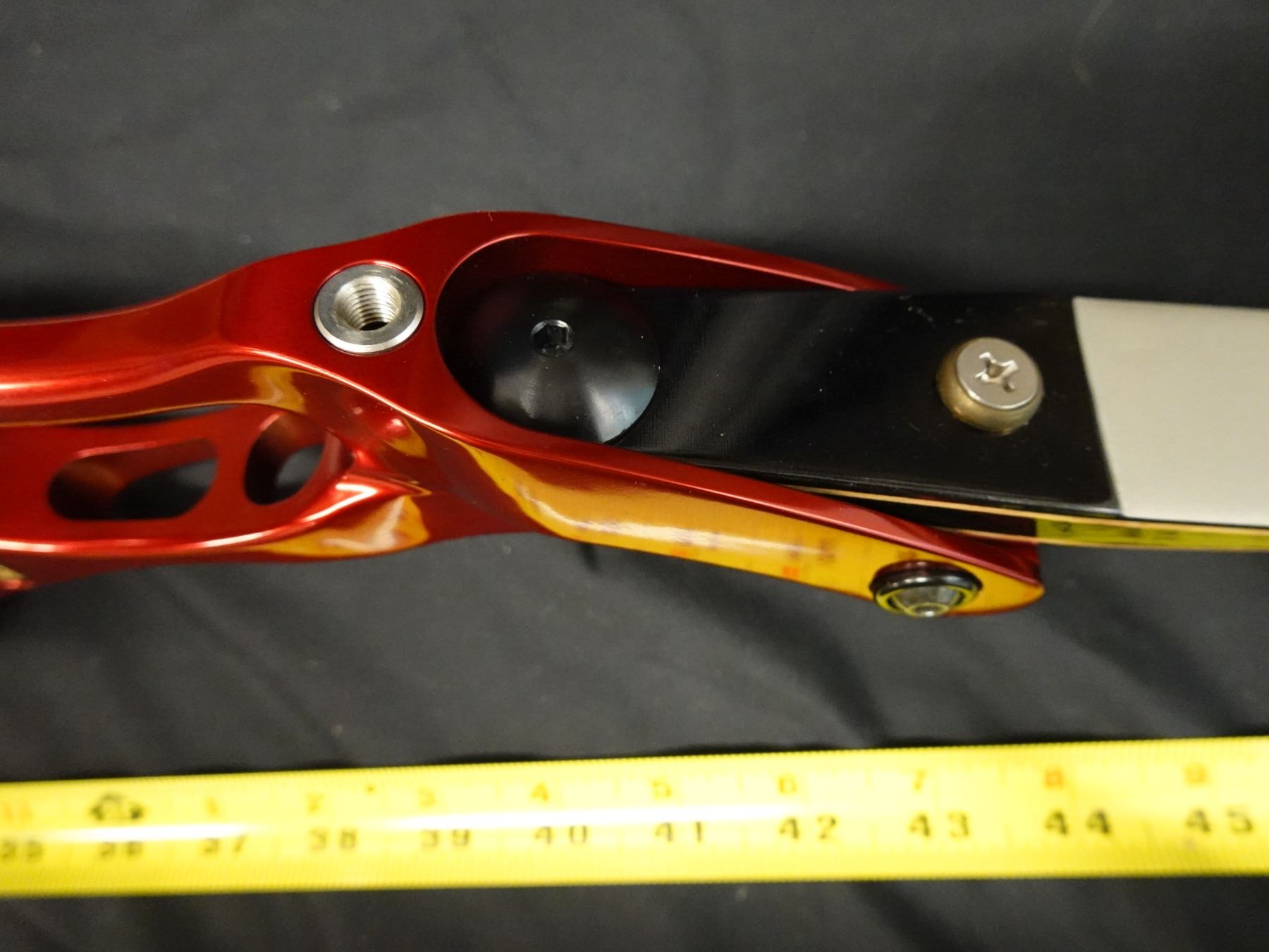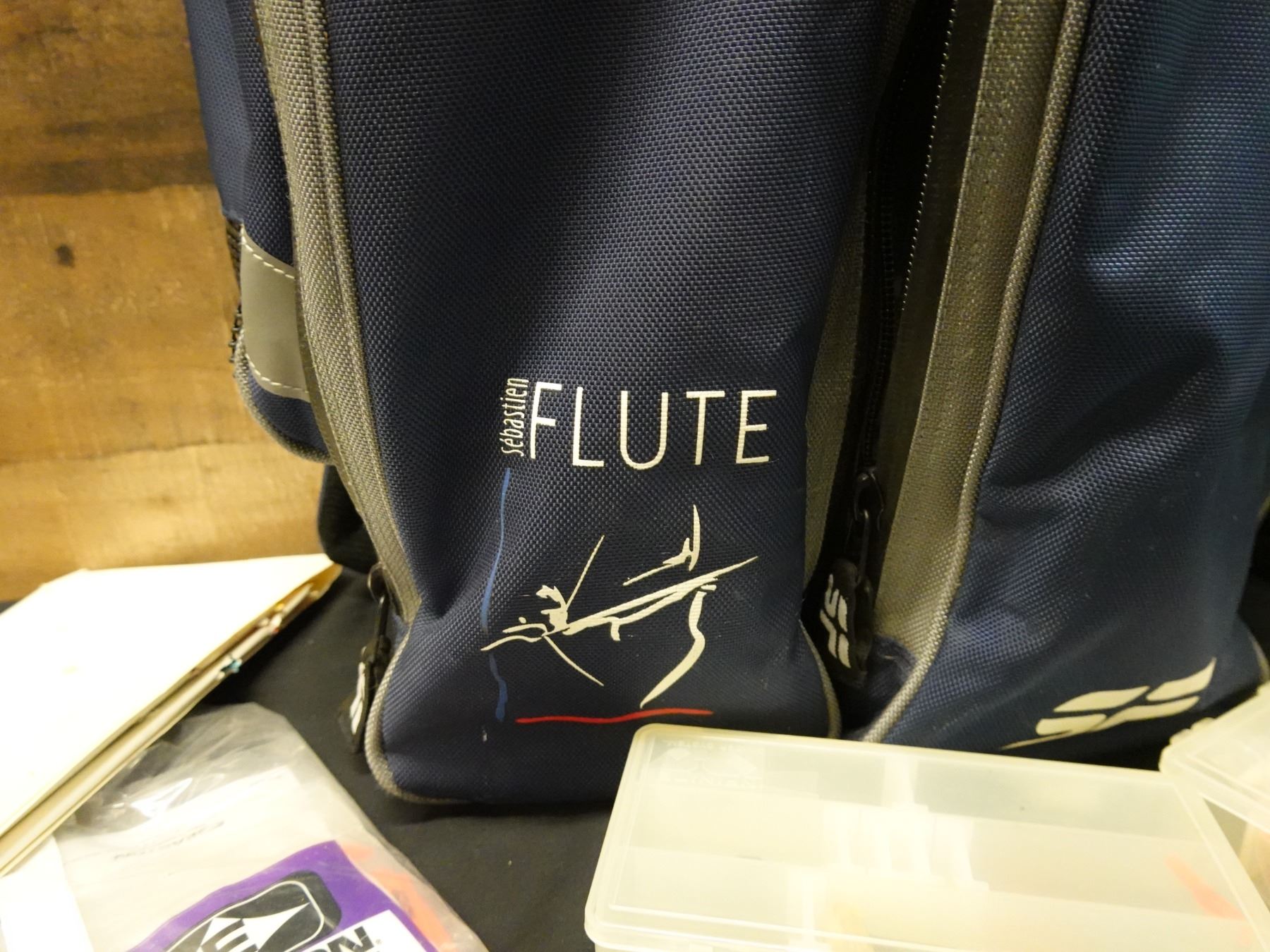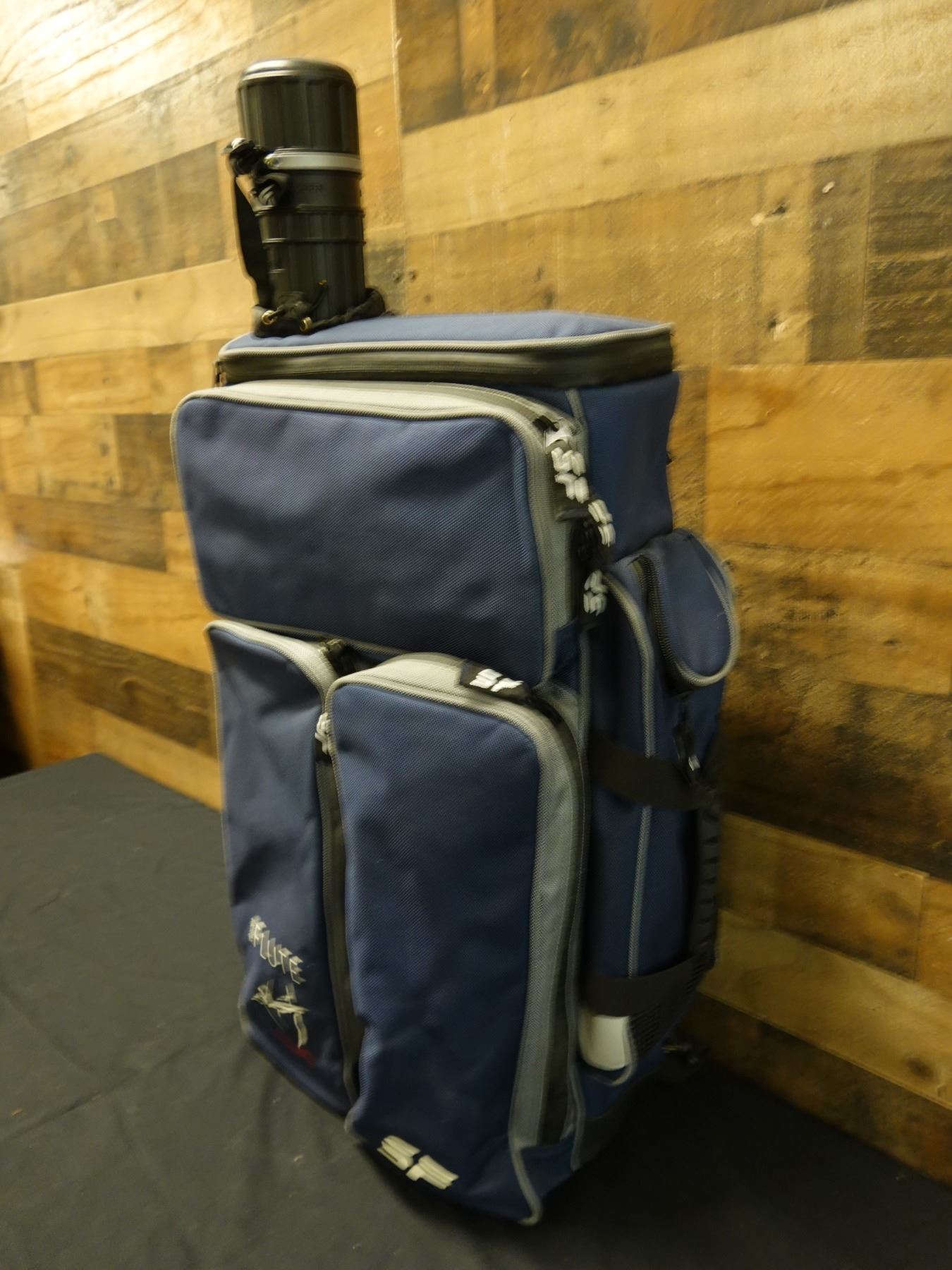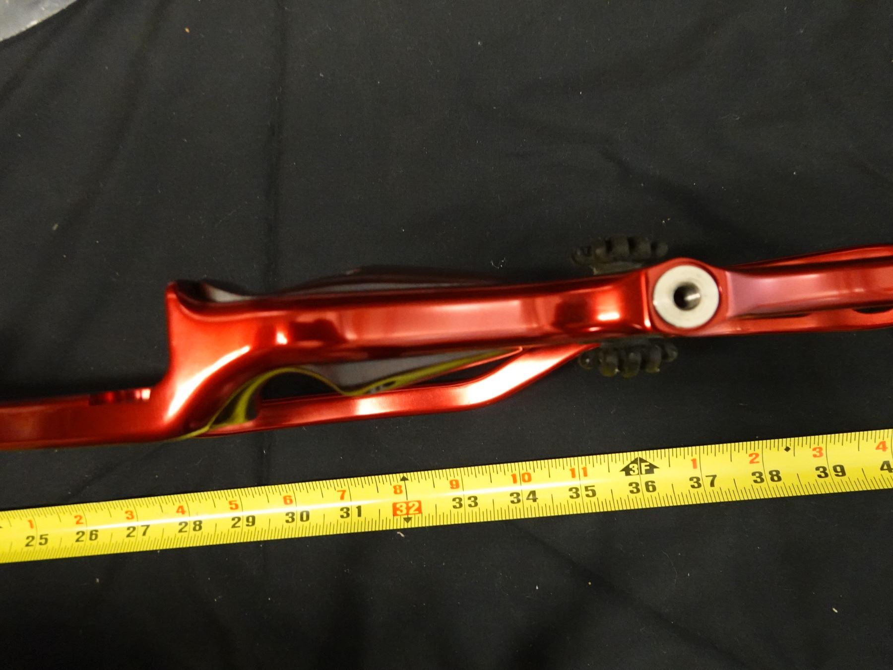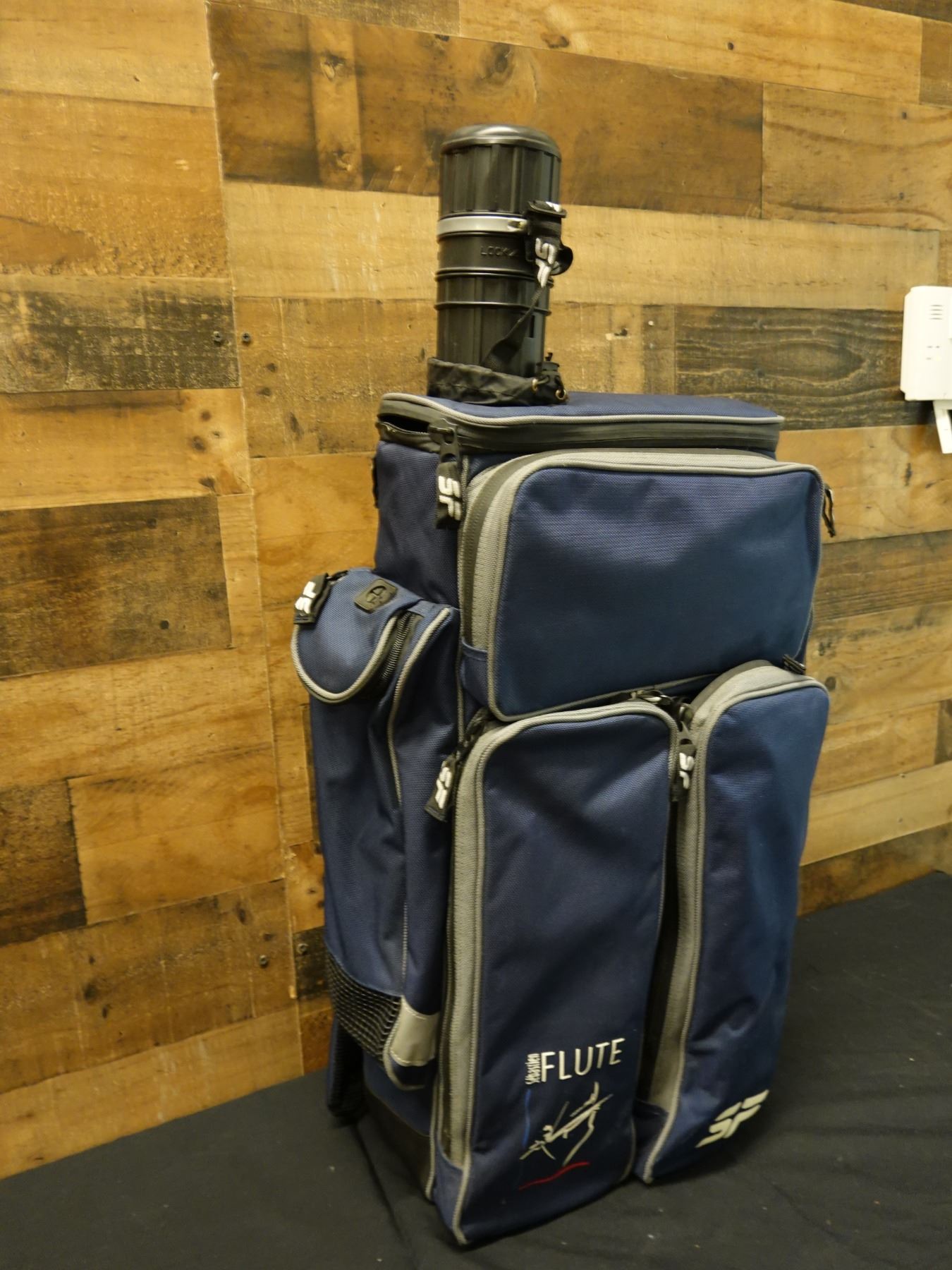 Seller reports this is a Hoyt Helix right handed riser and Win&Win Kap carbon 32 pound limbs. The Flute field backpack is included with arrow/target hard tube, rain cover, padded slots for limbs and risers, and a fully loaded box of repair bits and bobs for your new bow.