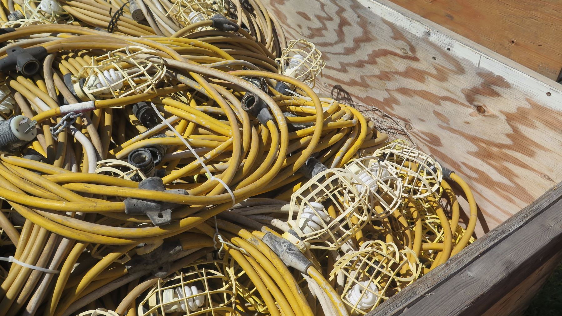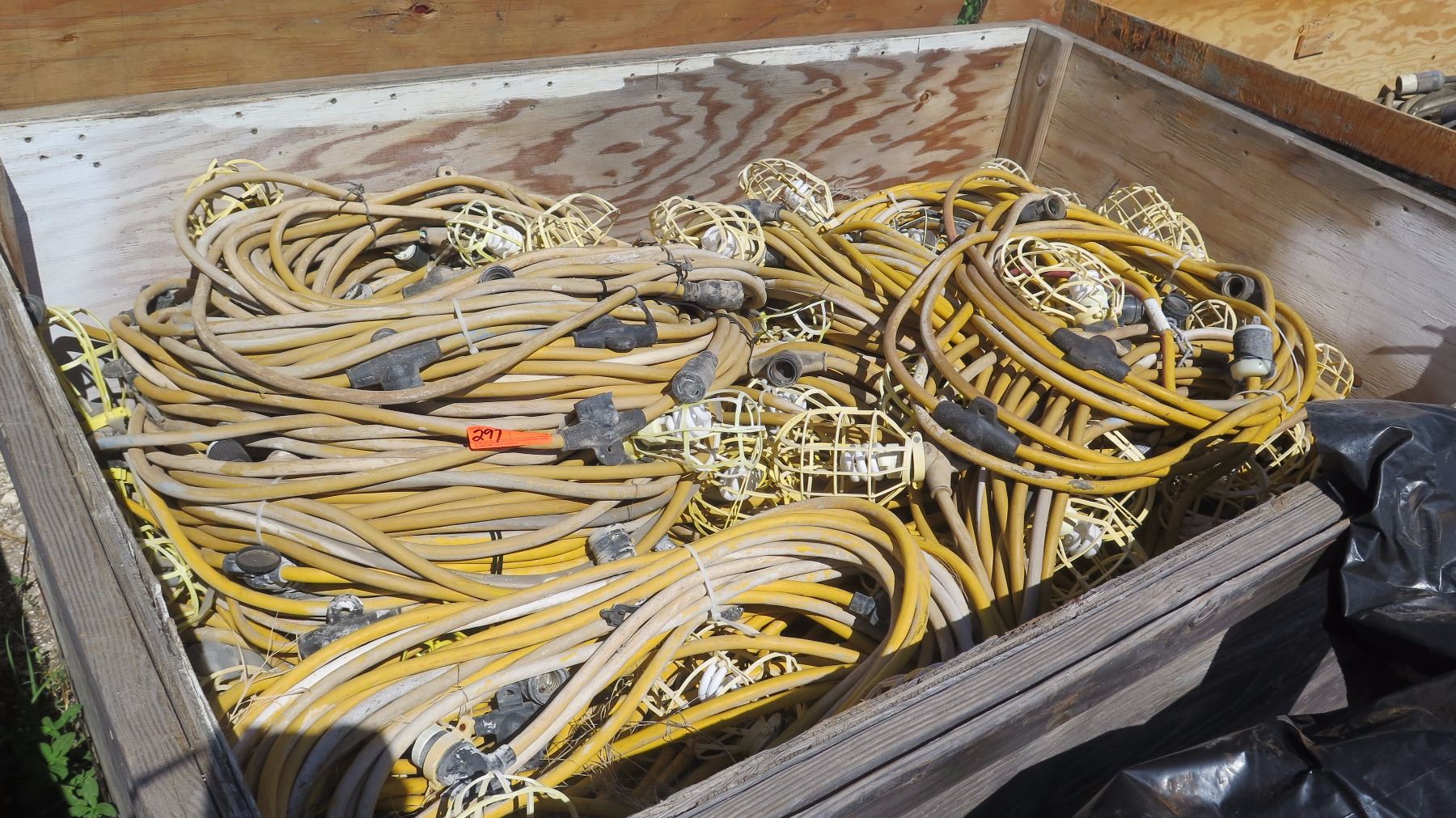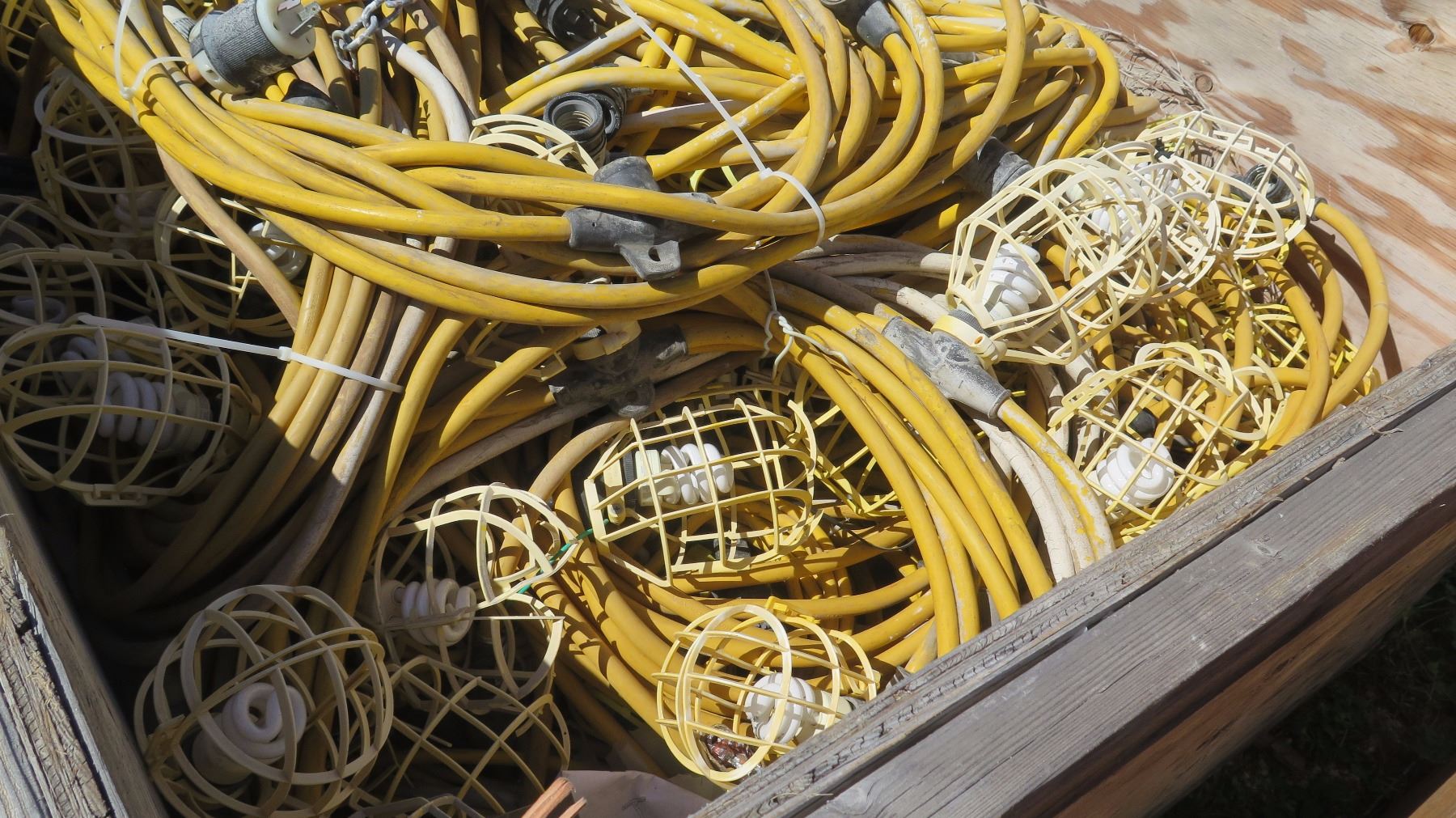 Huge Lot of Extension Cables and Caged-Light Construction Lighting
