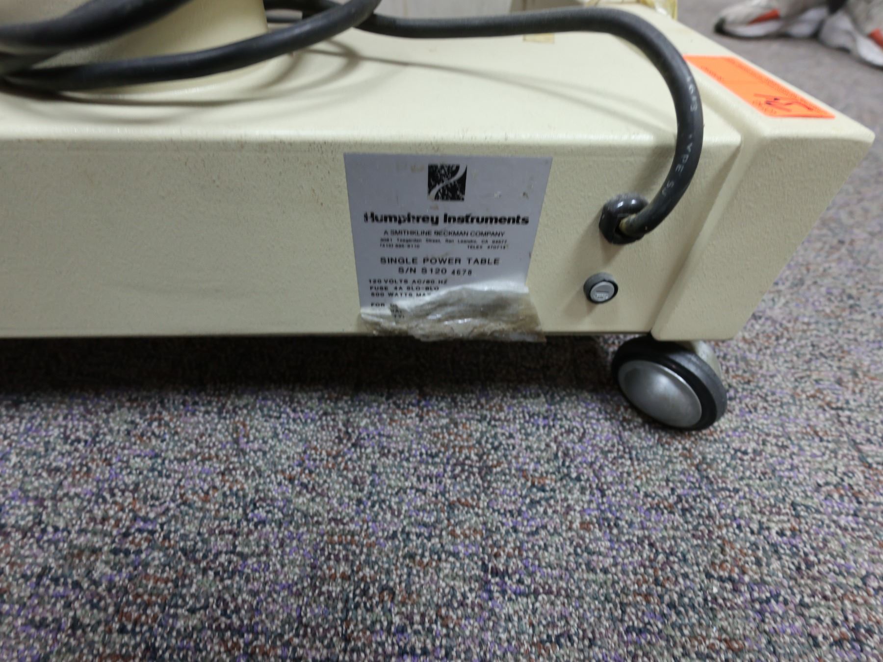Humphrey Instruments Single Power Table on Wheels 24" x 18" x 34"H