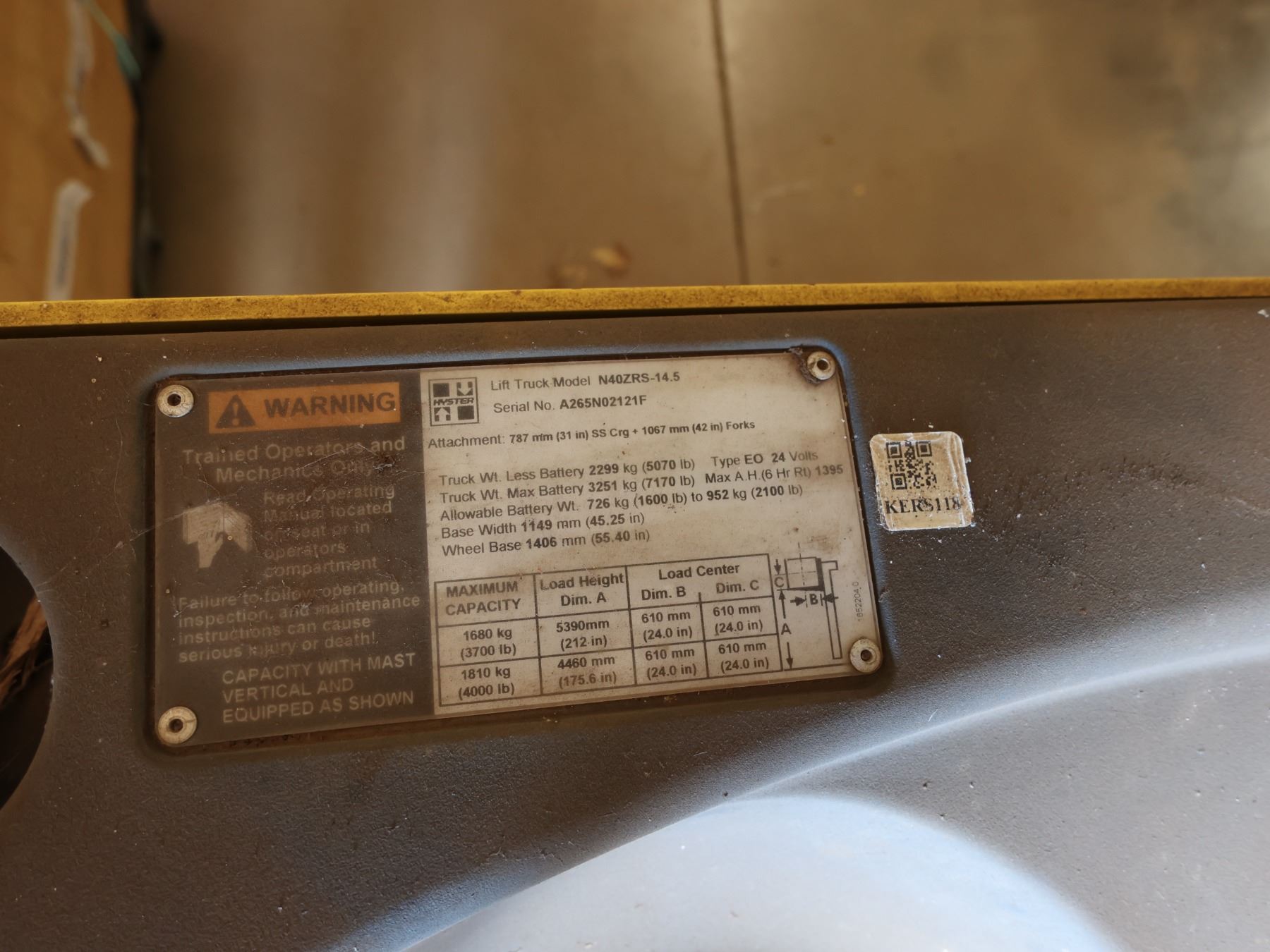 Hyster N40ZRS-14.5 AC Power Reach Lift Truck (needs repair - battery does not hold charge)