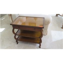 Wood End Table w/Drawer & Lower Shelves, by Baker, Approx. 2'5" W