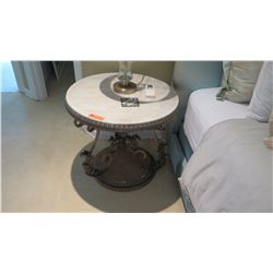Side Table - Iron Base w/Faux Croc Top & Scrolled Metal Base, Approx. 27" Dia.