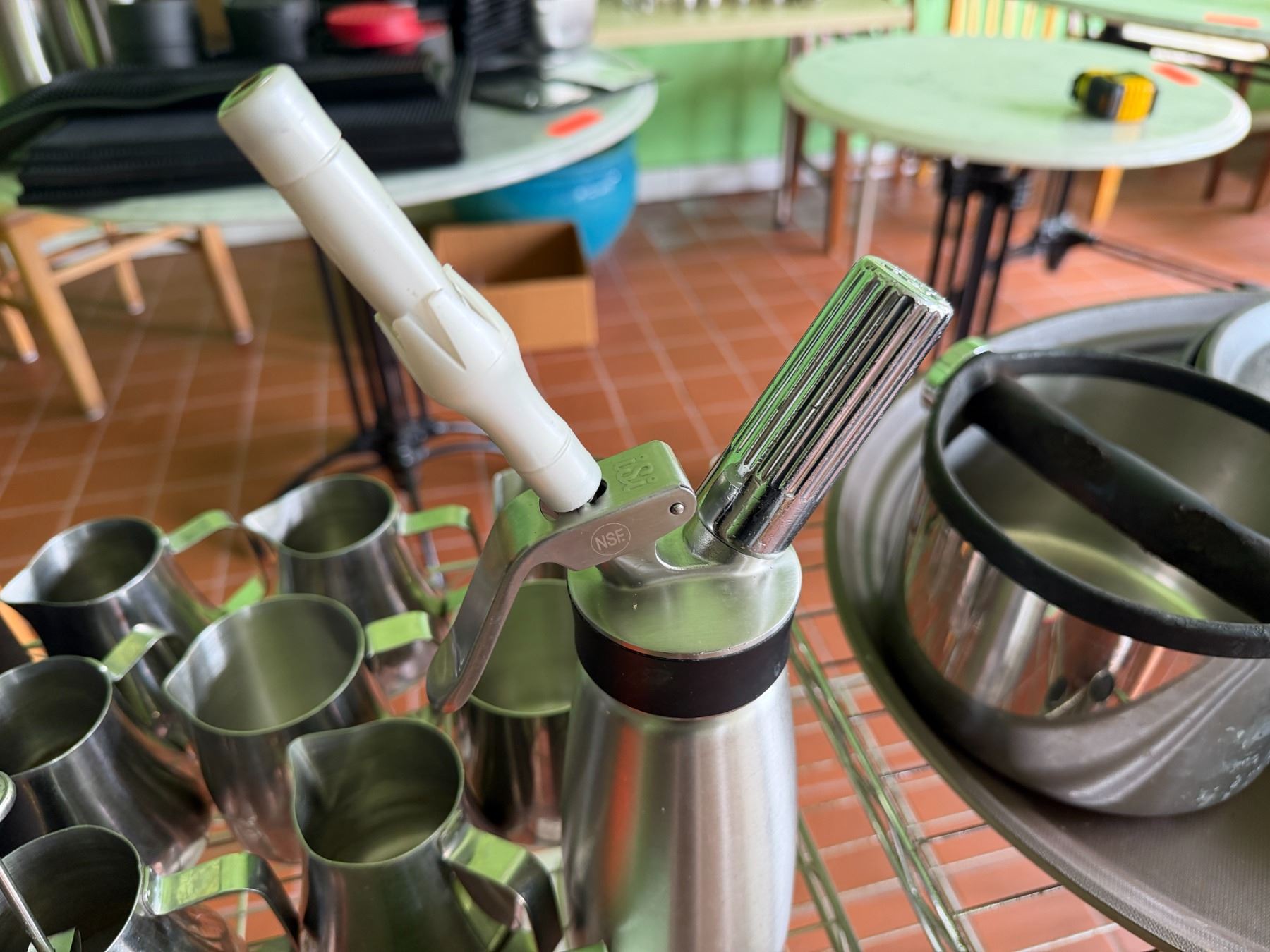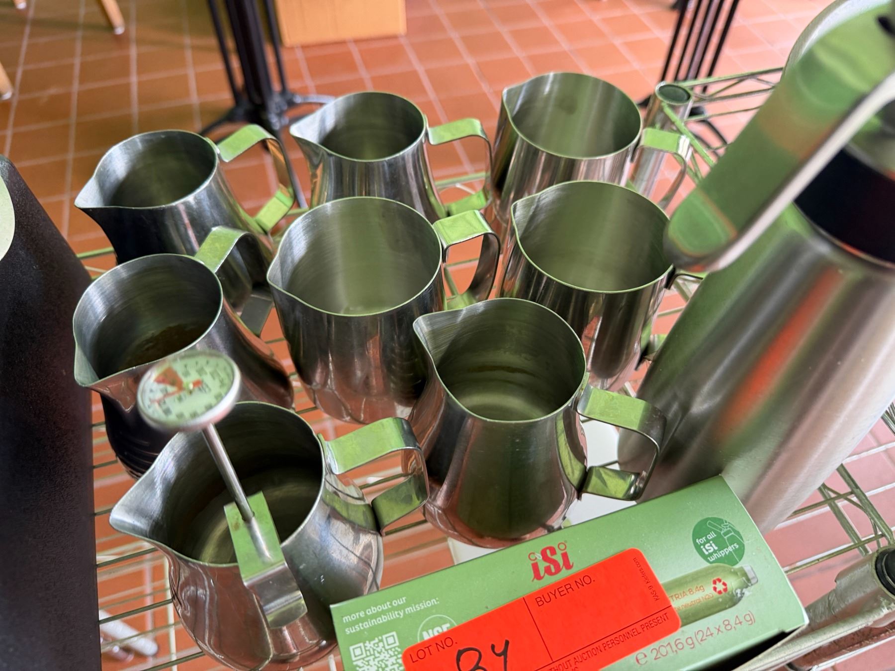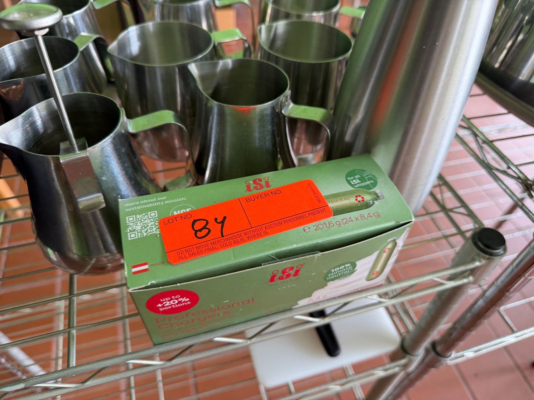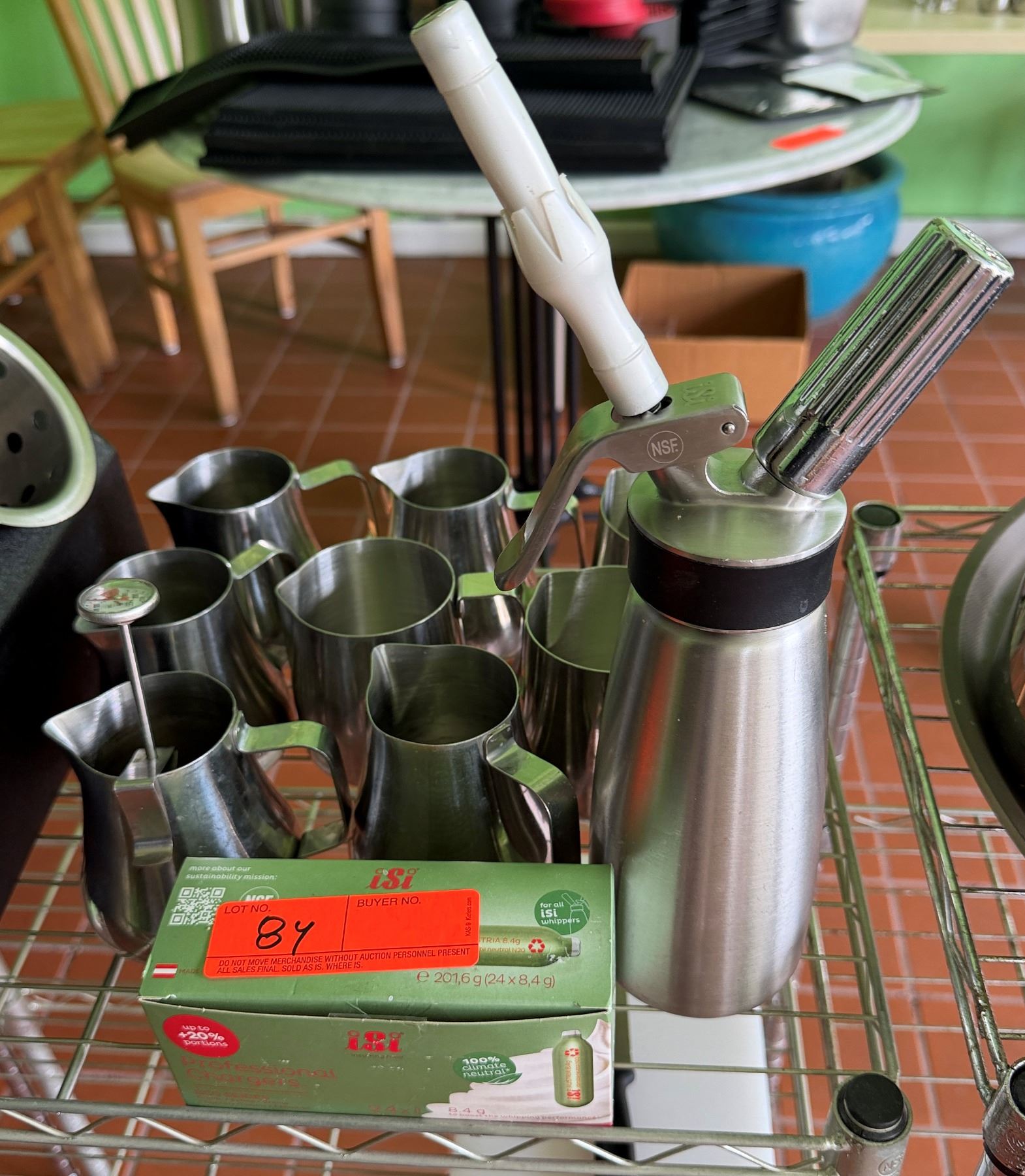 ISI Professional Whipped Cream Dispenser w/ Extra Charger & 8 Metal Milk Steaming Pitchers