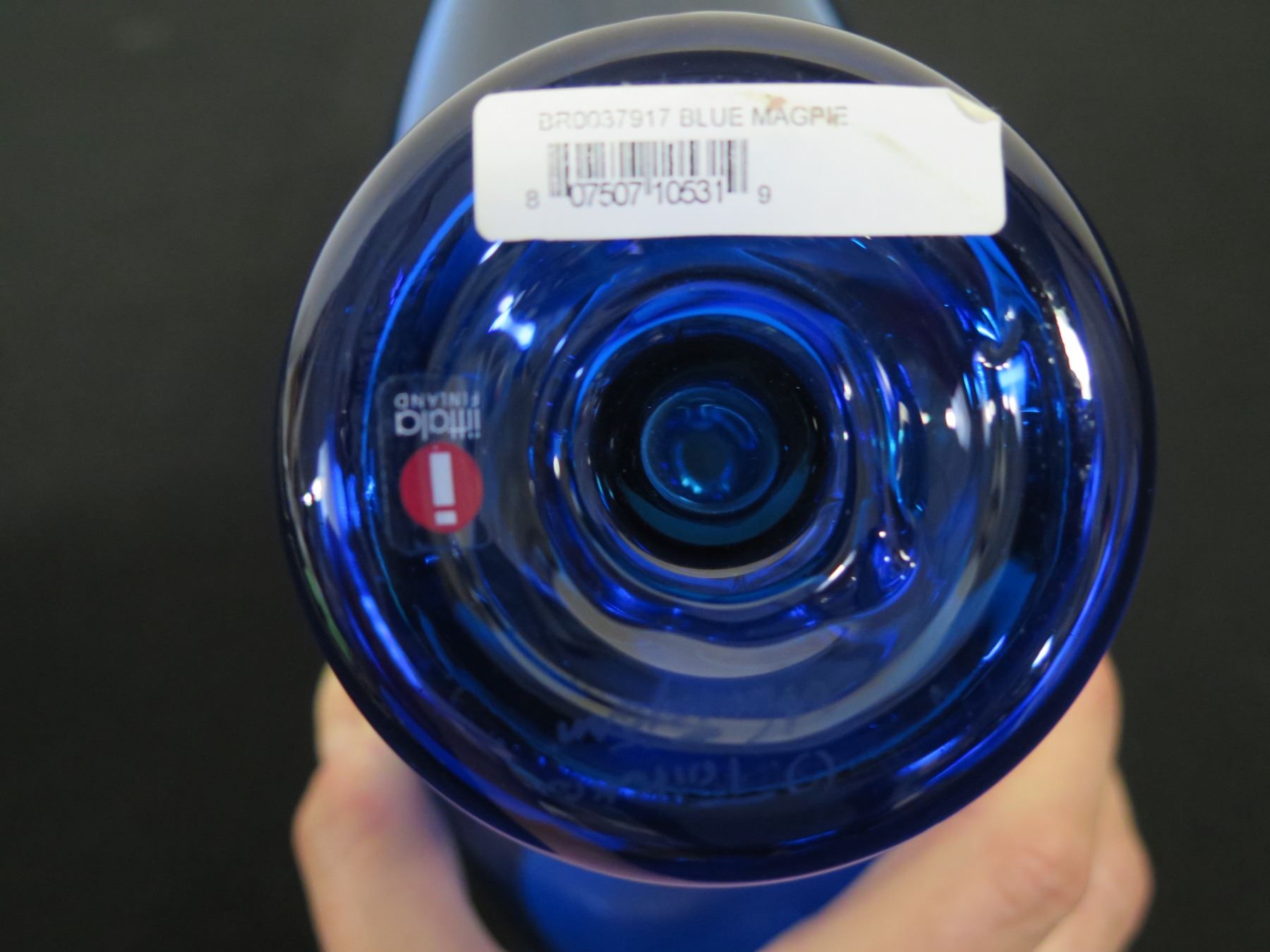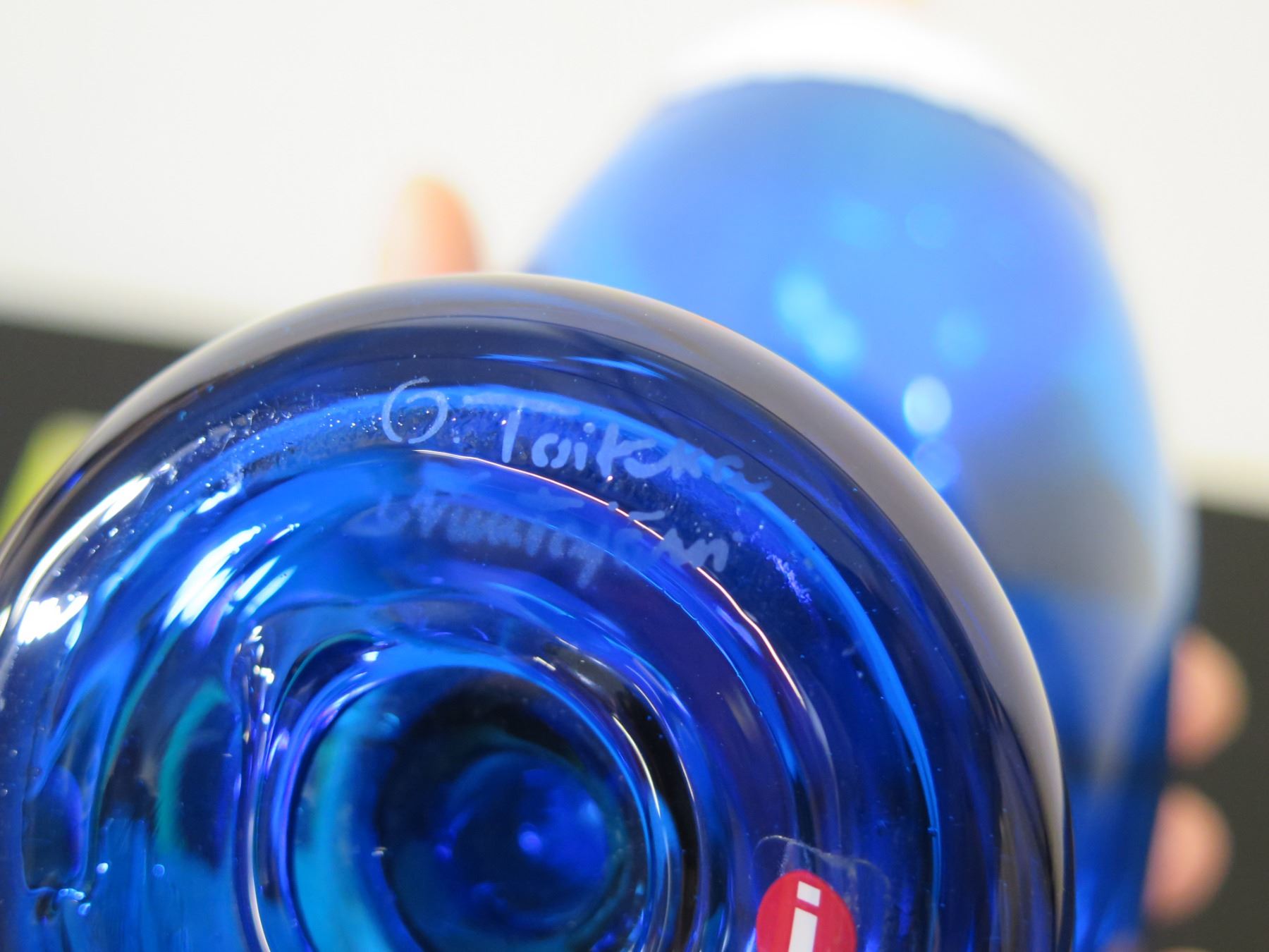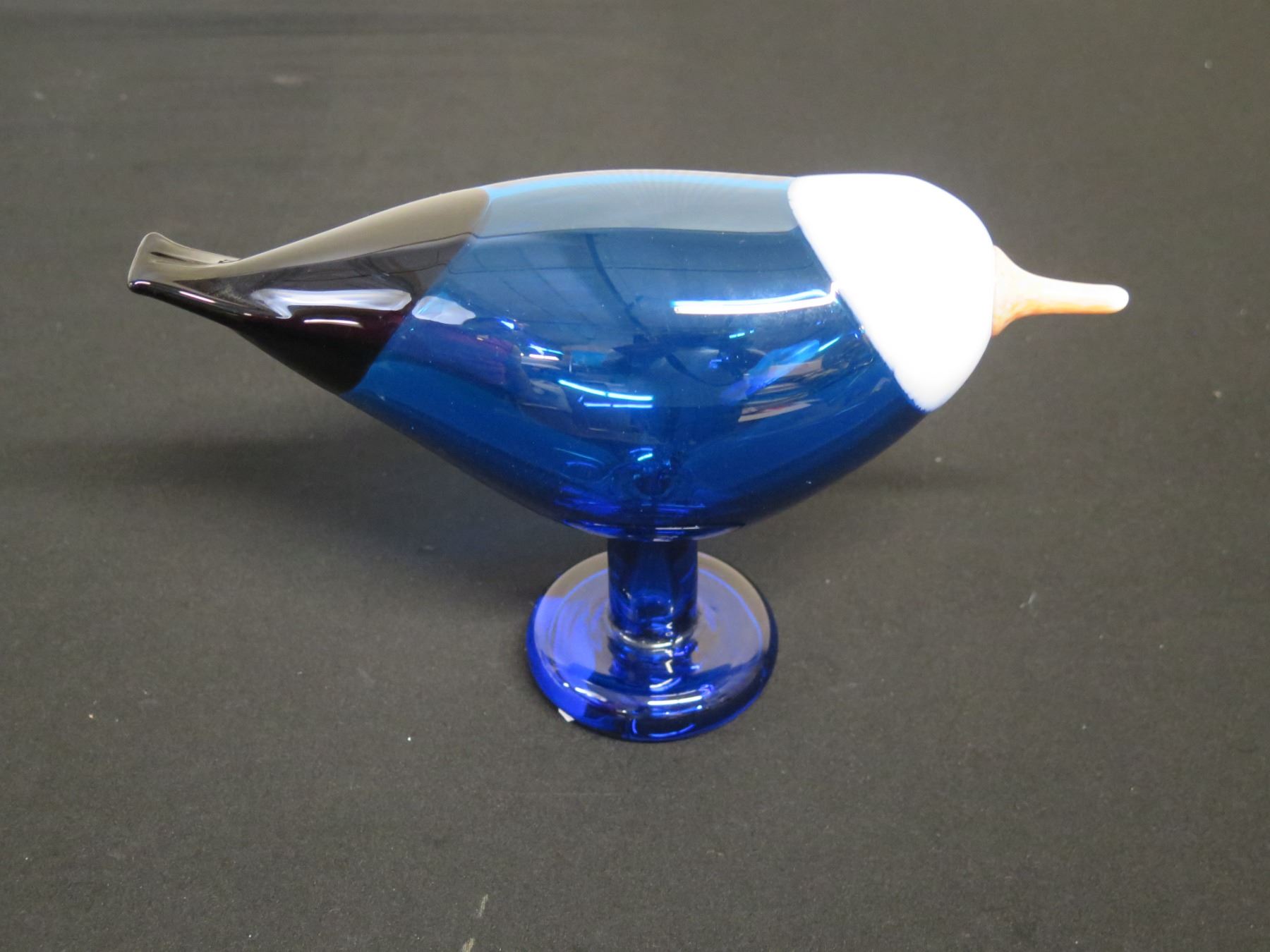 Iittala Blue Magpie Glass Bird Figurine, Signed by Artist Toikika (?) 10"L