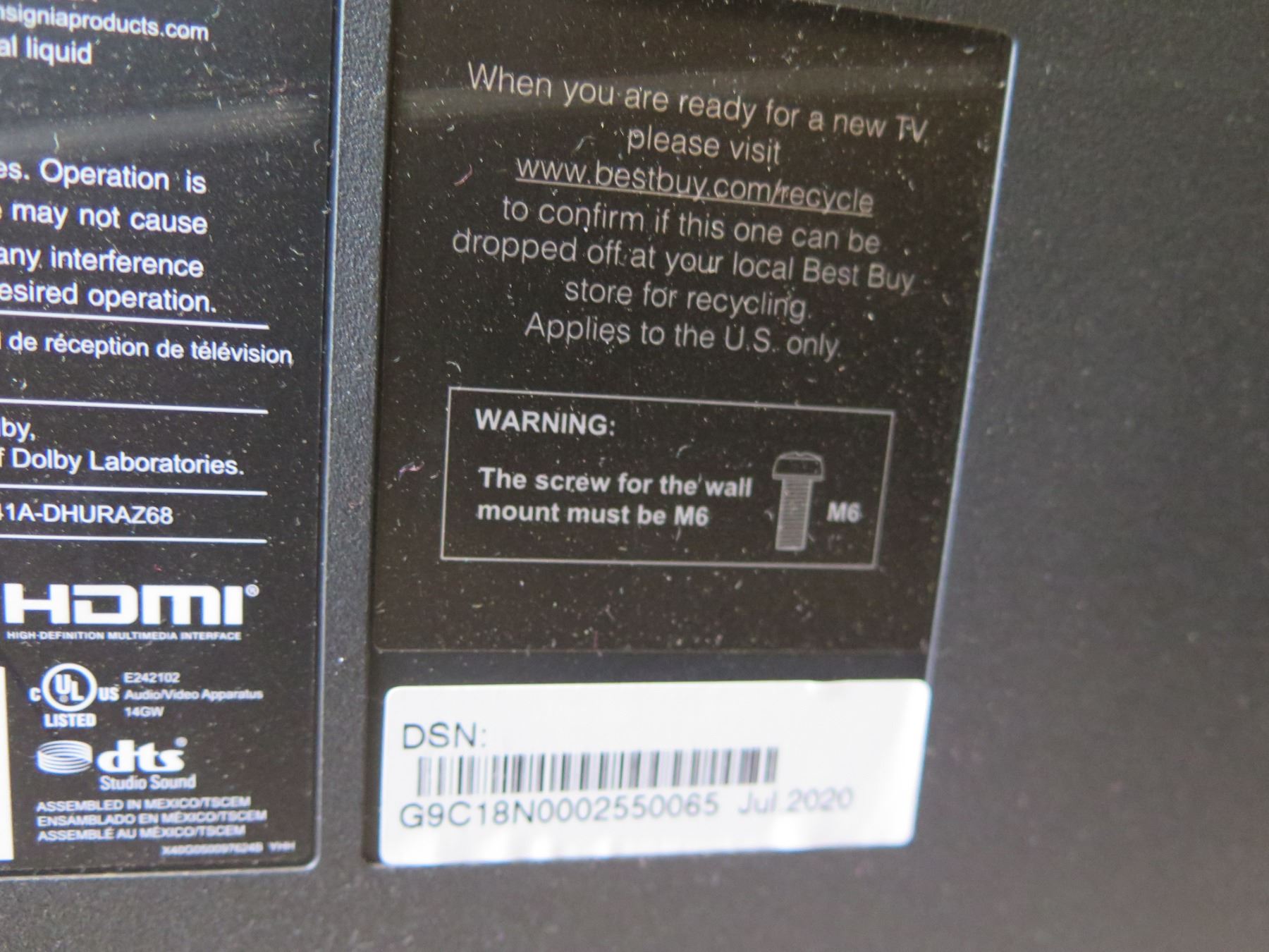 Insignia 50" Flat Screen TV Model NS-50DF710NA21