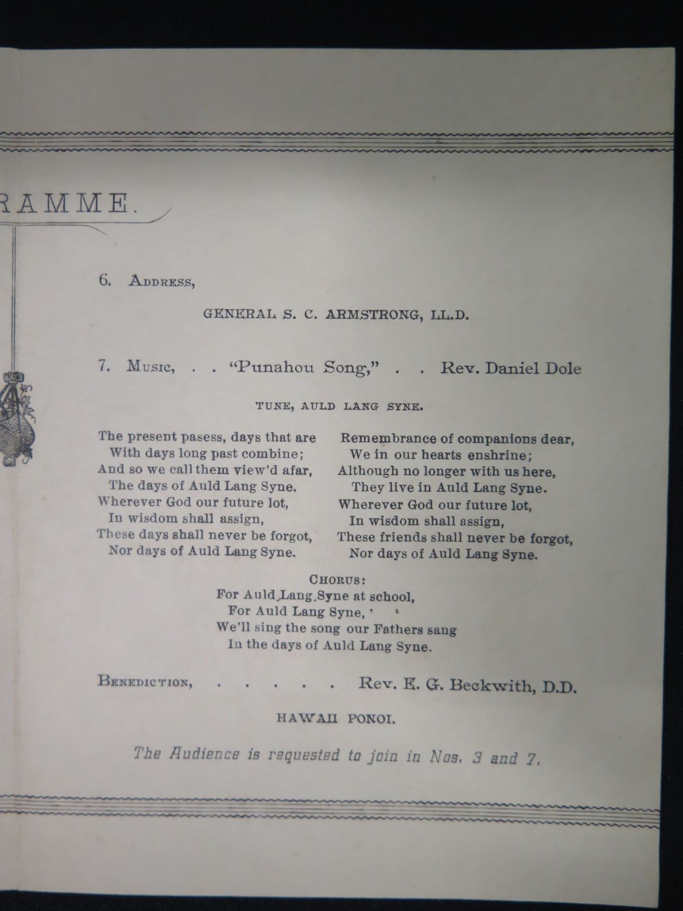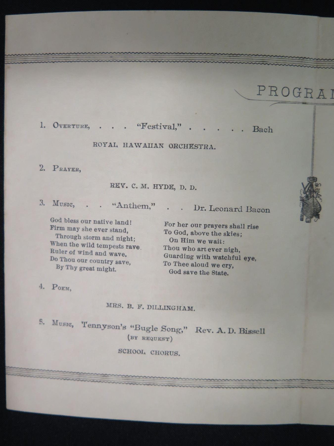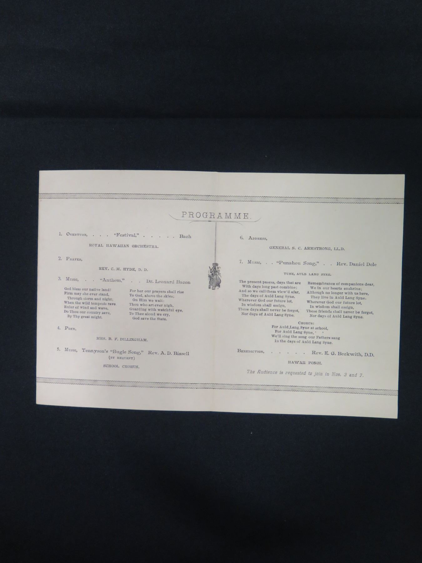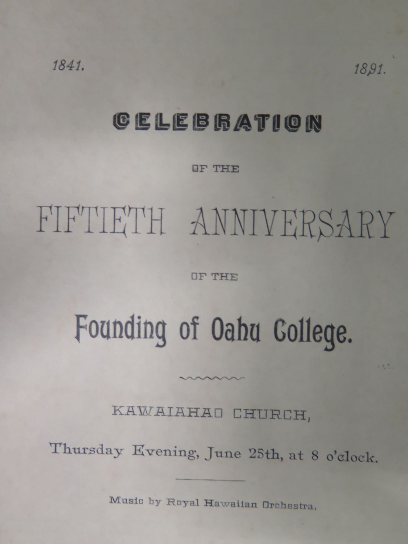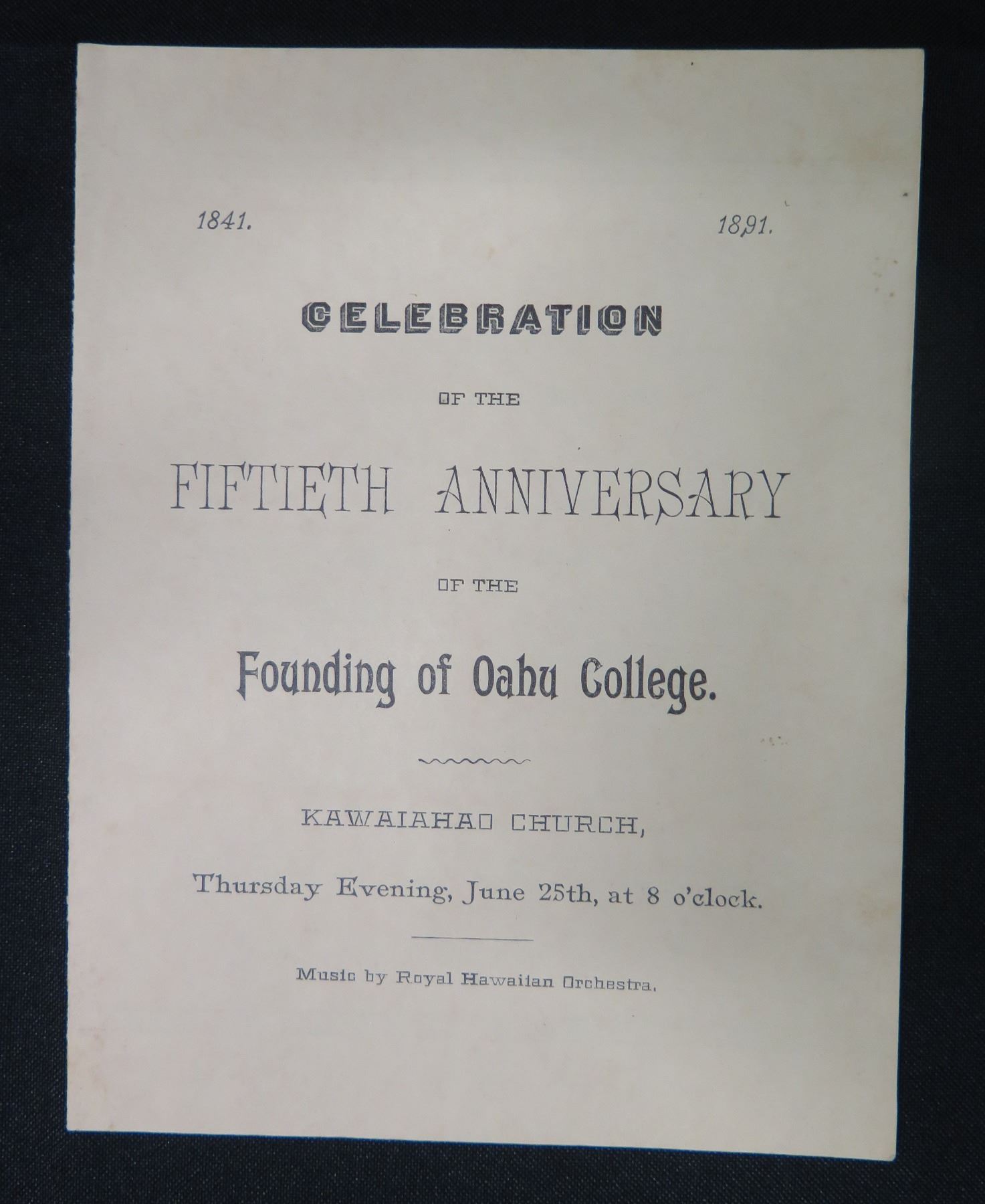 Invitation to Celebration of Oahu College, Kawaiahao Church Dated June 1891, 4.5" x 6"