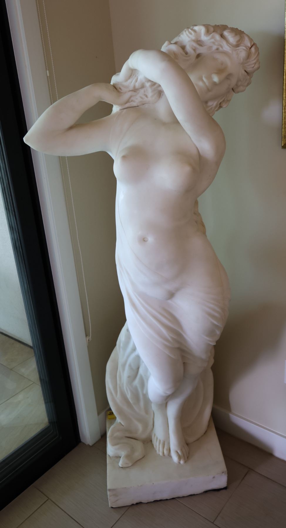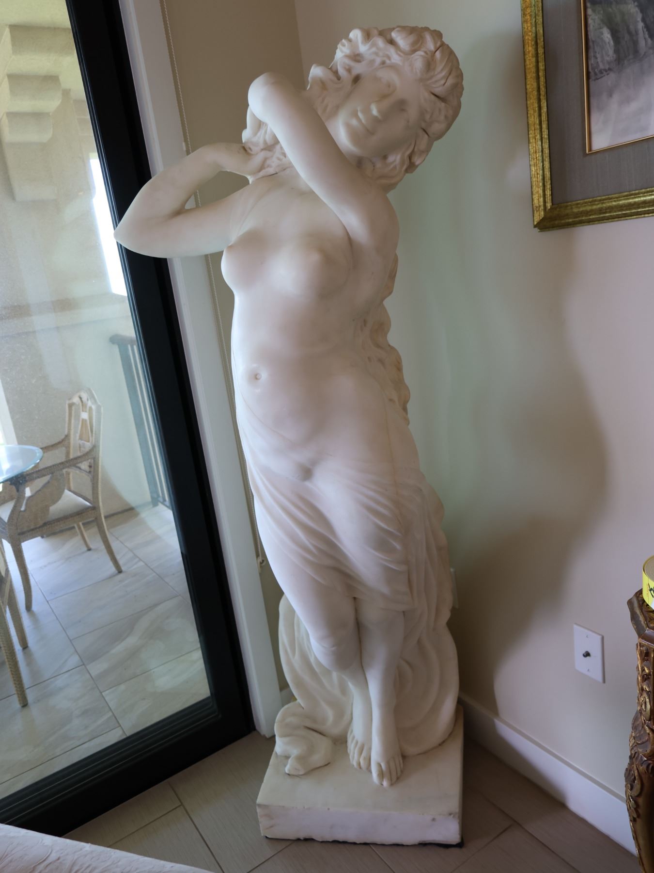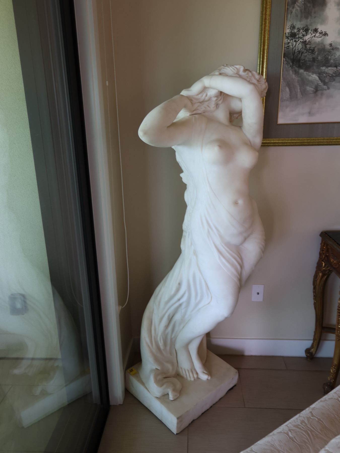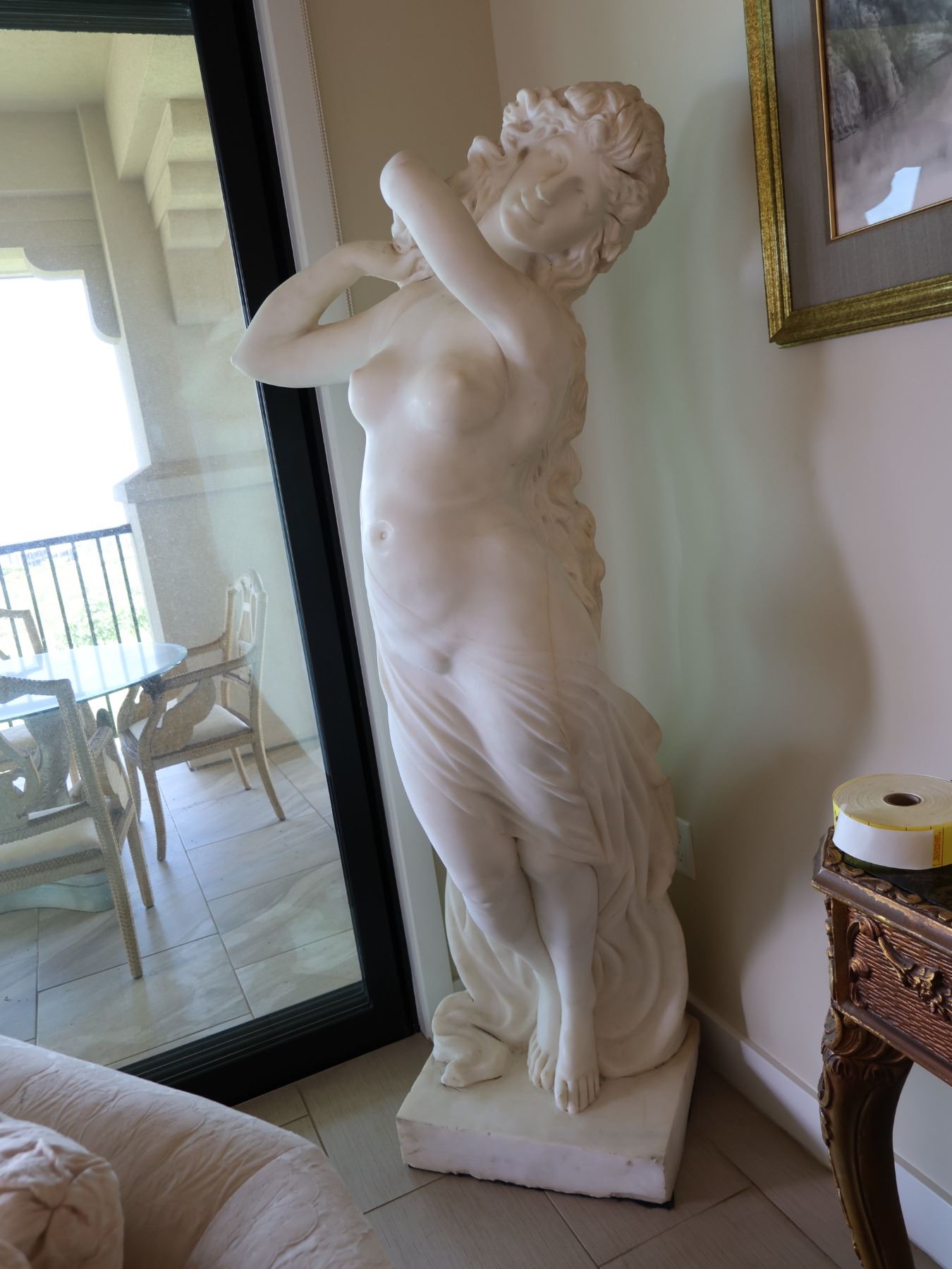 Italian Large White Marble Carved Female Sculpture 19" x 17" x 67"H