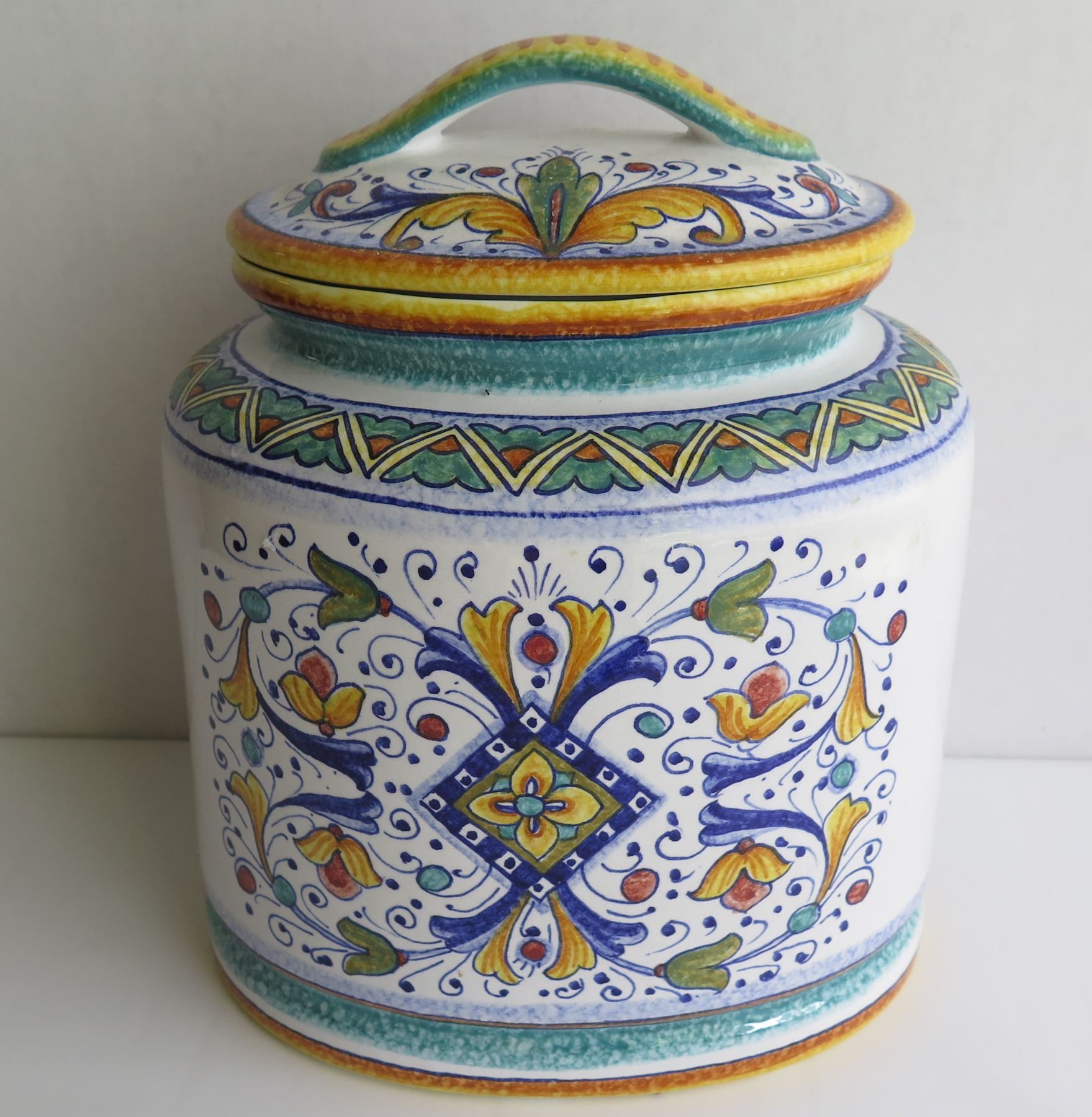 Italian Oval Ceramic Jar w/ Lid, Handpainted, GP Deruta 8" Dia, 11"Tall