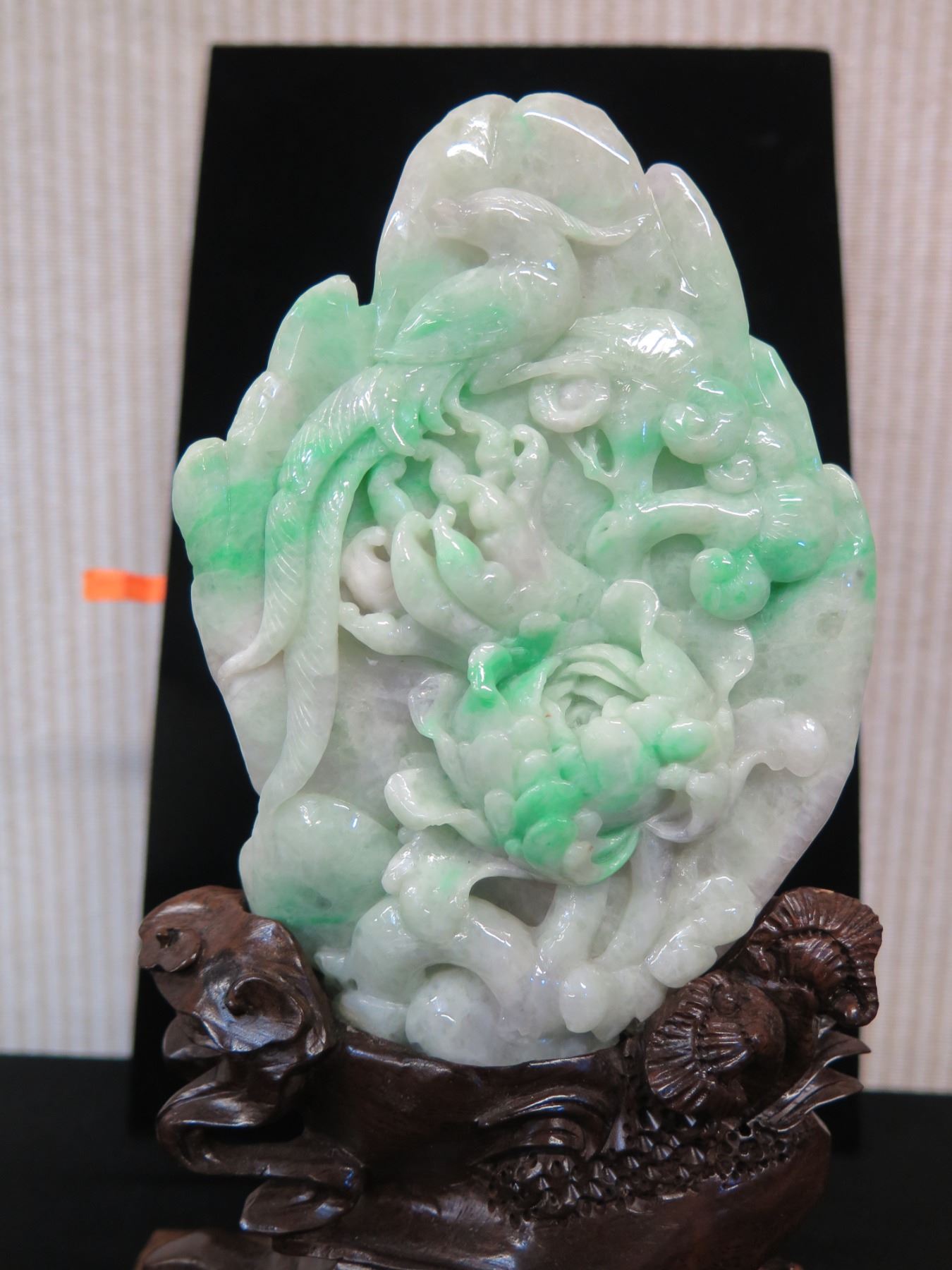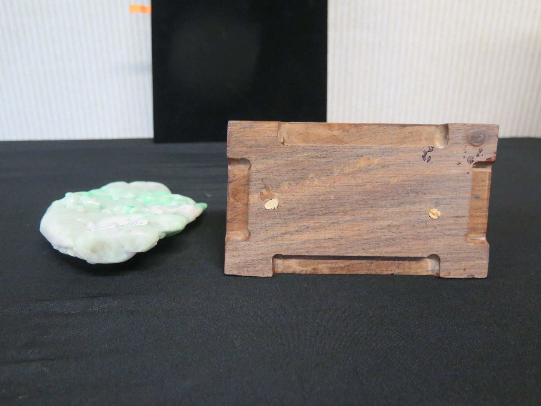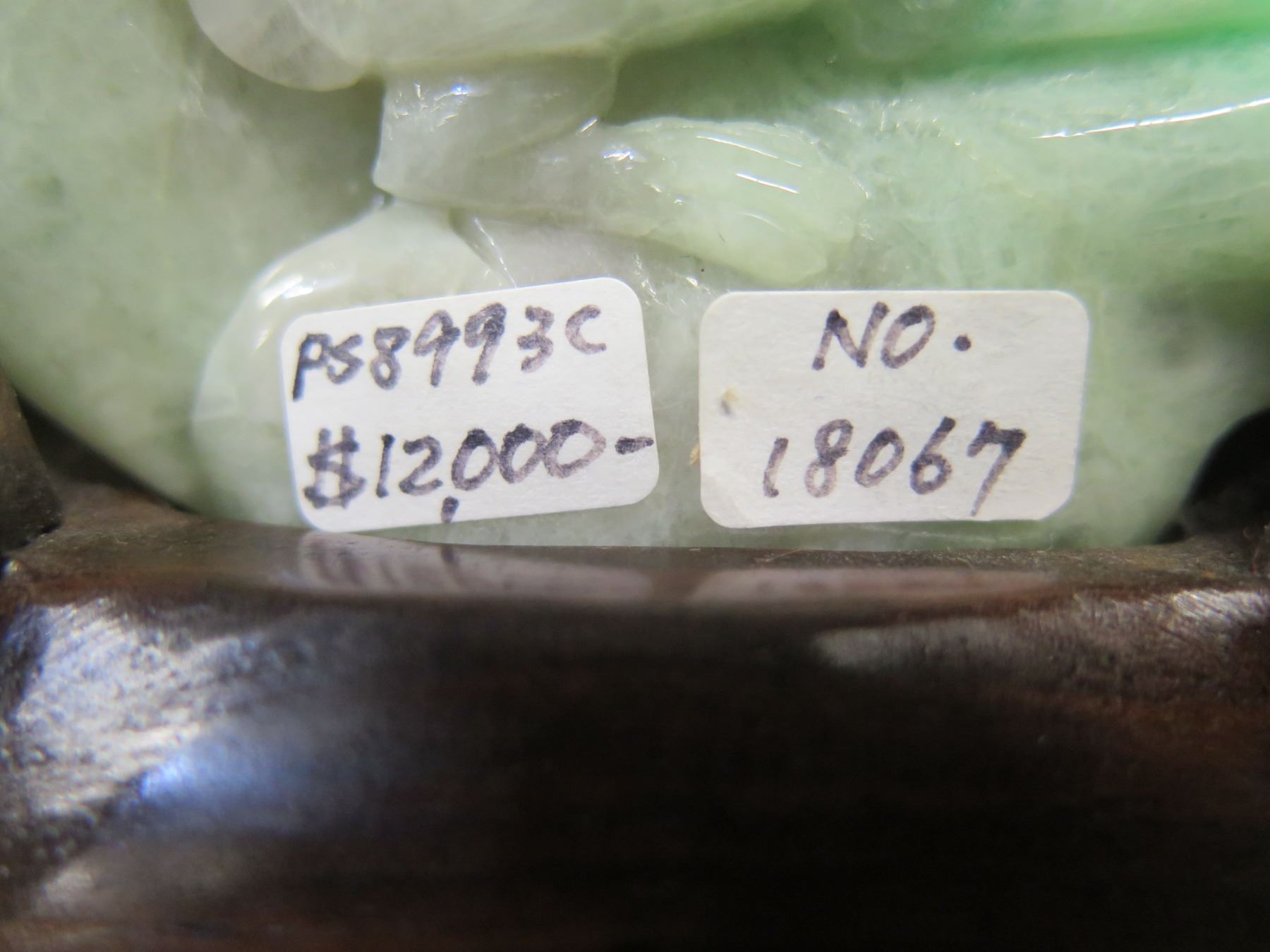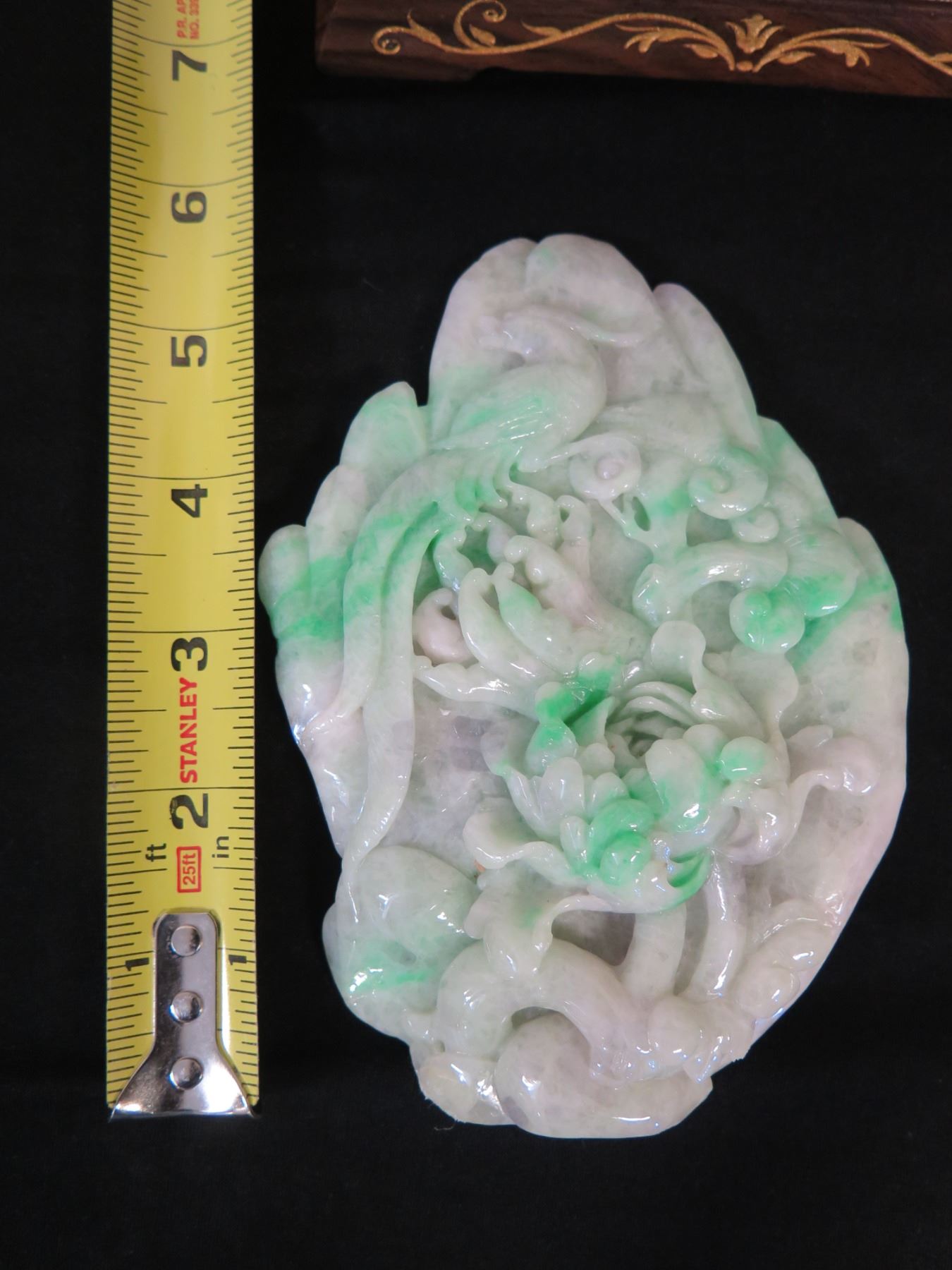 Jade Floral Décor on Wooden Stand 6" x 4" x 9.5"H in Hinged Box. The currently owner reported that this was purchased for $12K.