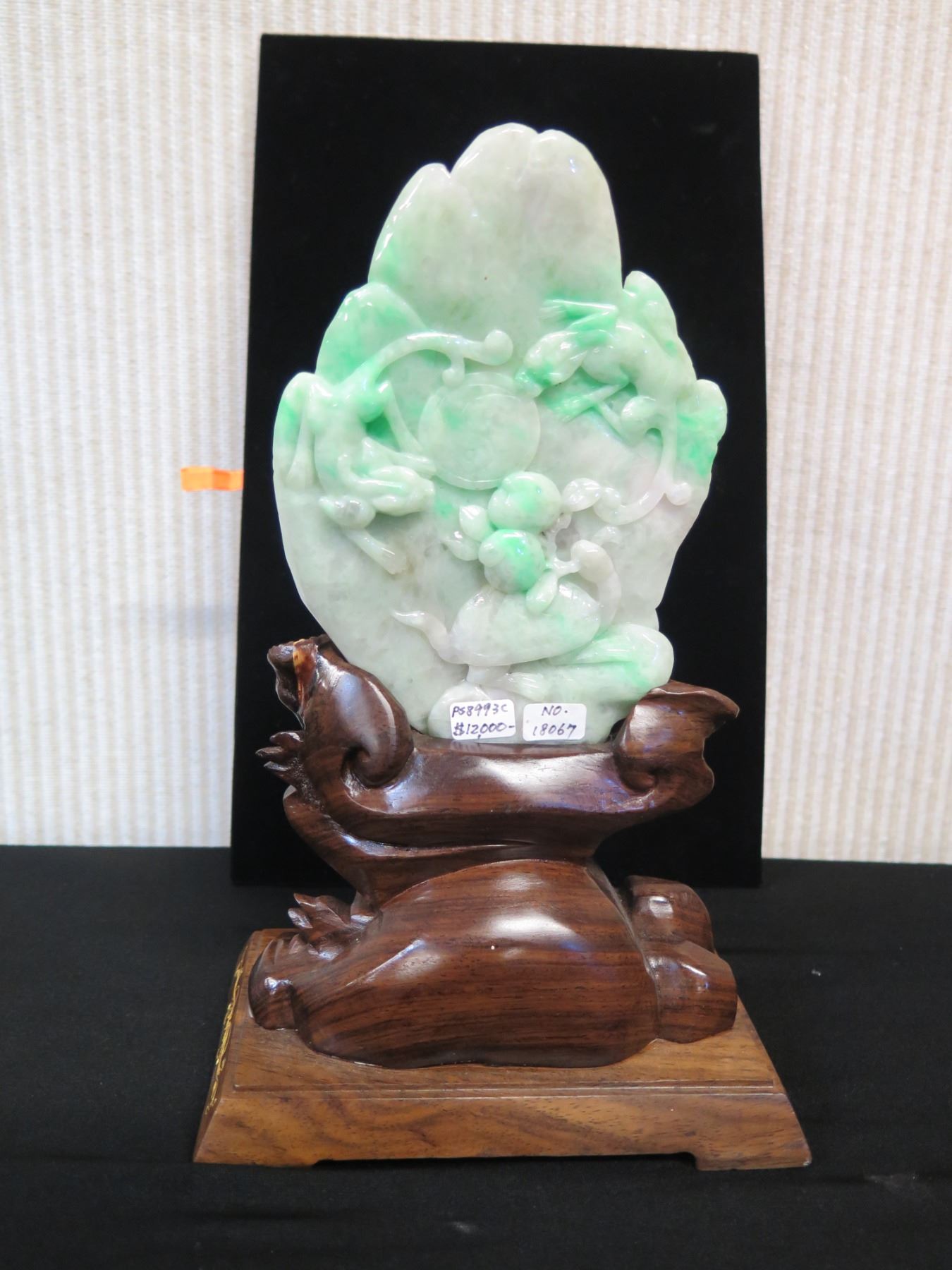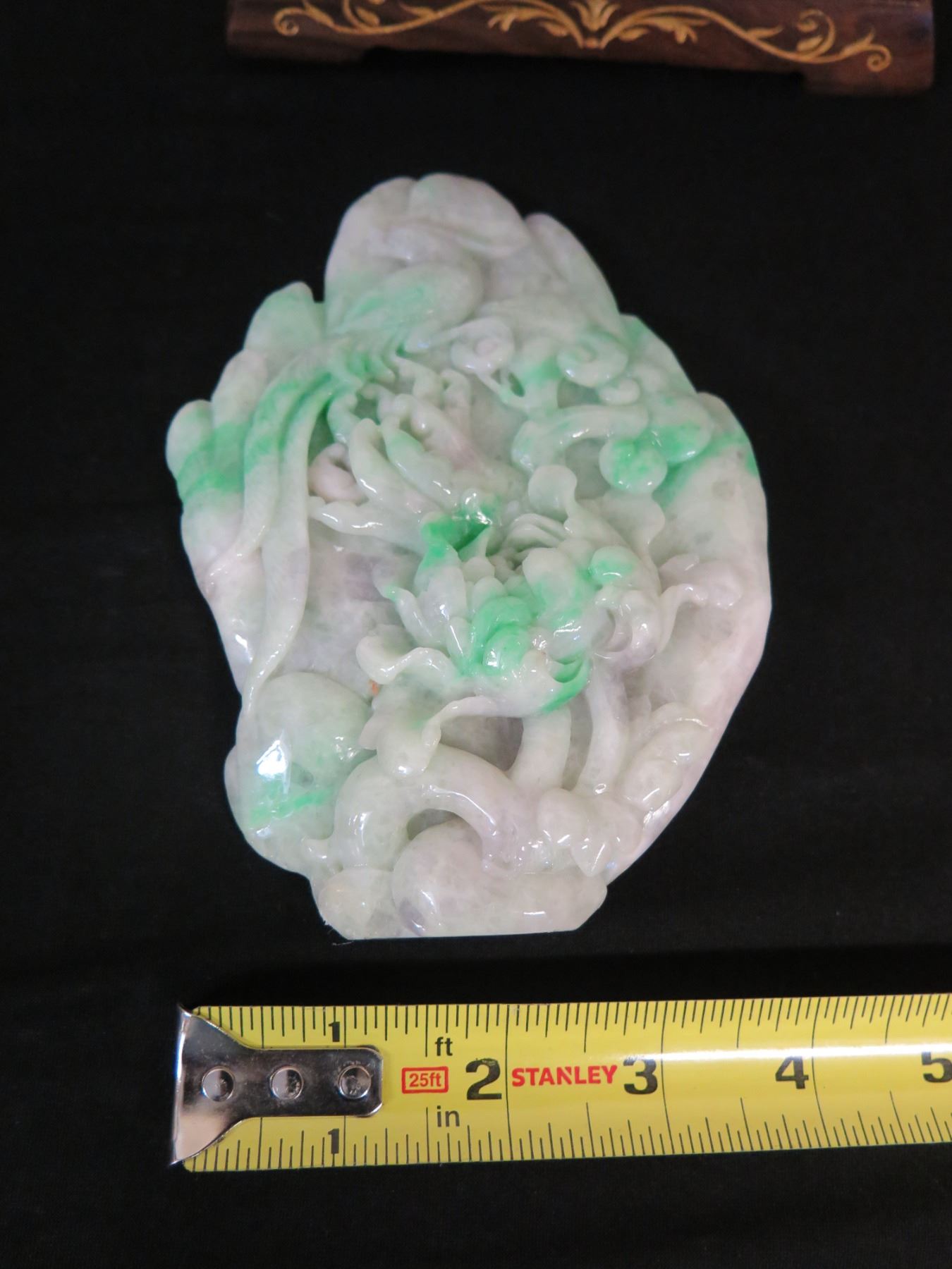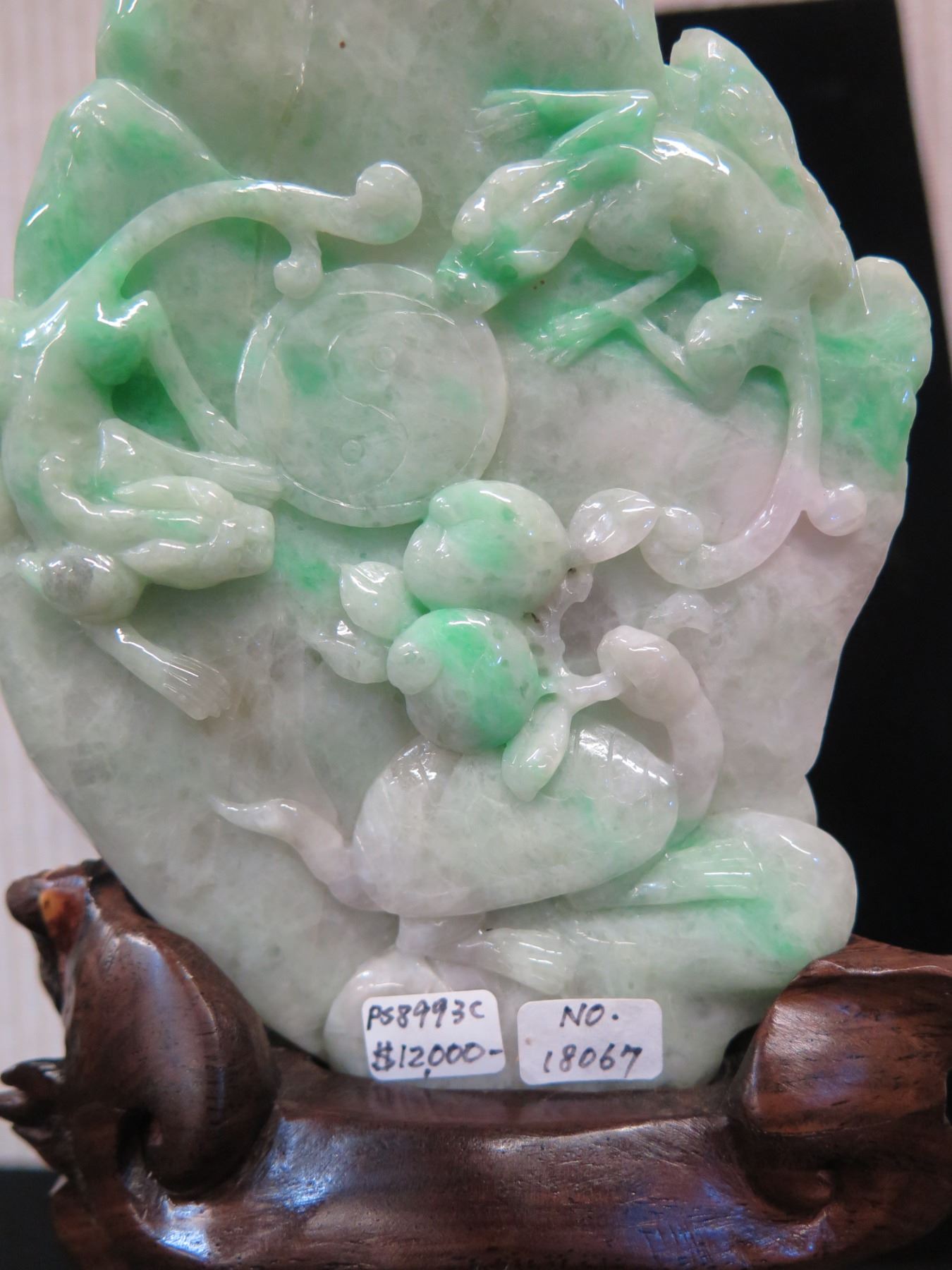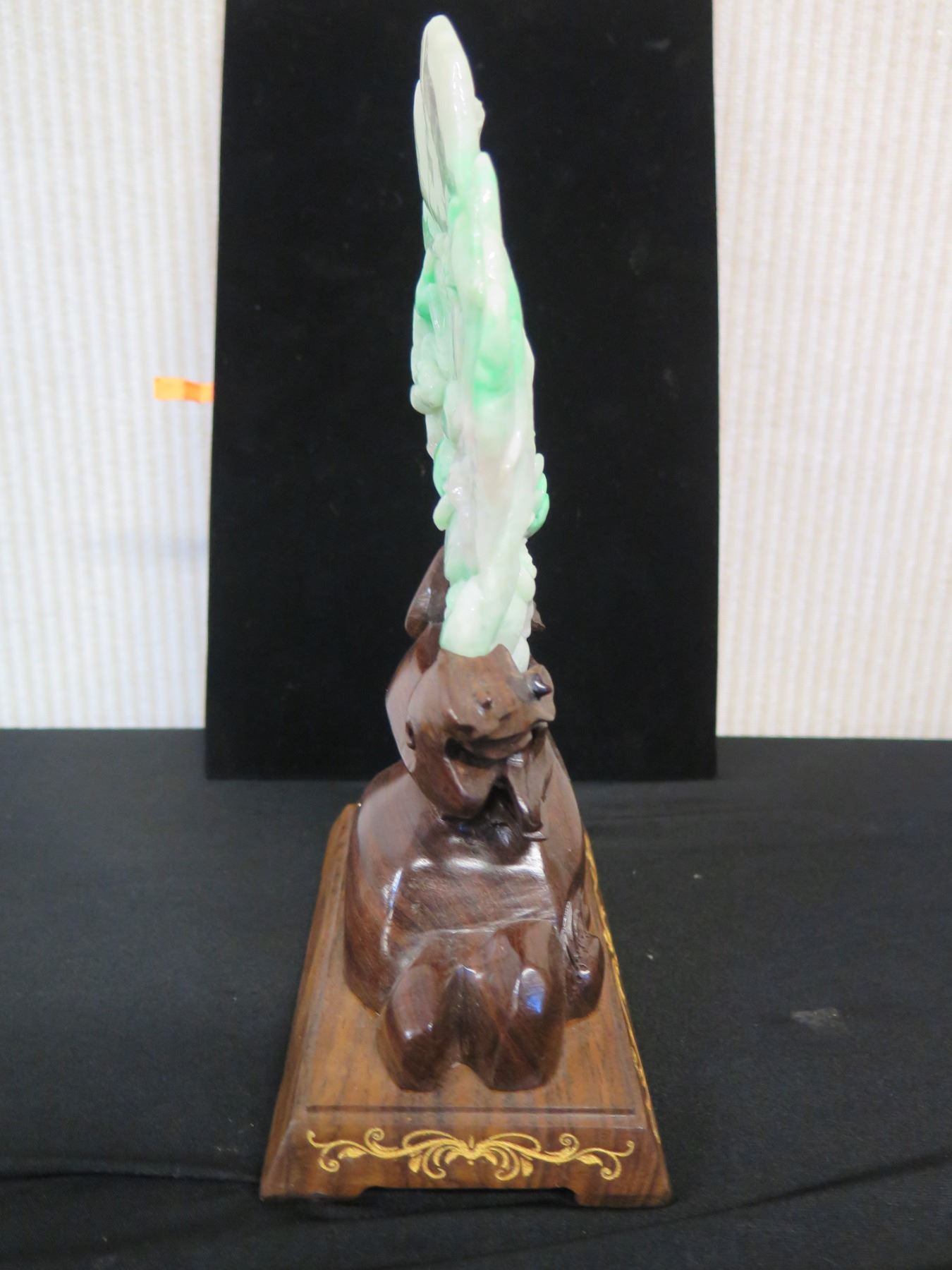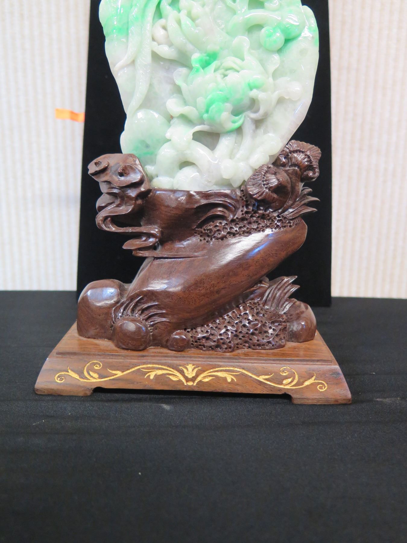Jade Floral Décor on Wooden Stand 6" x 4" x 9.5"H in Hinged Box. The currently owner reported that this was purchased for $12K.
