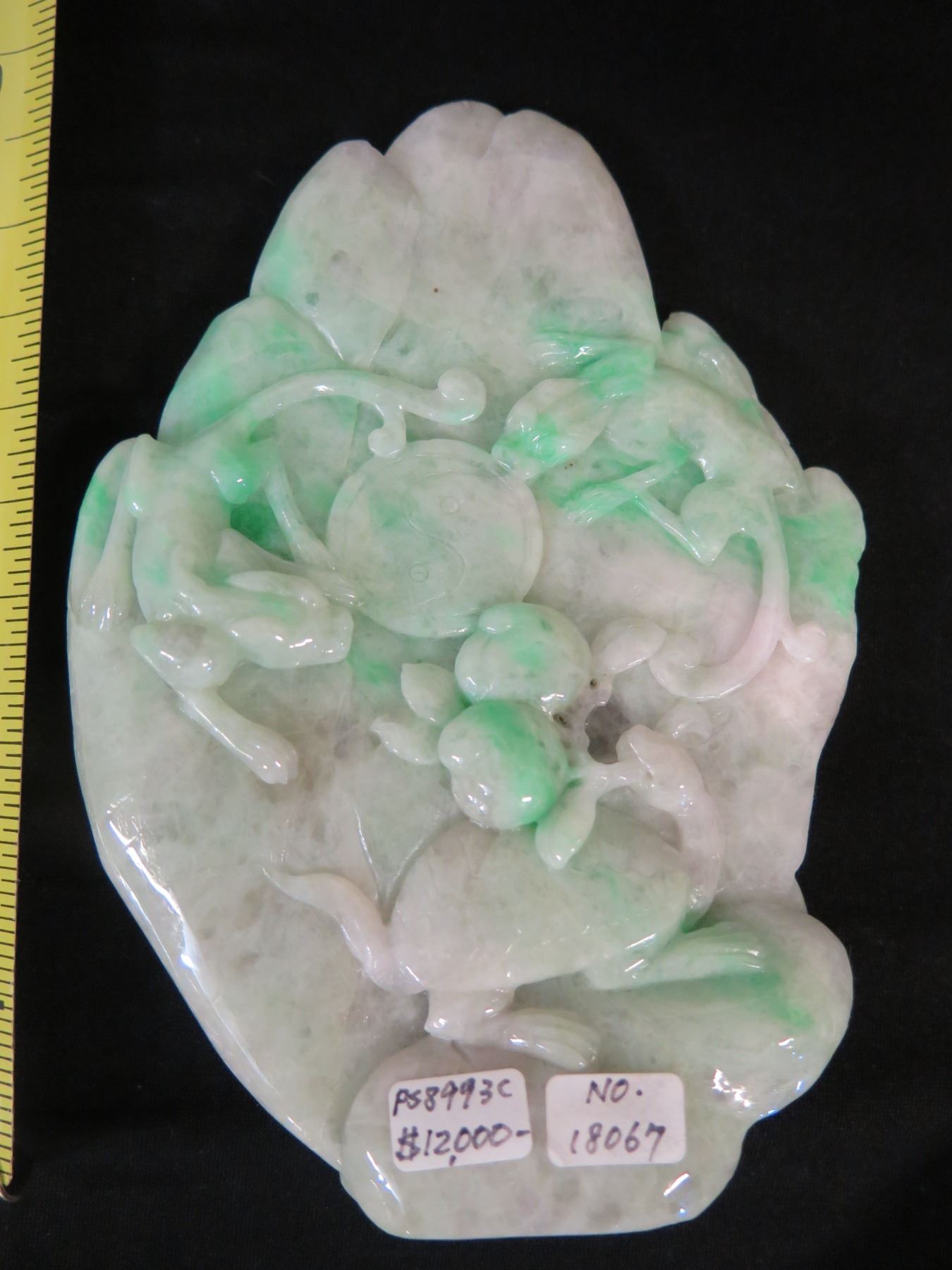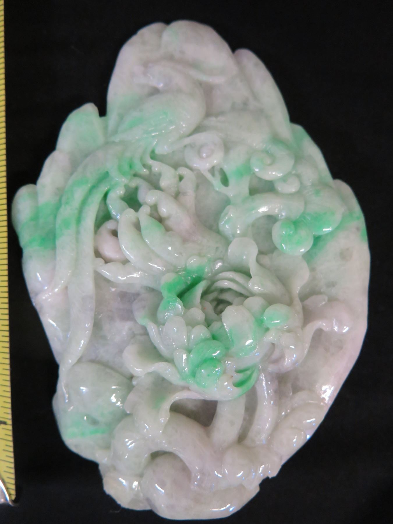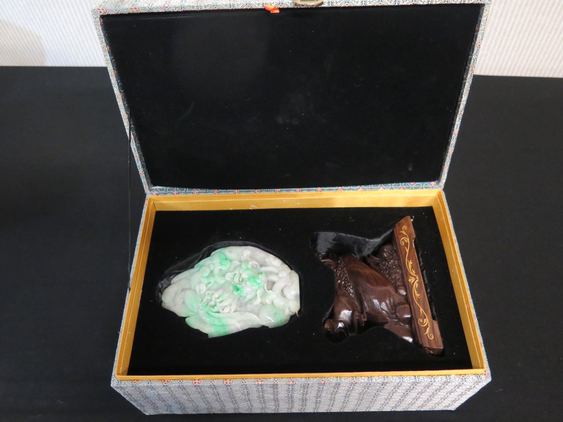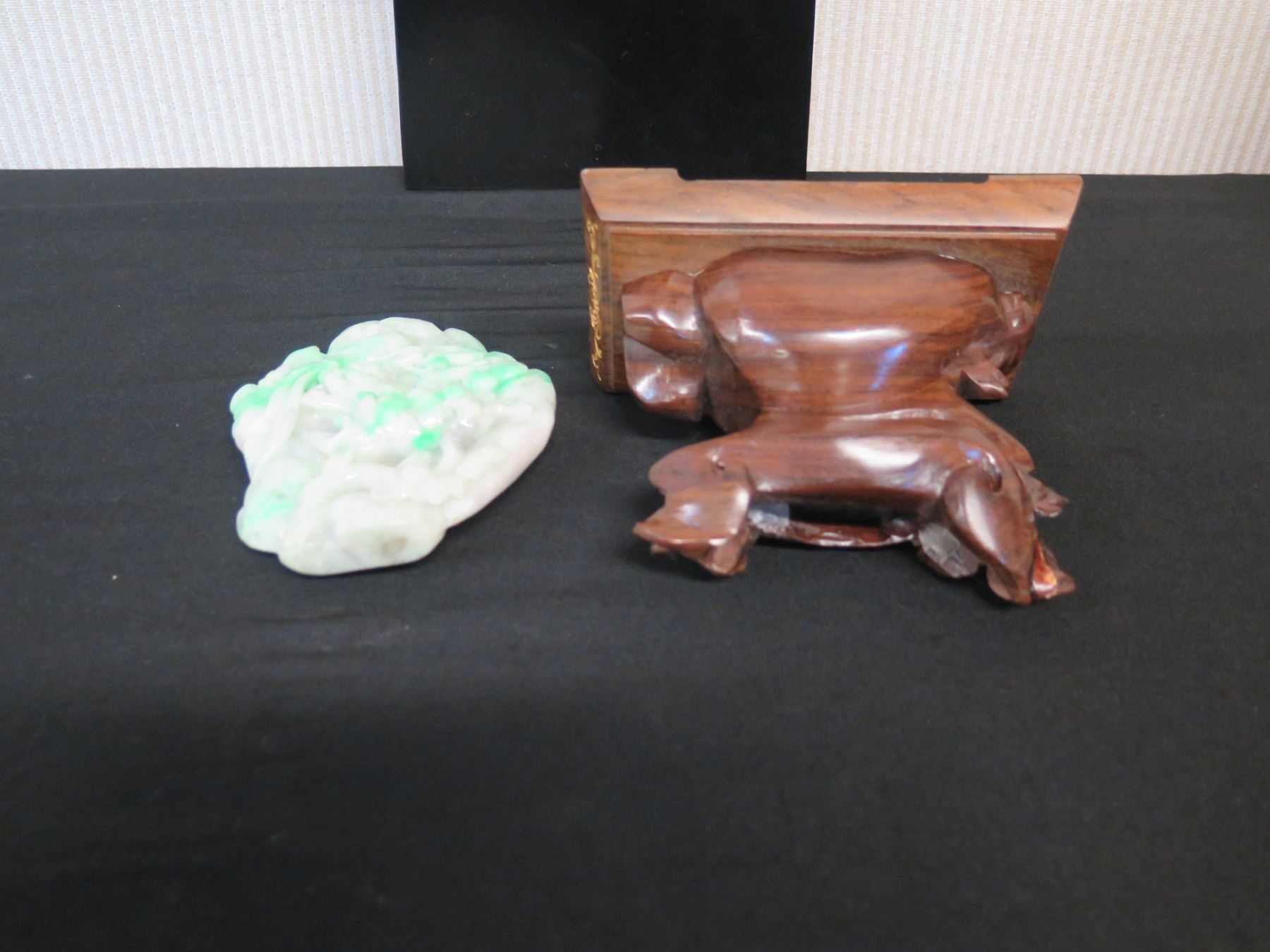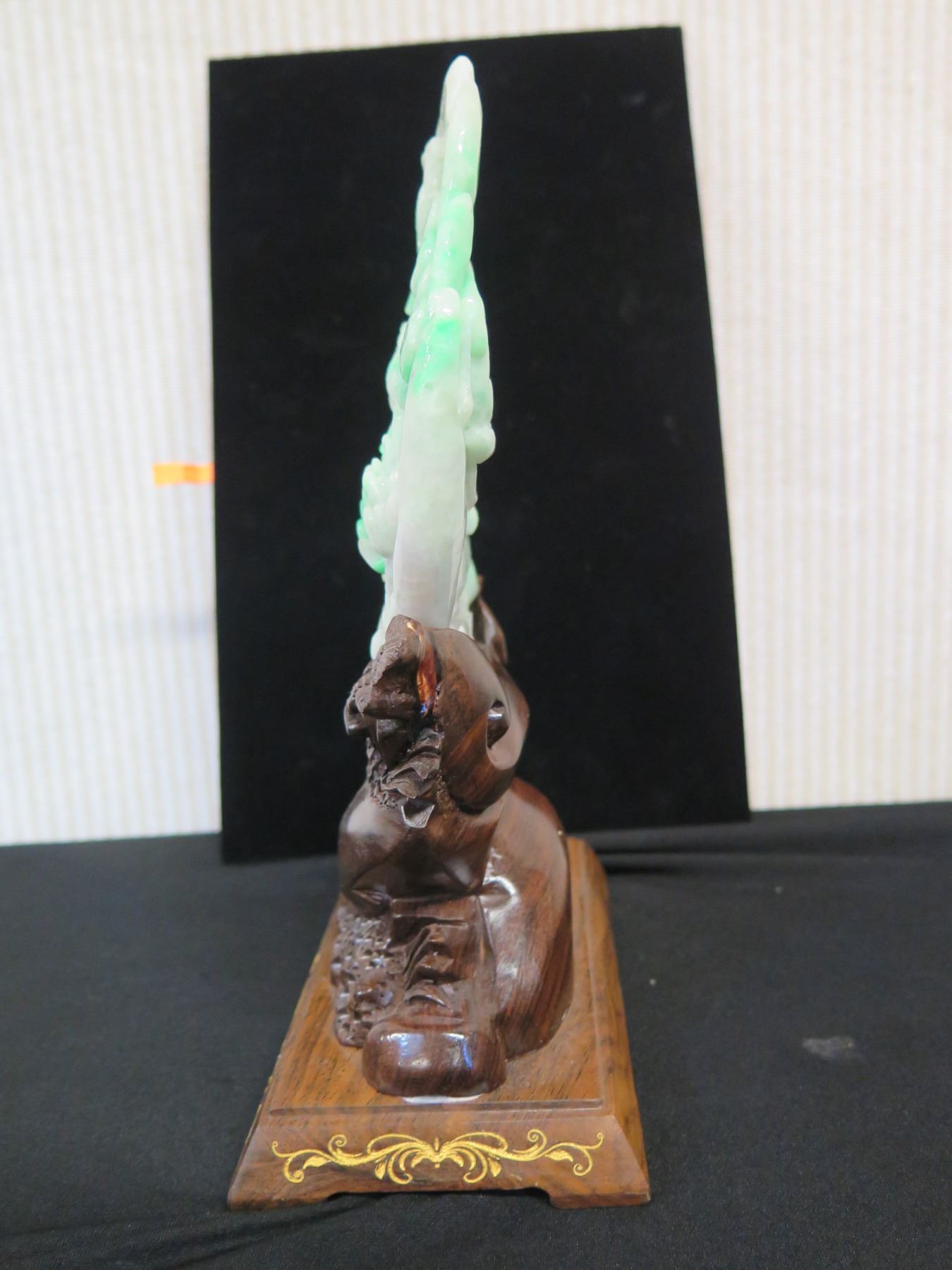 Jade Floral Décor on Wooden Stand 6" x 4" x 9.5"H in Hinged Box. The currently owner reported that this was purchased for $12K.
