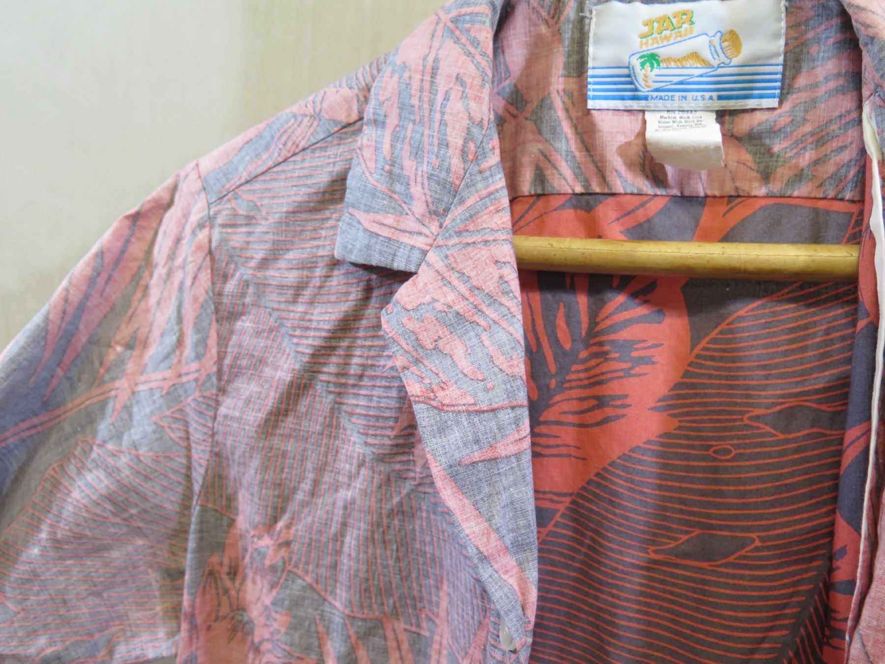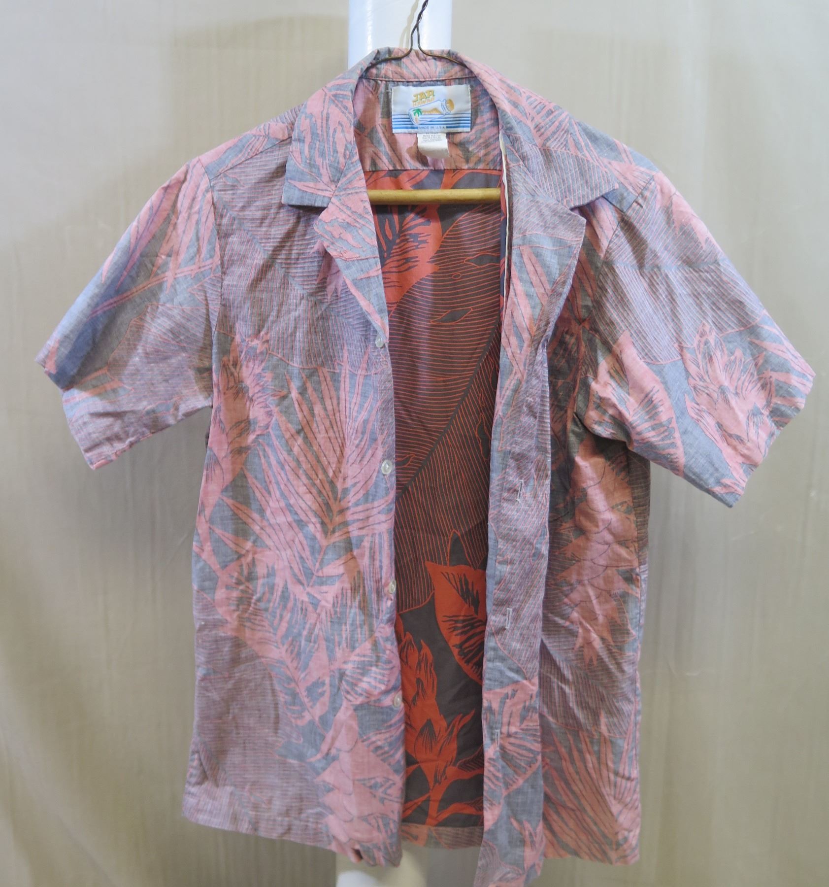 Jar Hawaii Aloha Shirt Gray & Pink w/ Front Pocket. NOTE: The size tags have been removed. This shirt appears to be small.