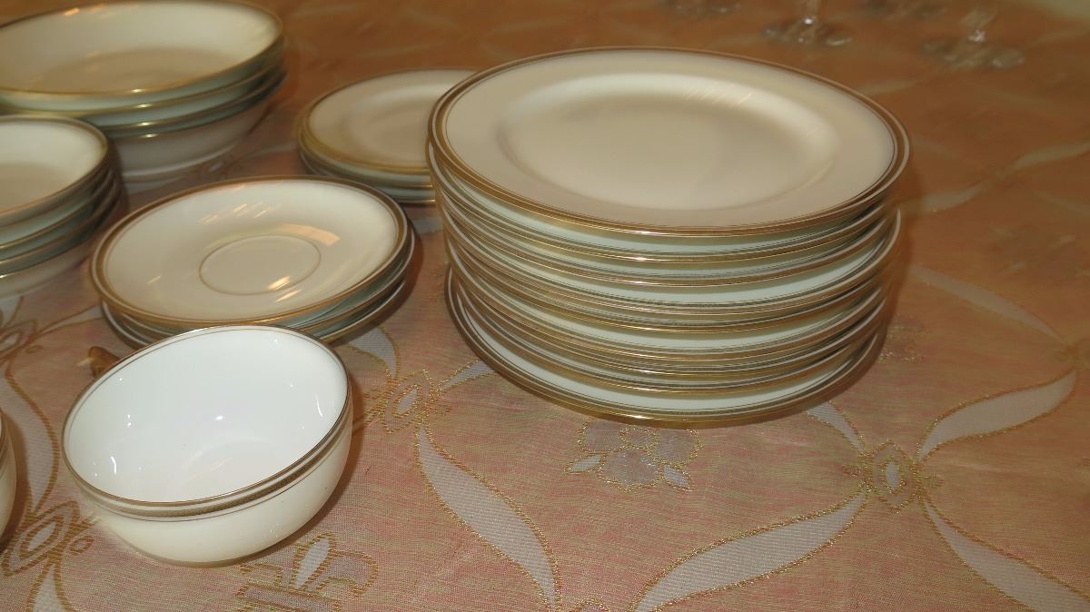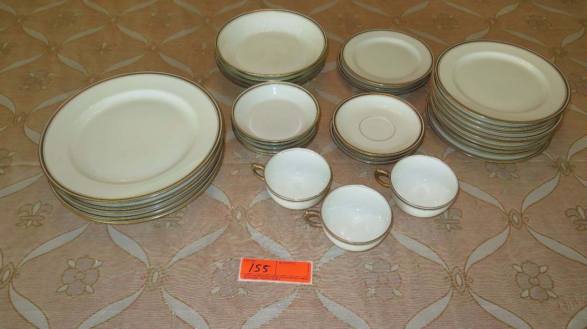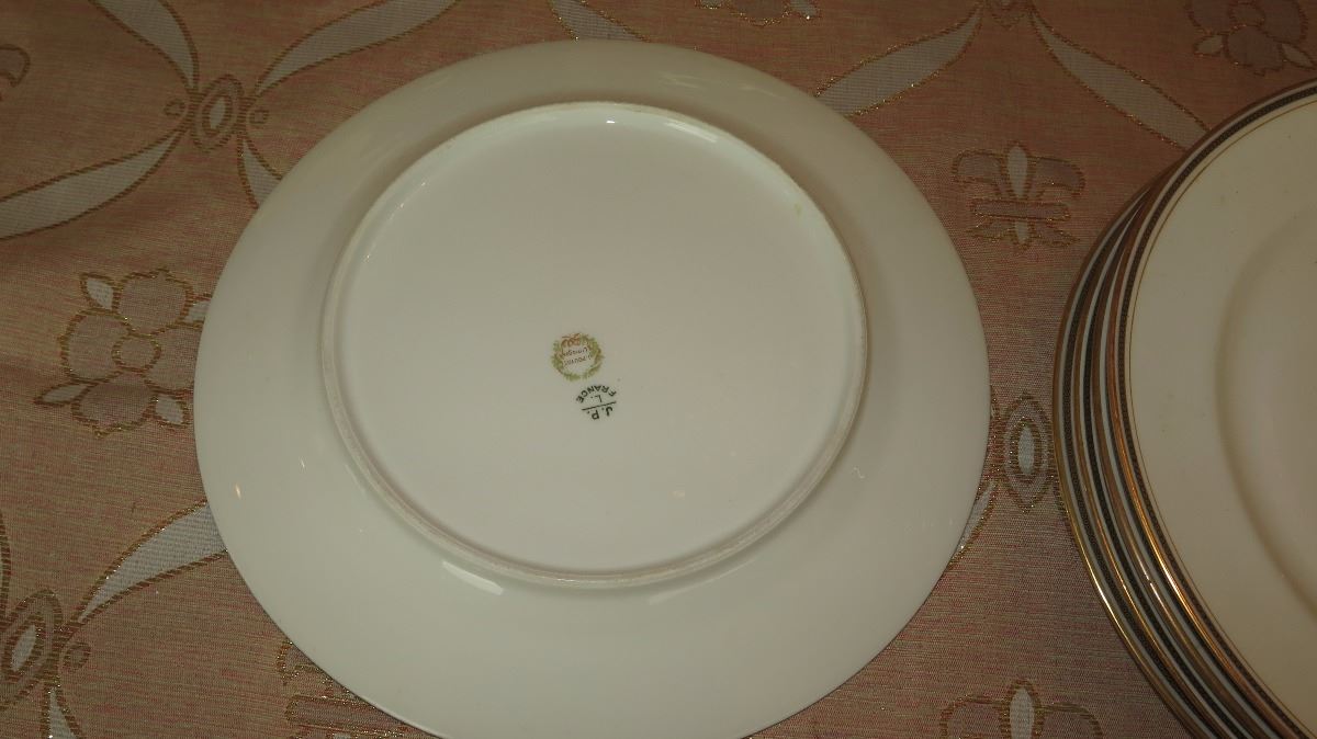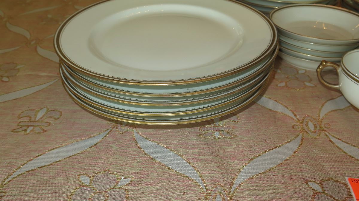 Jay Pouyat Limoges French China Set w/Gilt Edging - Dinner Plates, Bowls, Salad Plate, Saucers, Cups