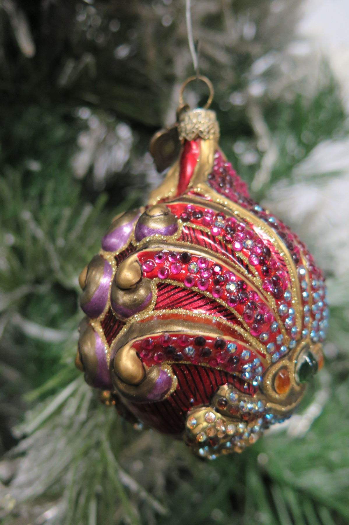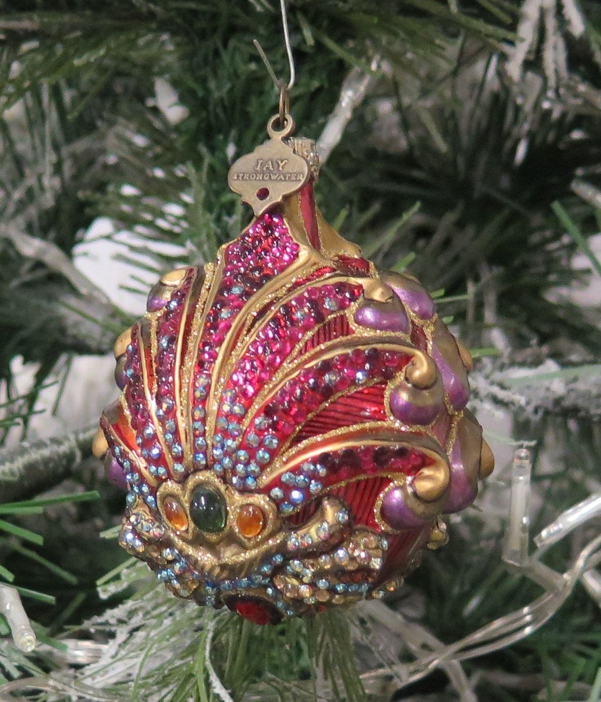 Jay Strongwater Christmas Tree Ornament Beaded Clam Shell 3" Diameter