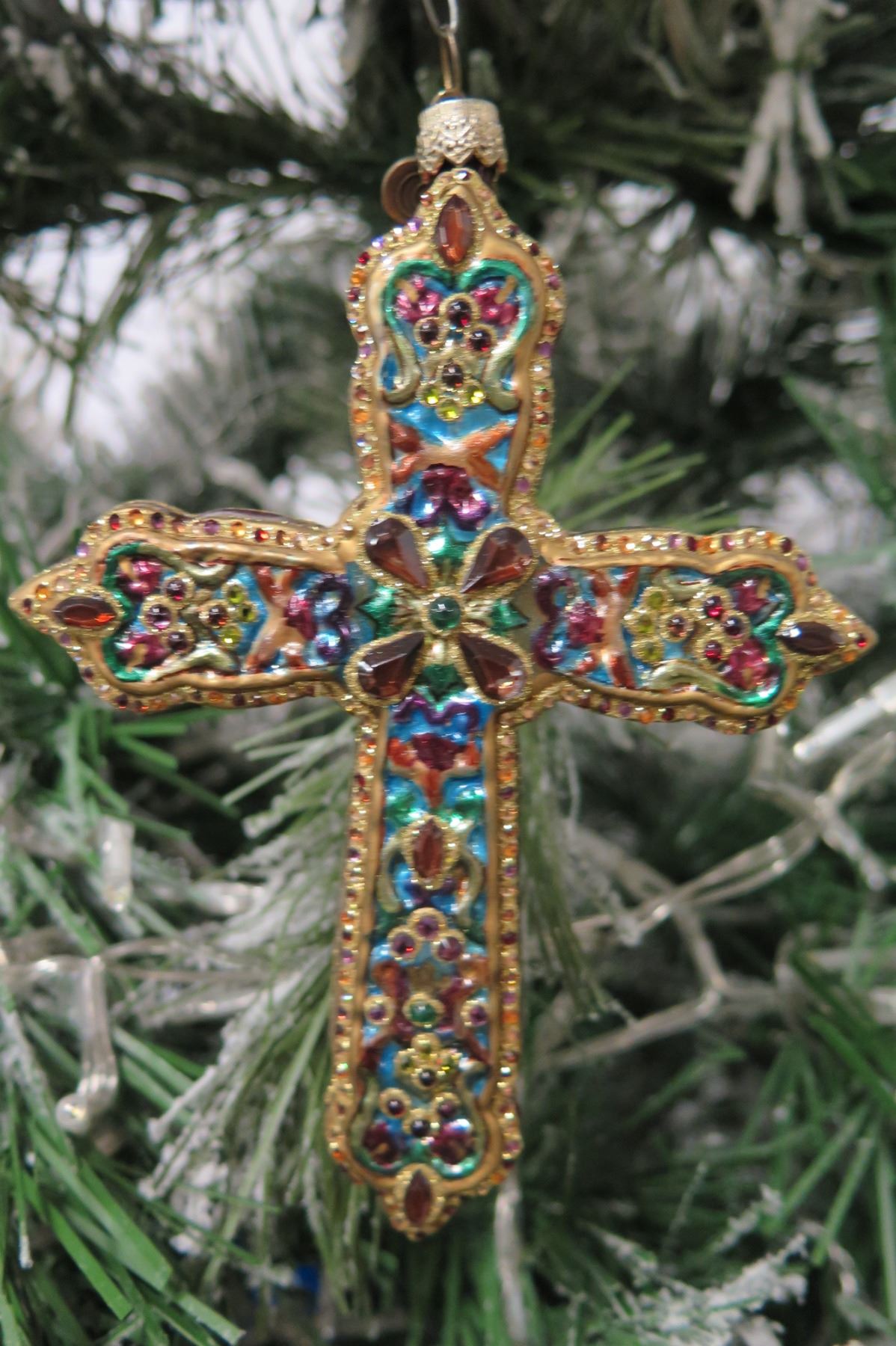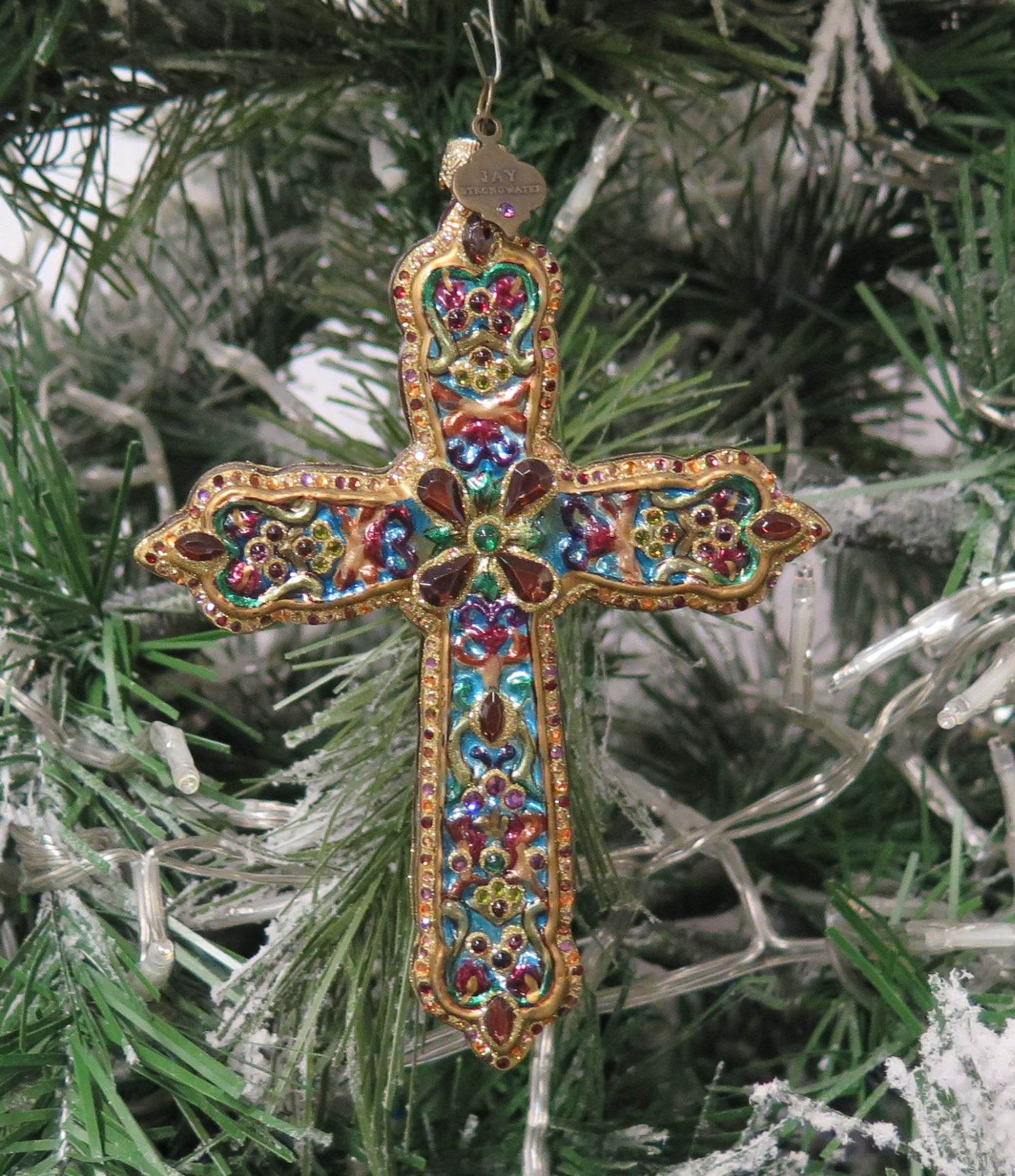 Jay Strongwater Christmas Tree Ornament Beaded Cross 5.5" Long