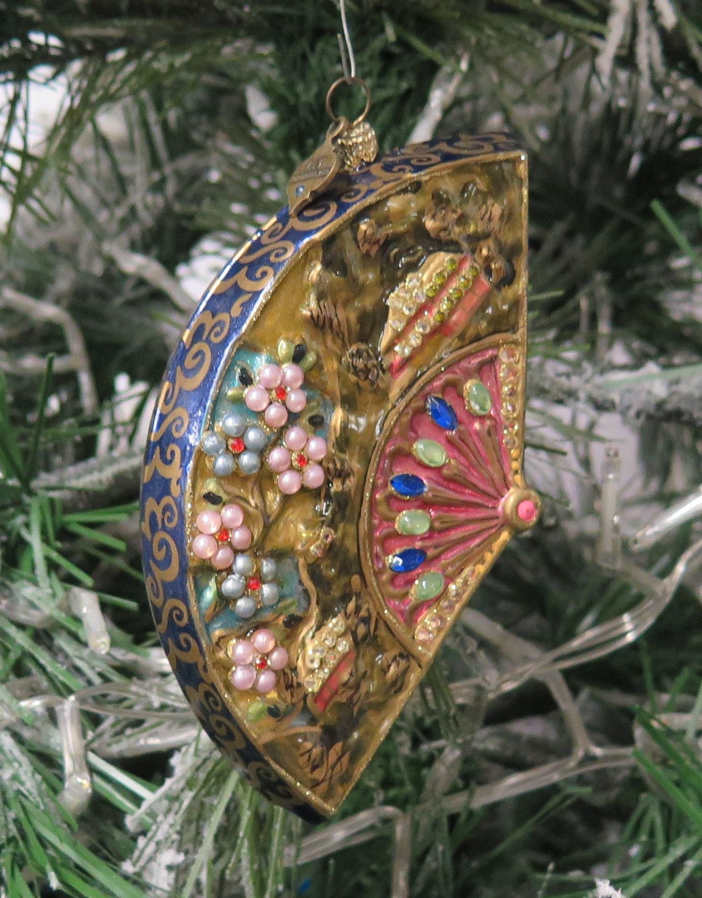 Jay Strongwater Christmas Tree Ornament Beaded Fan 5.5" Long