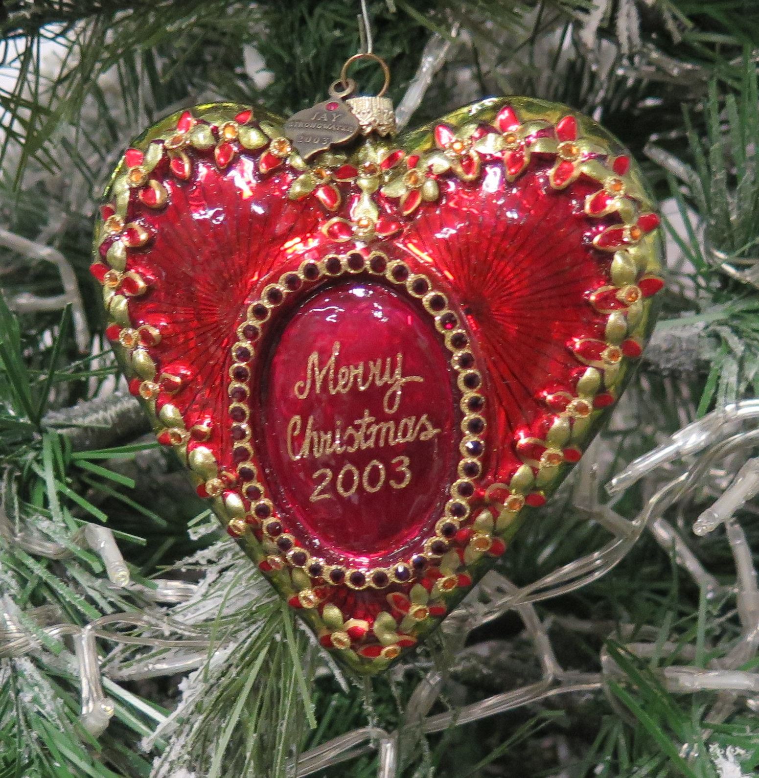 Jay Strongwater Christmas Tree Ornament Beaded Red 2003 Heart 5" Long