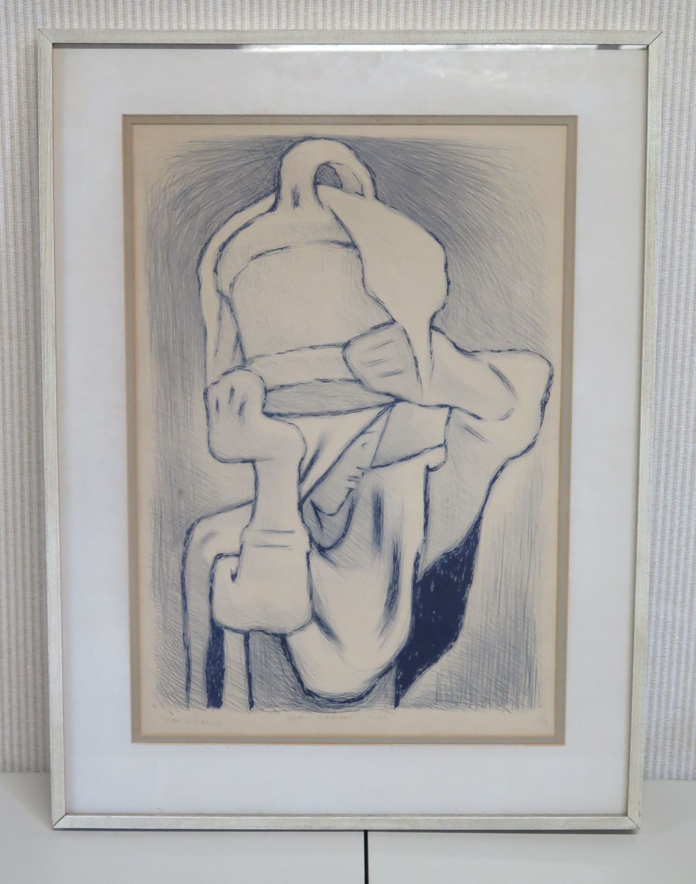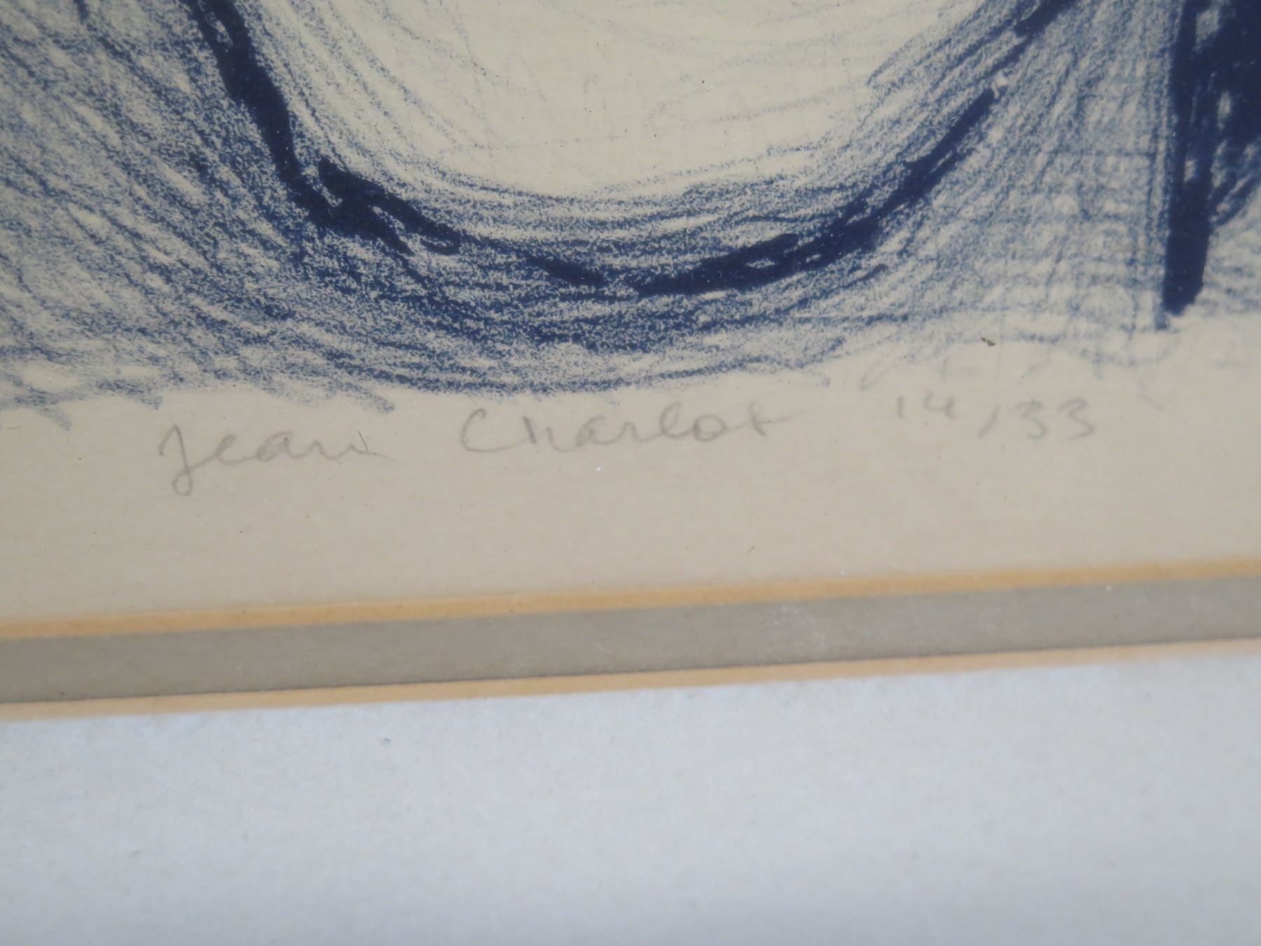 Jean Charlot 1958 Color Lithograph 14/33, Woman Carrying Basket on Head, Signed by Artist, Framed 16" x 24" (image size). Framed 22" x 29".