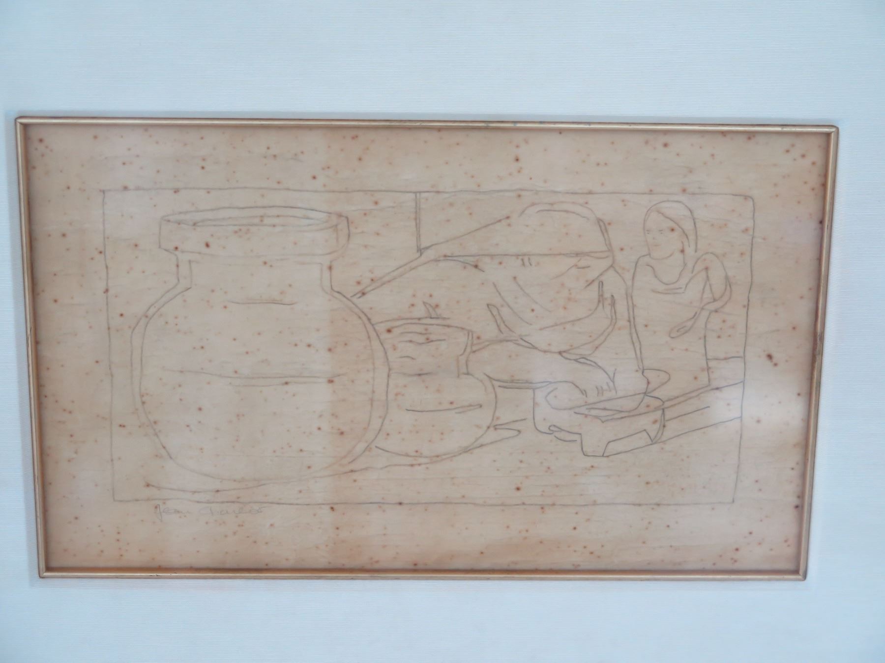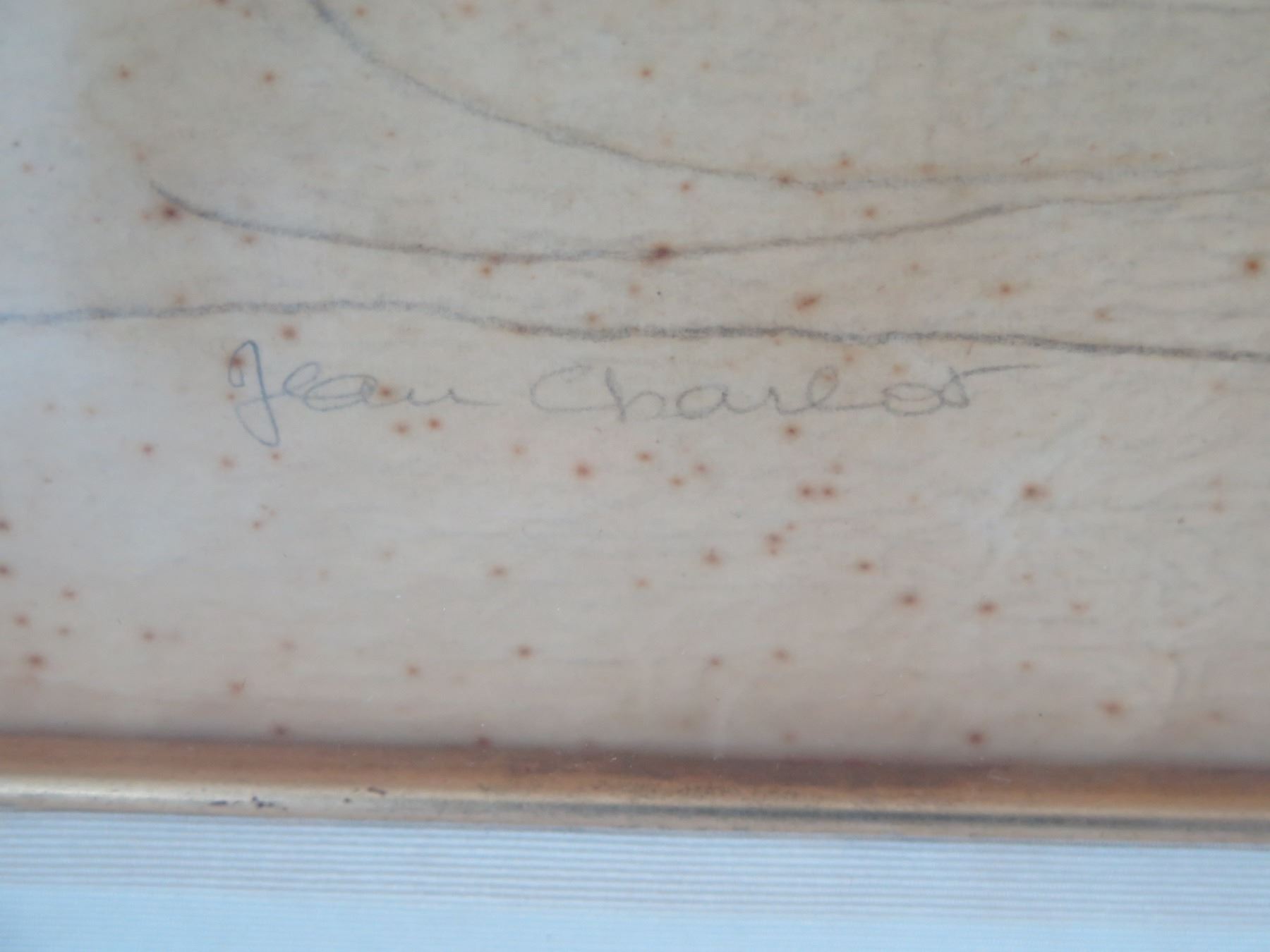 Jean Charlot Pencil Study on Vellum, Signed, Image 10"x16" (Framed 22"x28")